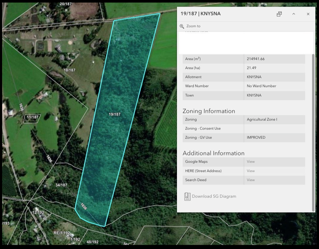 The land is largely untouched forest, with two dams adding agricultural or lifestyle value (requiring minor attention). Peaceful yet conveniently located near Knysna’s amenities, this property is perfect for a sustainable homestead, eco-retreat, or private escape.