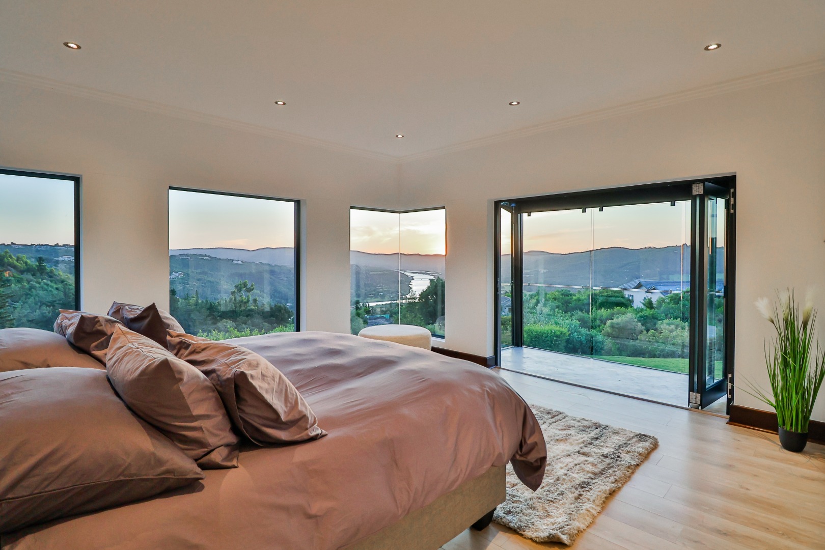 Hey there! Get ready to fall in love with this stunning modern home nestled in the beautiful Simola Golf Estate in Knysna. This multi-level gem offers breathtaking panoramic views of the river, estuary, and majestic mountains – seriously, the sunsets here are something else! The contemporary architecture and extensive glass ensure abundant natural light throughout, creating a bright and welcoming atmosphere.