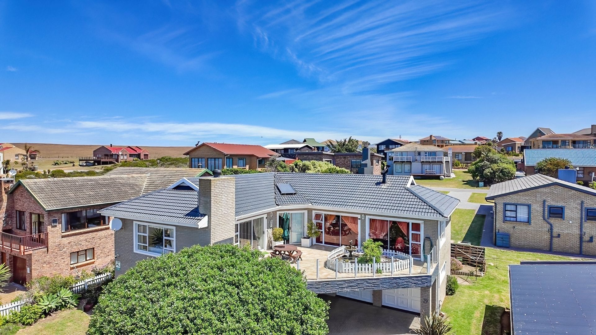 Imagine to wake up to the breathtaking sight of the sun rising over the ocean and unwind in the evenings as the moon glows over the waves. This home is in a coastal town with golden beaches, many dolphins, fish and Walves during the Winter months. It is in the Western Cape about 30 min from Mossel Bay Centre. This exquisite light face brick home captures the true essence of coastal living in the charming seaside town of Boggomsbaai. Perfectly designed for a large family or those who love space and comfort, this double-storey residence offers. Downstairs. 3 spacious bedrooms, one with a en-suite bathroom. A second full bathroom for guests or family use. A well-equipped kitchen and comfortable lounge area, ideal for privacy or multi-generational living. Upstairs you will find an expansive open-plan living space with a dining area, modern kitchen, and large scullery leading to the back garden. A guest toilet for convenience. A luxurious main bedroom suite featuring a walk-in closet and stylish en-suite bathroom. A spacious indoor braai area where you can entertain while soaking in uninterrupted sea views stretching across the horizon. Outside, the established garden and white picket fence create a peaceful, pet-friendly environment perfect for your furry friends.