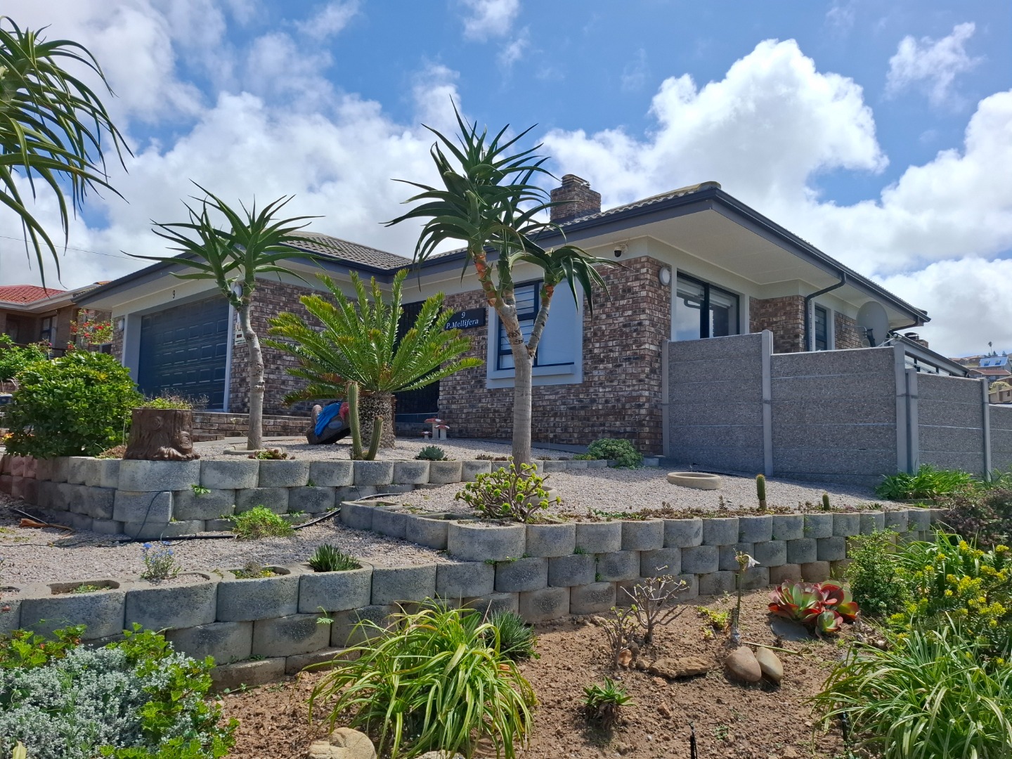 Discover this inviting 3-bedroom, 2-bathroom residence nestled in the sought-after coastal suburb of Dana Bay, Mossel Bay. The property immediately impresses with its attractive brick facade, modern roofline, and well-maintained, water-wise tiered landscaping featuring drought-tolerant plants. A spacious, hexagonal paved driveway leads to a secure double garage, complemented by visible security features including a robust security gate and camera, ensuring peace of mind.