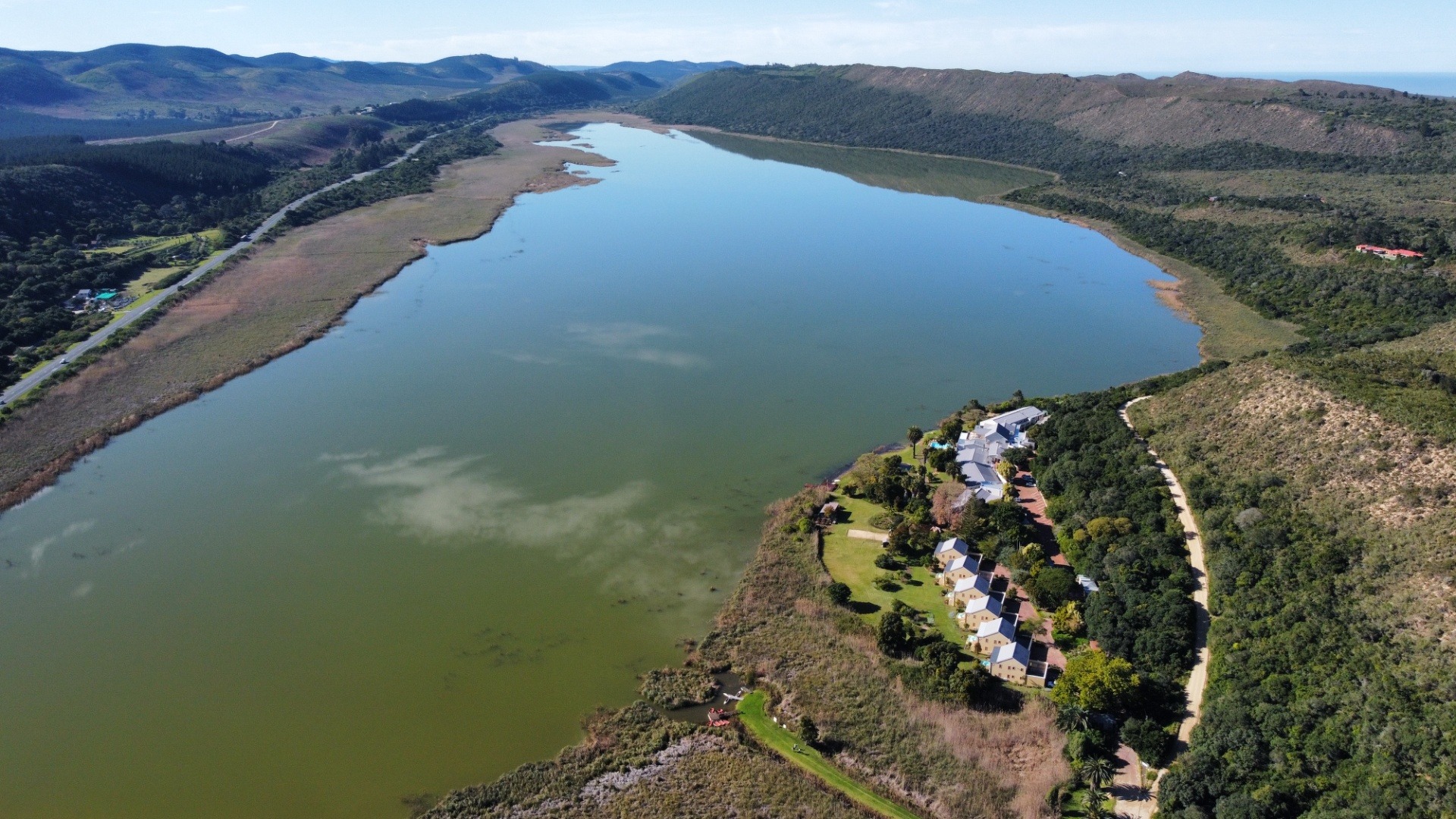 Discover an exceptional residential opportunity within a secure eco-estate in Sedgefield Rural, Sedgefield. This modern property, spanning 130 sqm on a generous 2.00 ha erf, offers a tranquil lakefront lifestyle amidst verdant hills and lush natural surroundings. The architecture features light facades and dark roofs, blending seamlessly with the picturesque landscape, promising both privacy and a serene retreat.