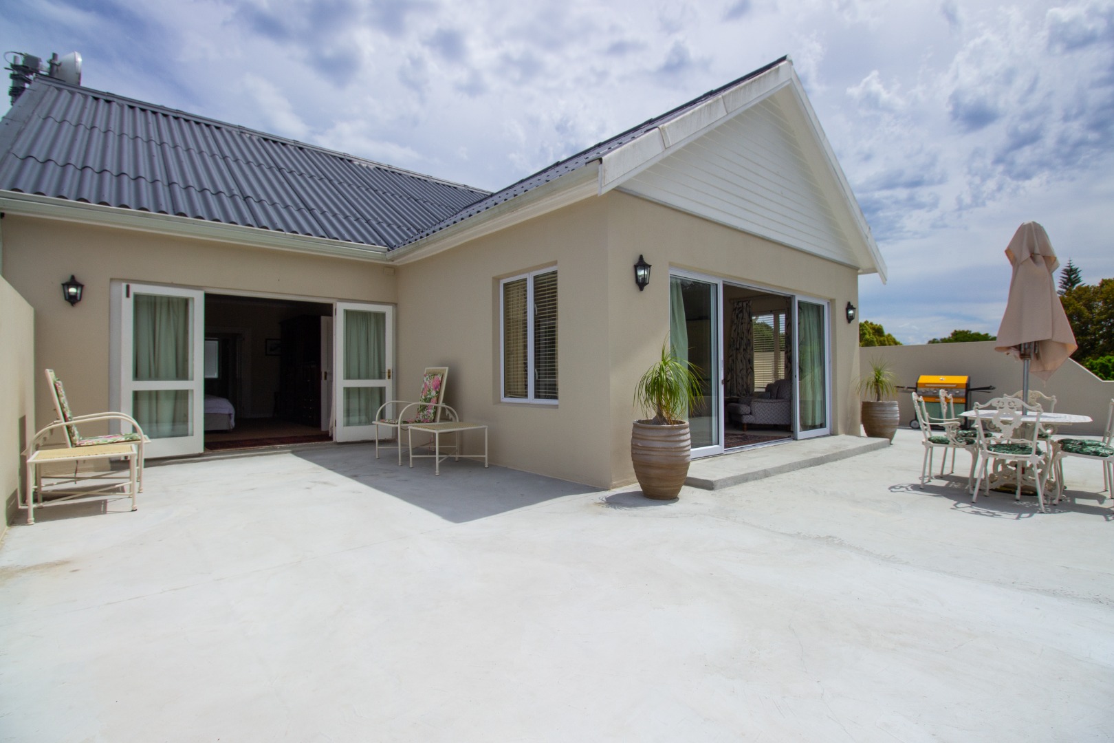 The interior boasts a well-designed layout with two comfortable bedrooms, each featuring an en-suite bathroom for ultimate convenience and privacy. Enjoy spacious living with a dedicated dining room, a welcoming lounge, and an additional family TV room, providing ample space for relaxation and entertainment. The property benefits from an open-plan design and a special balcony feature, enhancing the flow and connection to the stunning outdoor environment. A functional kitchen with a pantry completes the living spaces.