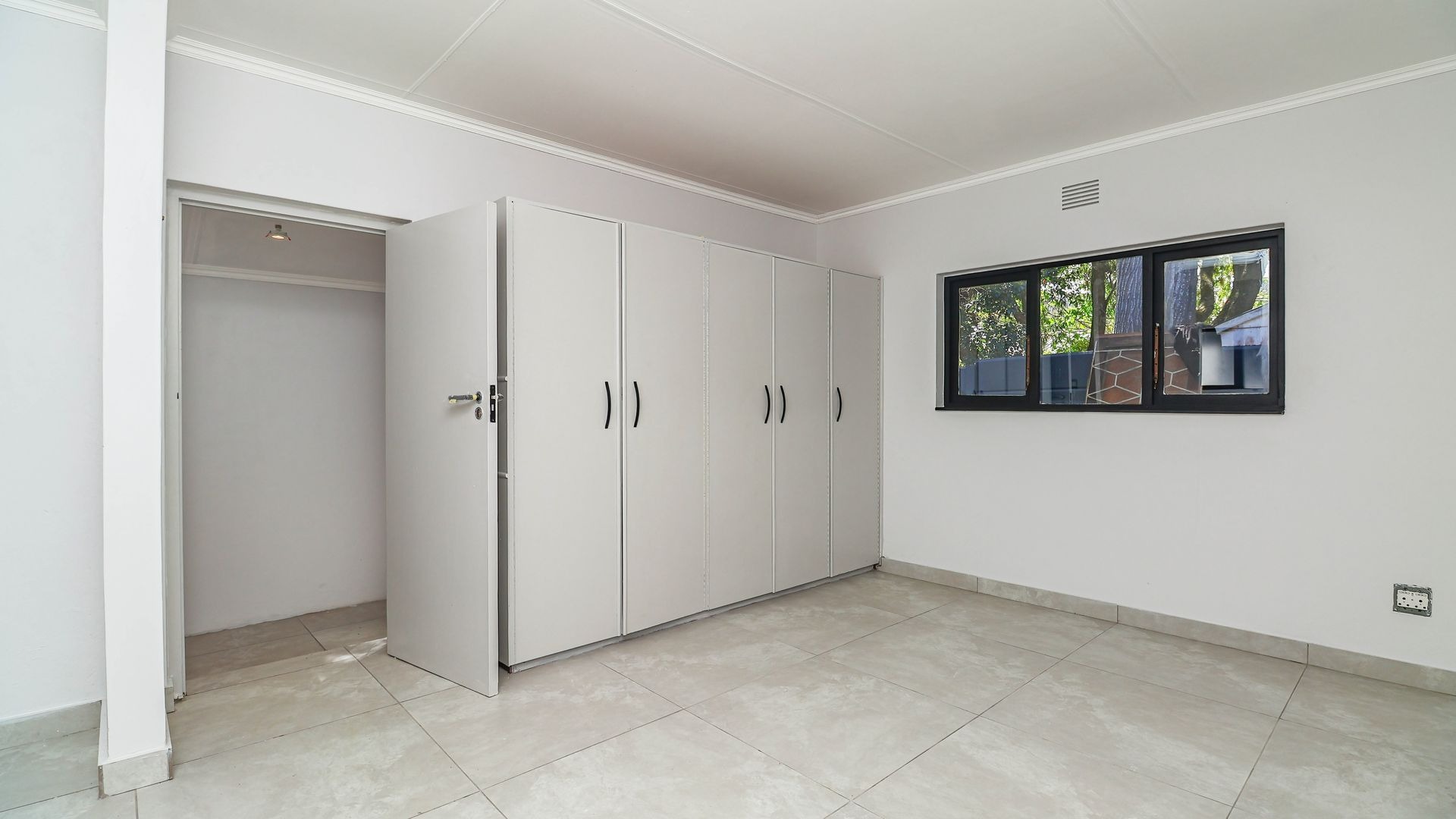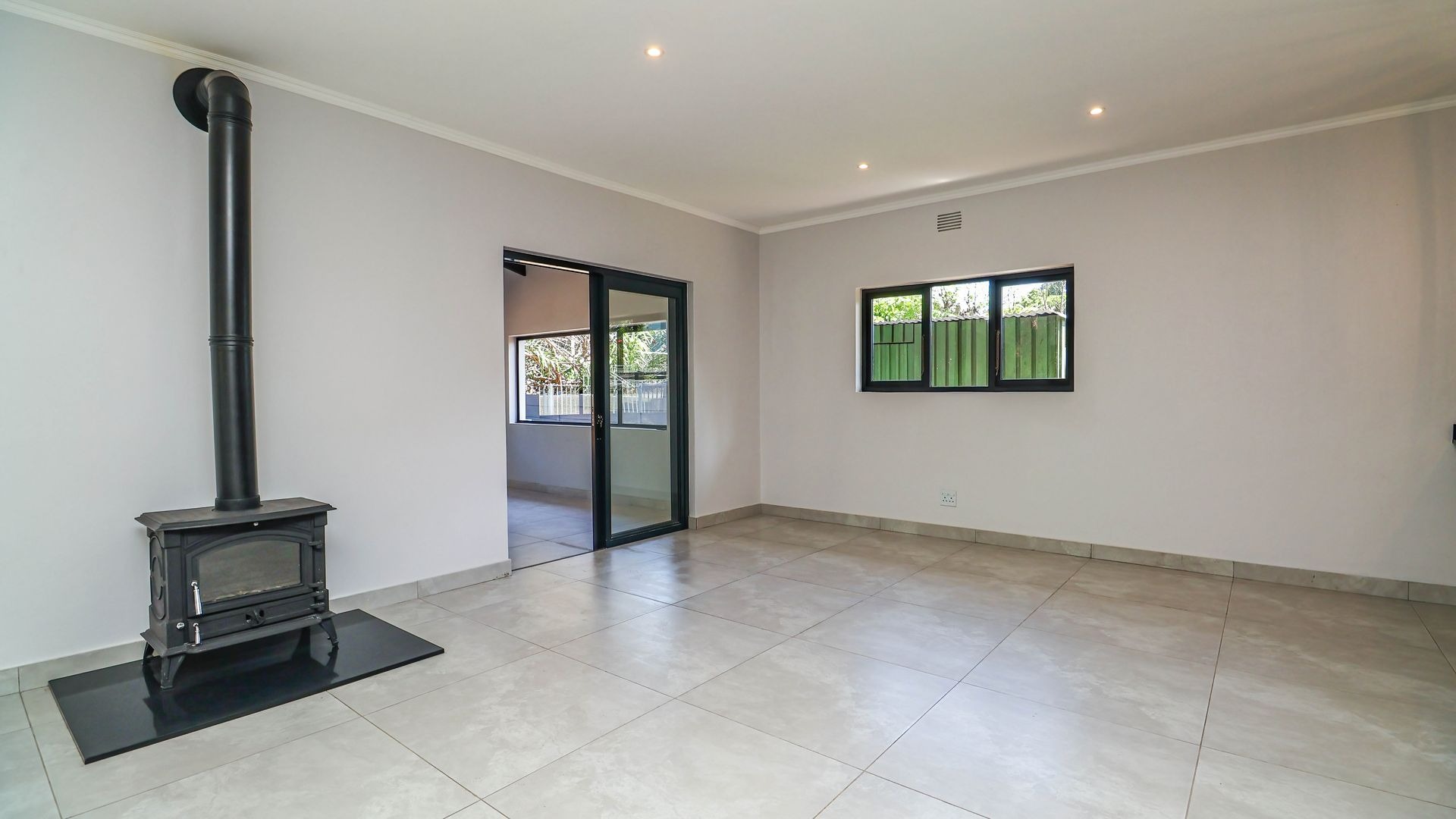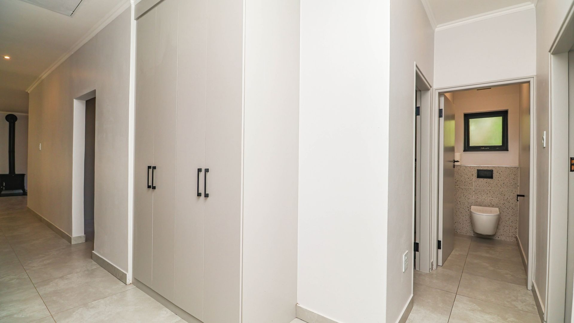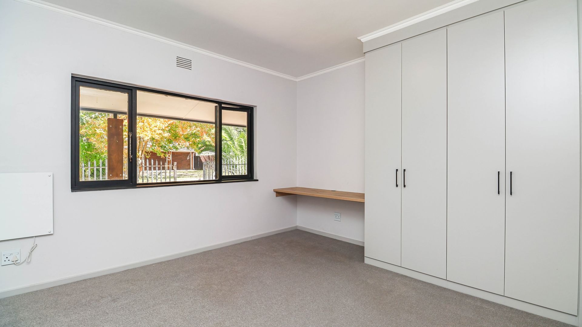 Inside, the home is thoughtfully designed to ensure comfortable family living. The layout includes three generously sized bedrooms that provide ample space for rest and relaxation. Each bedroom has been fitted with carpeting offering a warm and cosy feel underfoot, while the rest of the house is finished with sleek, easy-to-maintain tiles for practicality and style. There are built-in cupboards and a wall heater in each room. There are two modern bathrooms, one of which is a private en-suite attached to the main bedroom.