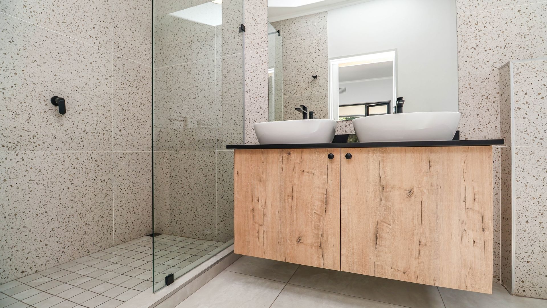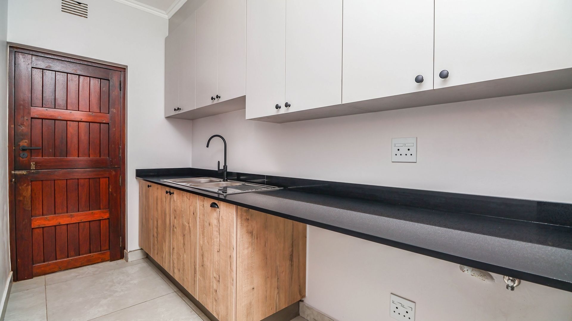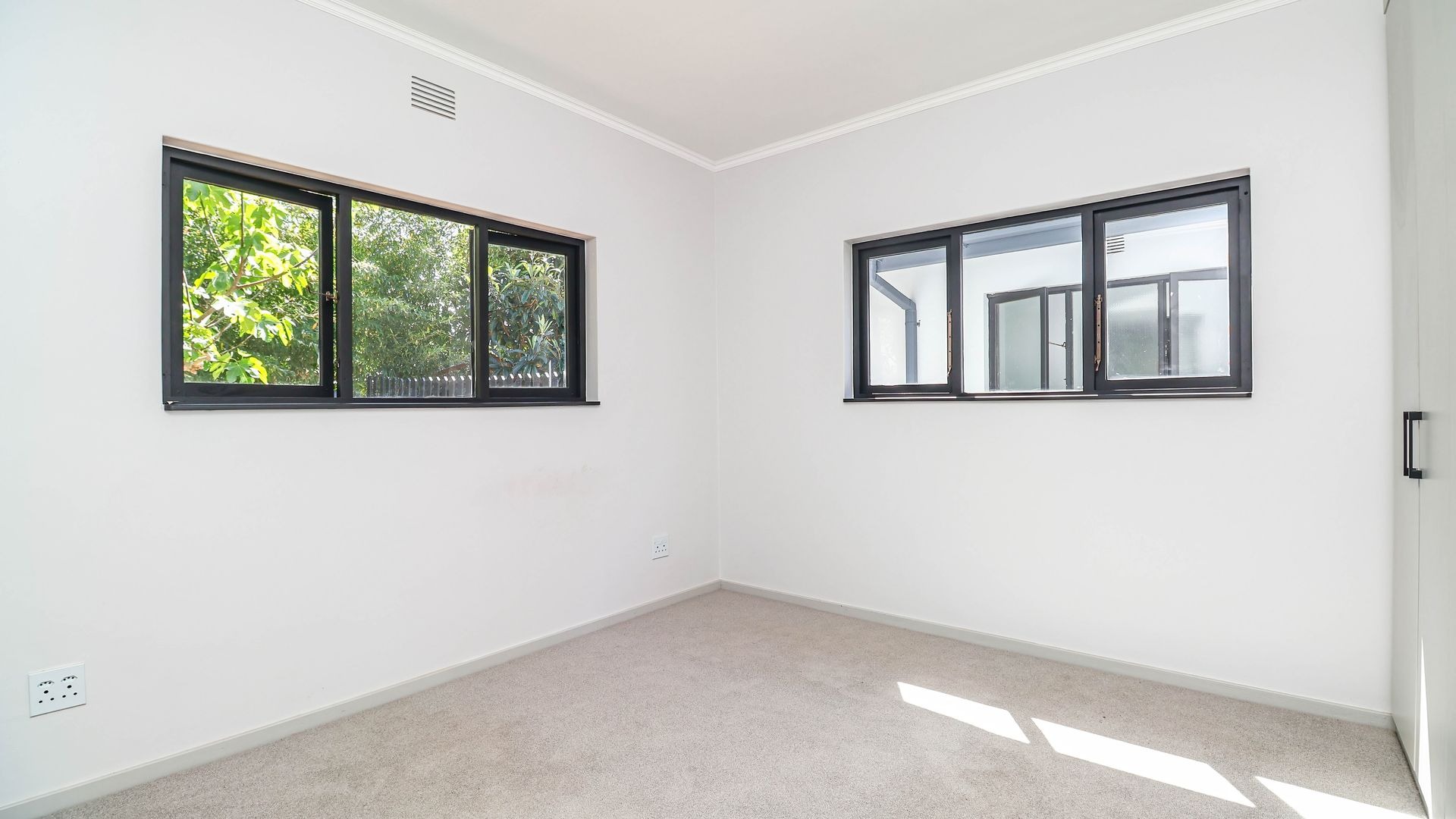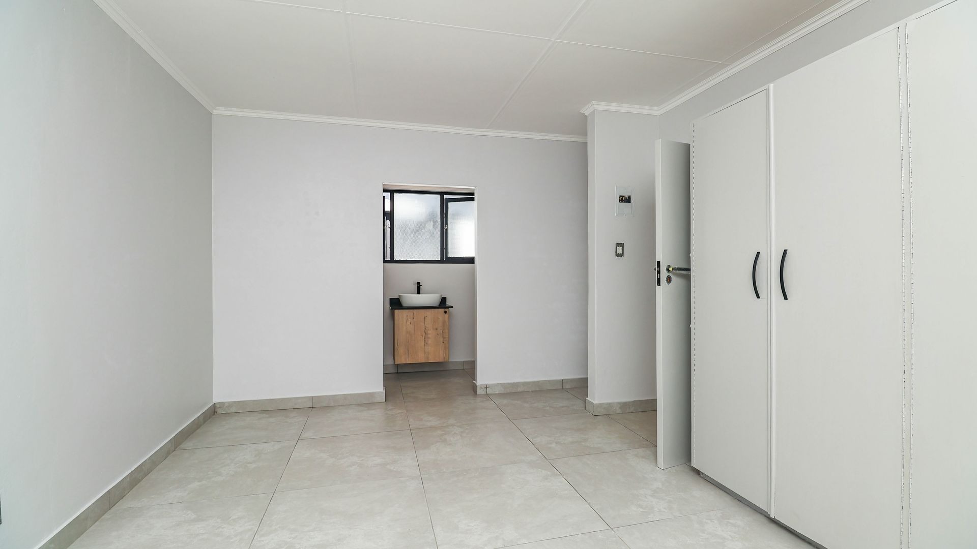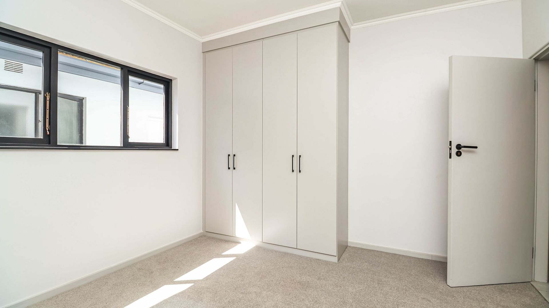 Inside, the home is thoughtfully designed to ensure comfortable family living. The layout includes three generously sized bedrooms that provide ample space for rest and relaxation. Each bedroom has been fitted with carpeting offering a warm and cosy feel underfoot, while the rest of the house is finished with sleek, easy-to-maintain tiles for practicality and style. There are built-in cupboards and a wall heater in each room. There are two modern bathrooms, one of which is a private en-suite attached to the main bedroom.