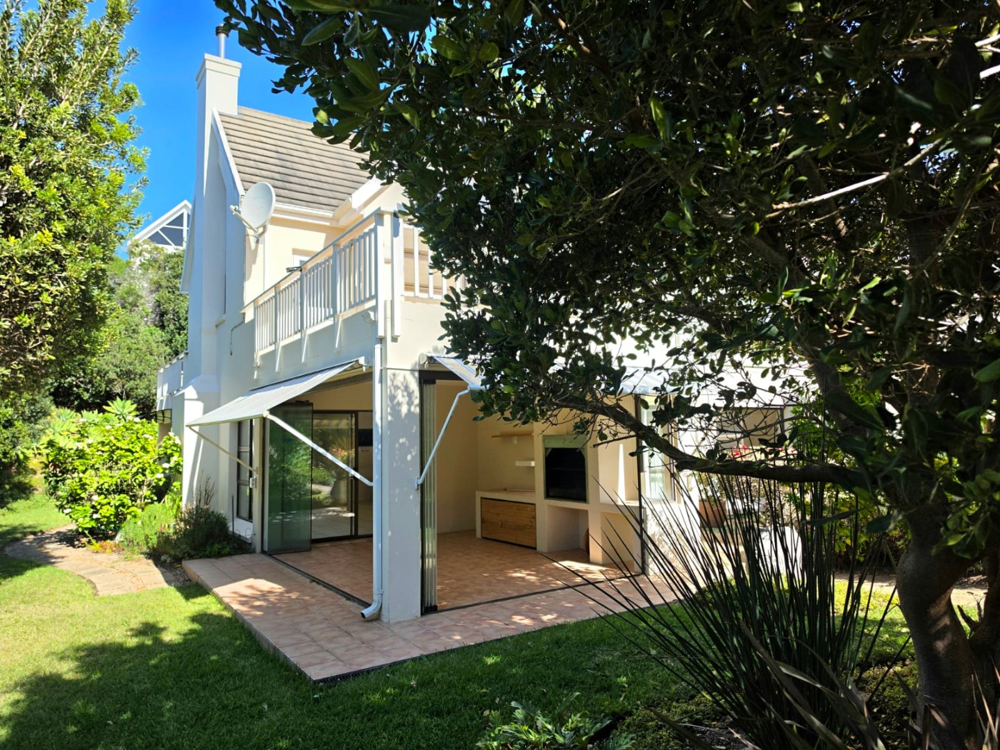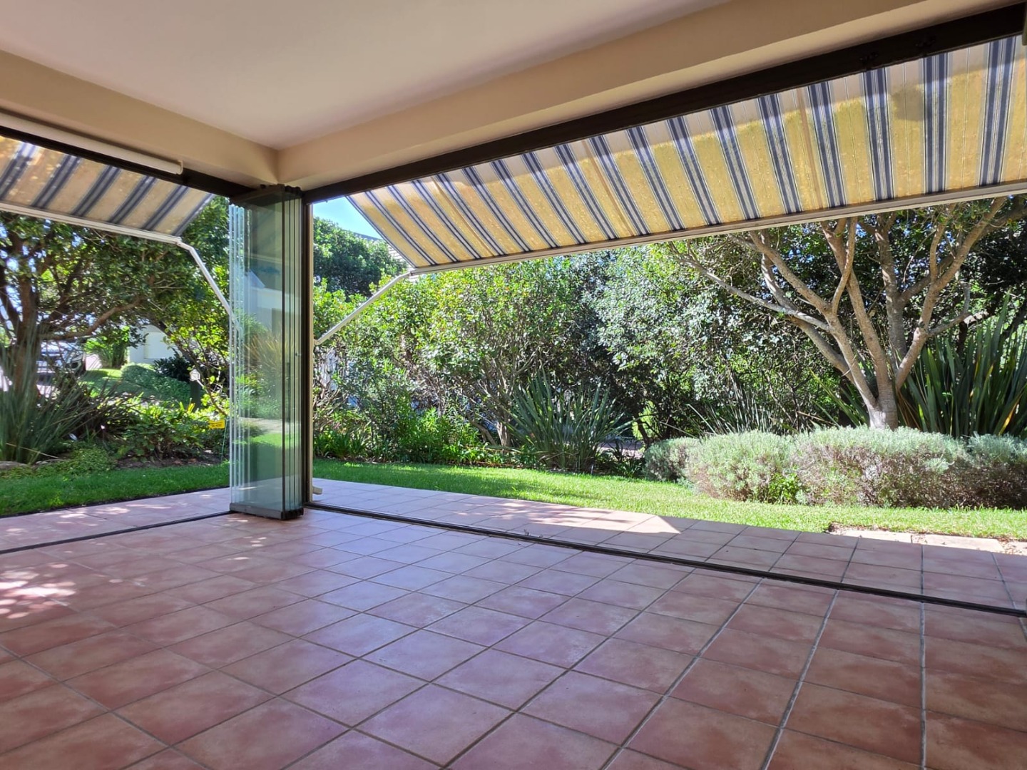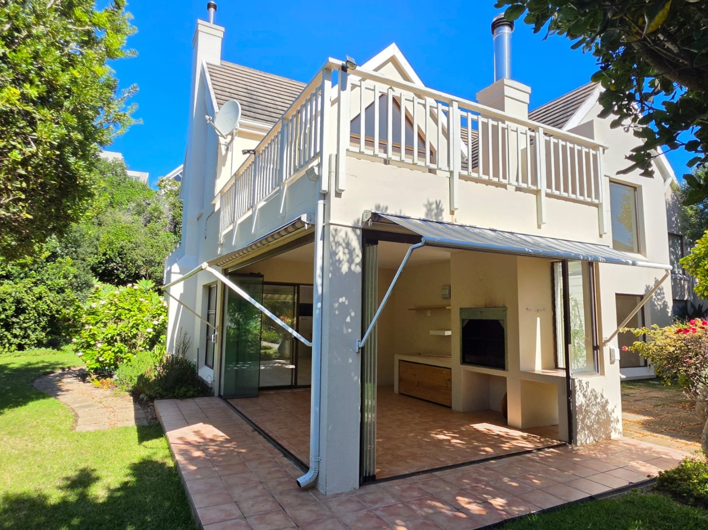 Entertainment Gold: A massive north-facing enclosed braai room with stacking doors that merge the indoors with a vibrant, manicured garden.