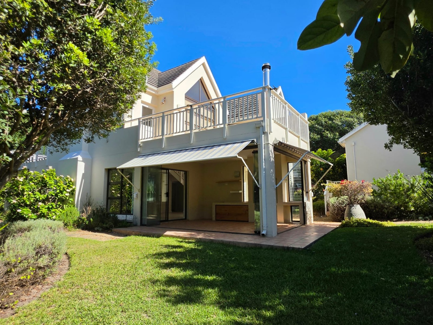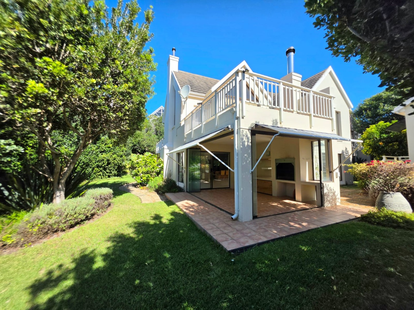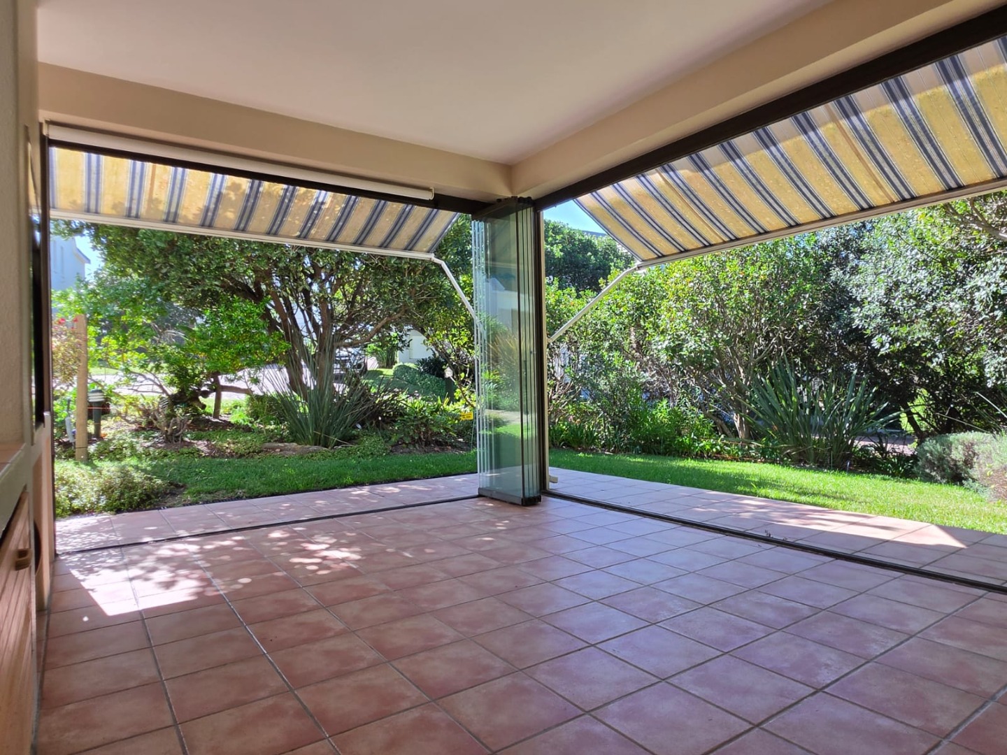 Entertainment Gold: A massive north-facing enclosed braai room with stacking doors that merge the indoors with a vibrant, manicured garden.