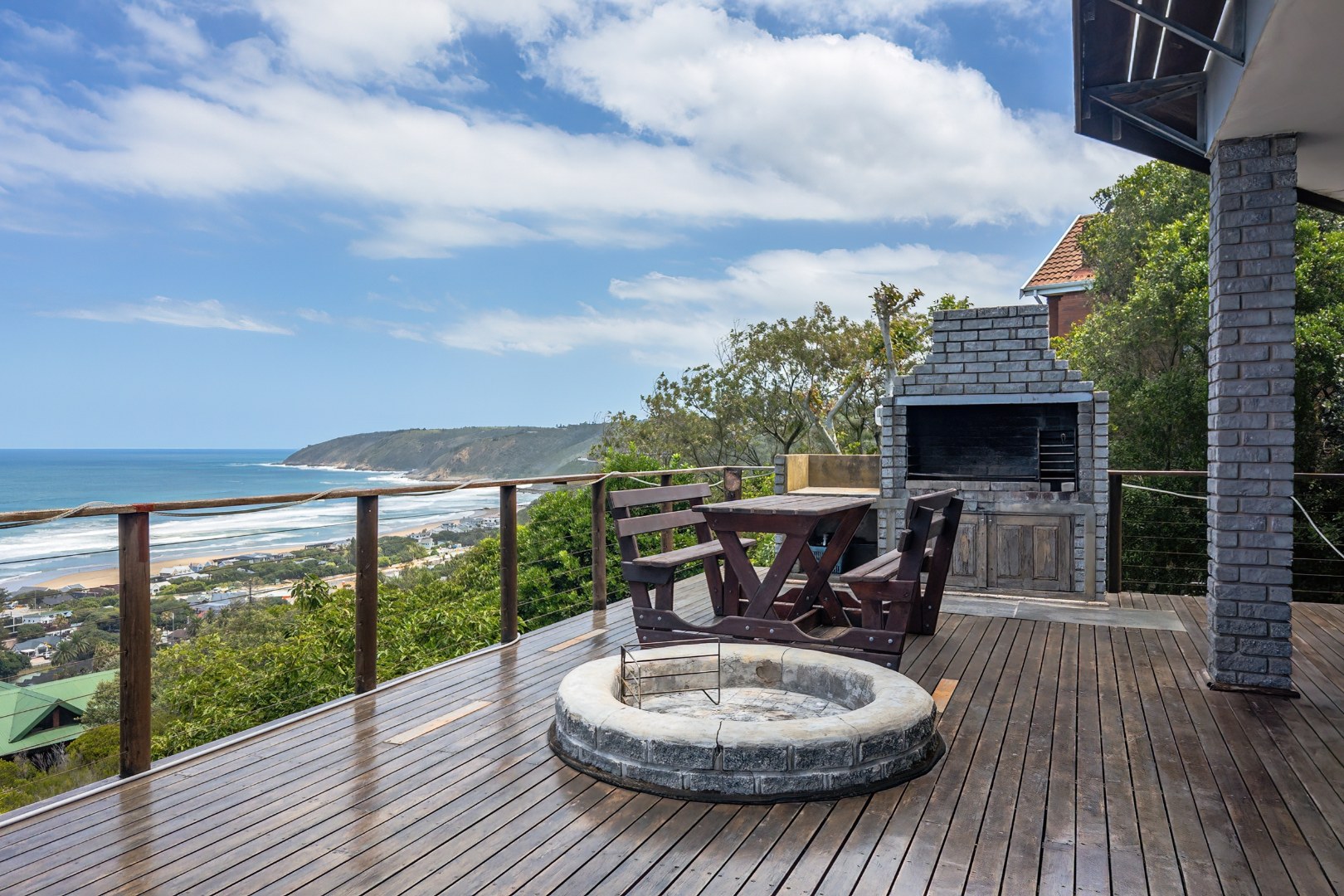 Outdoor living is a true highlight of this Wilderness Central property. Multiple balconies / decks provide ideal vantage points for soaking in the stunning sea views and enjoying the coastal breeze. A built-in braai area with bomo is perfect for al fresco dining and entertaining, making the most of South Africa's beautiful climate. The property is fenced, offering security and allowing pets to roam freely within the grounds. Practical amenities include a double garage, single garage and two additional open parking spaces, ensuring ample secure parking for vehicles.