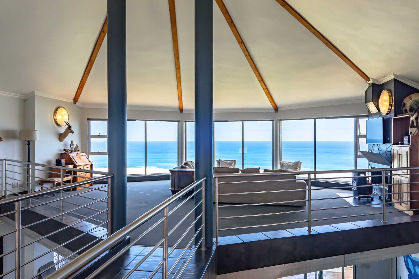 Perched majestically on an elevated hillside in the sought-after Constantia Kloof this exceptional four-bedroom residence offers an unparalleled coastal living experience. Boasting breathtaking panoramic views of the ocean, expansive coastline, and the serene river/lagoon, this multi-story property is designed to maximize its spectacular natural surroundings. The generous 1166 sqm erf provides ample space, while the floor plan ensures comfortable and luxurious living.