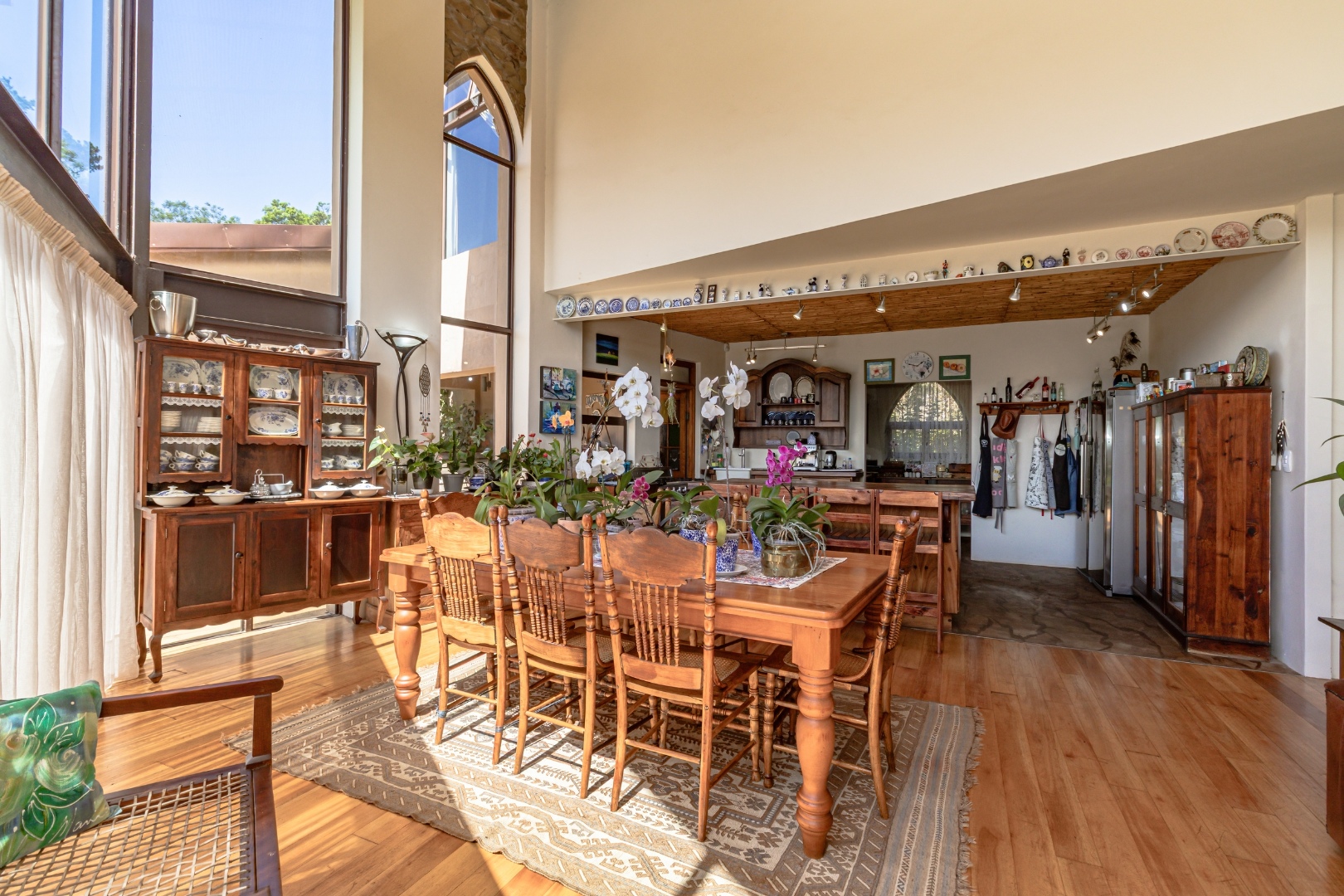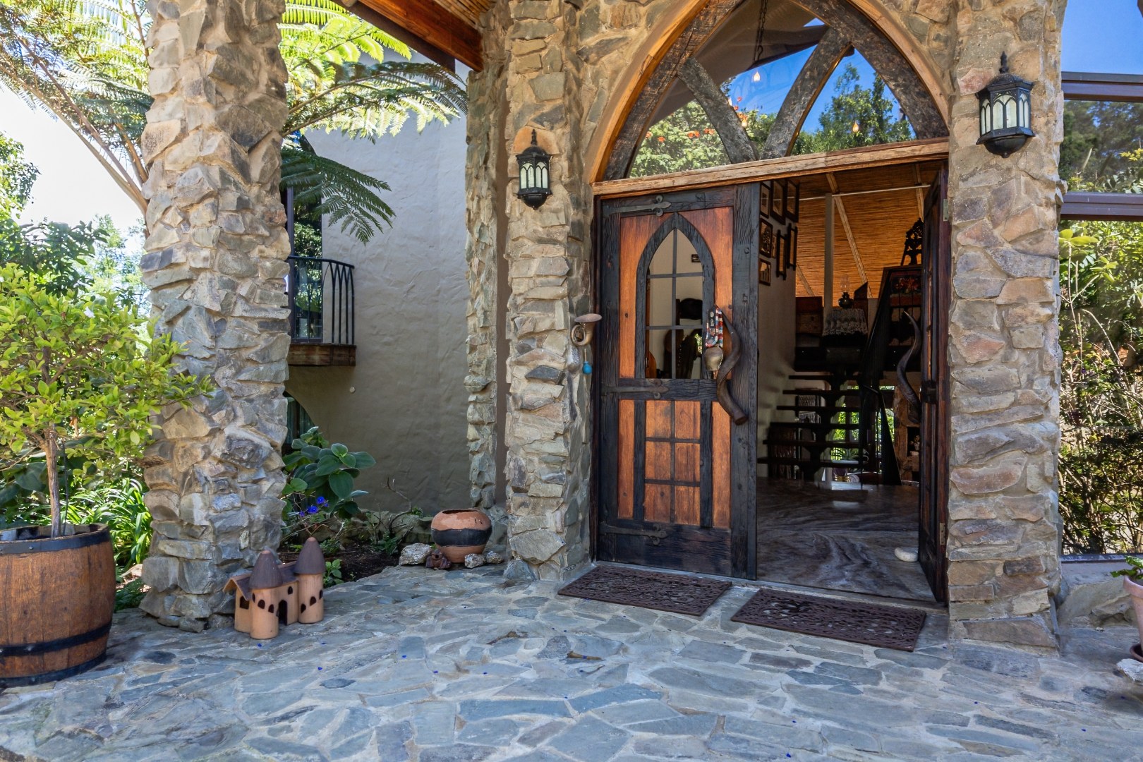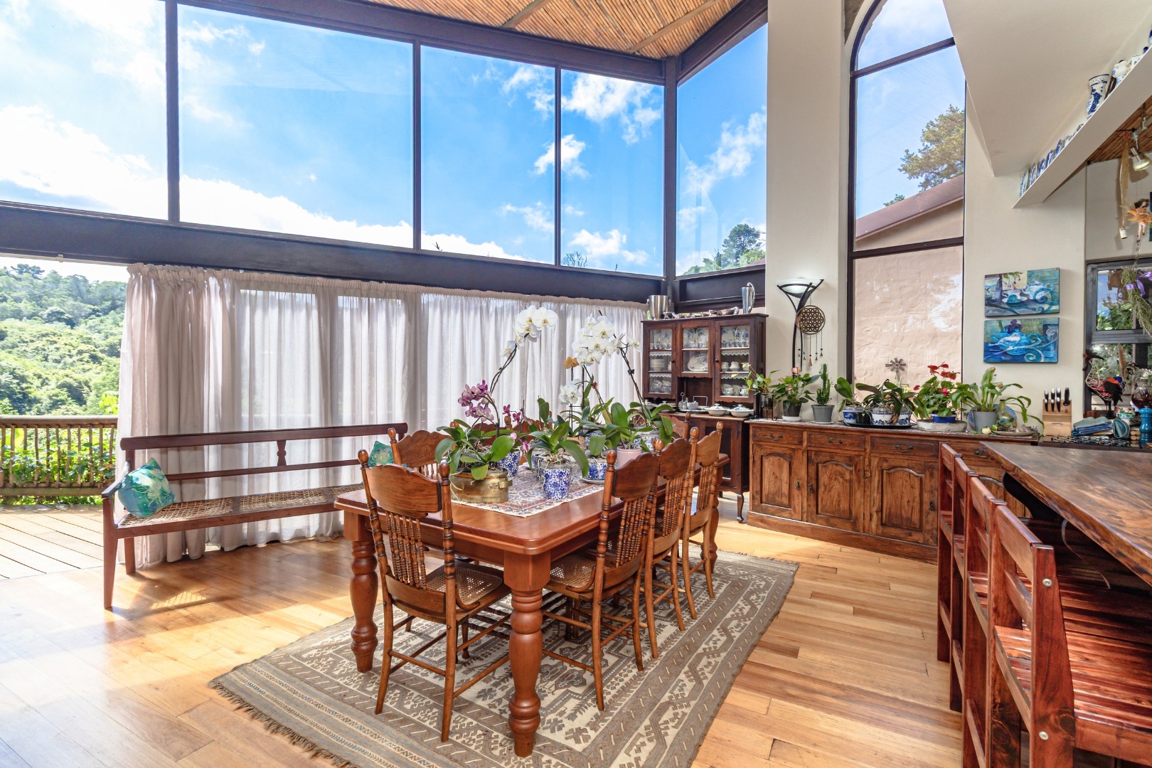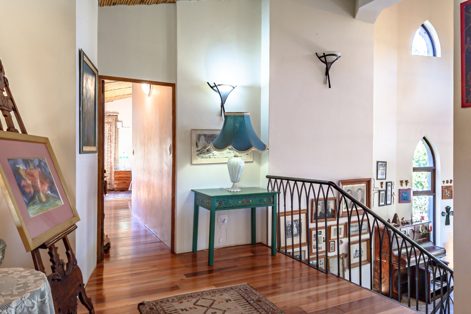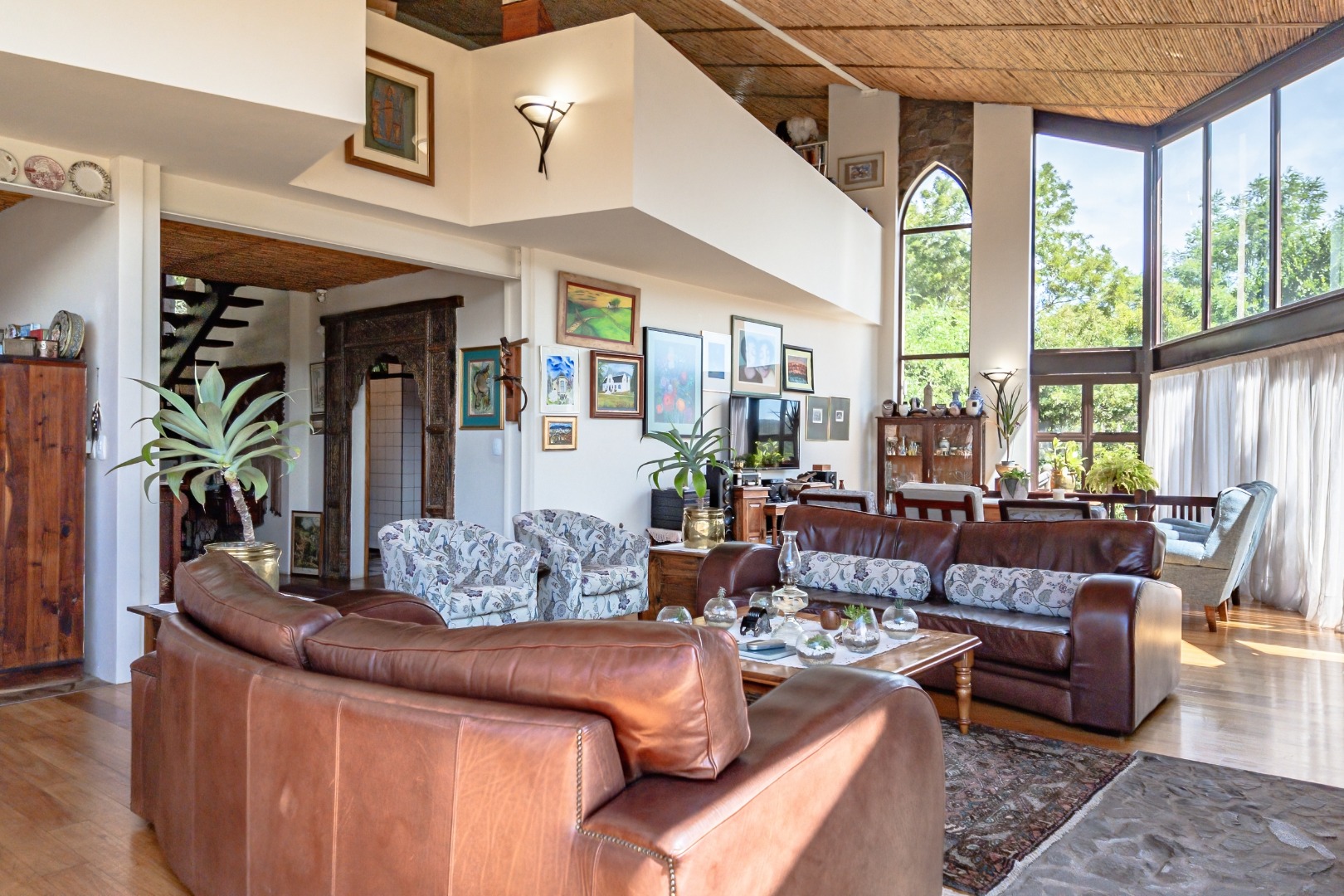 Discover a truly unique residential offering in the serene Wilderness Heights, South Africa. This secluded sanctuary, set on an expansive 3.05-hectare plot, boasts a desirable sunny north aspect and breathtaking views over an indigenous forest. The property welcomes you through a distinctive Gothic-style stone clad south entrance, featuring solid wood doors that open into a dramatic double-volume tower.