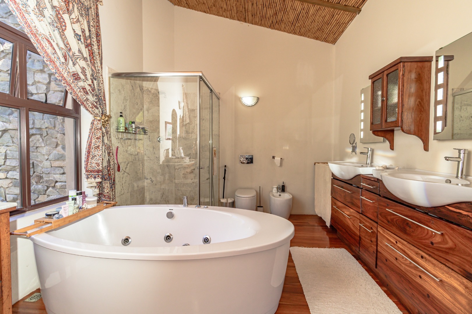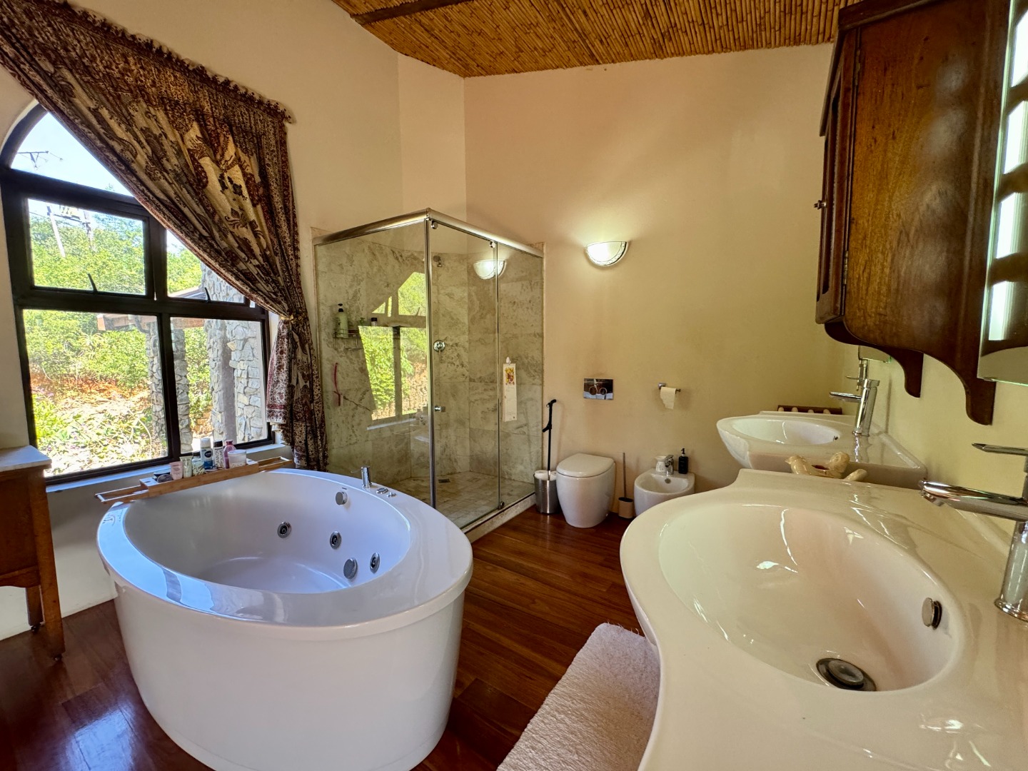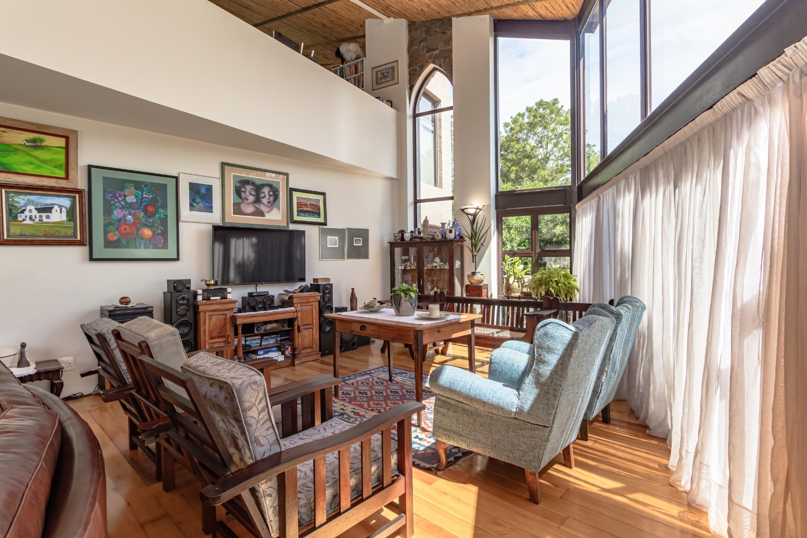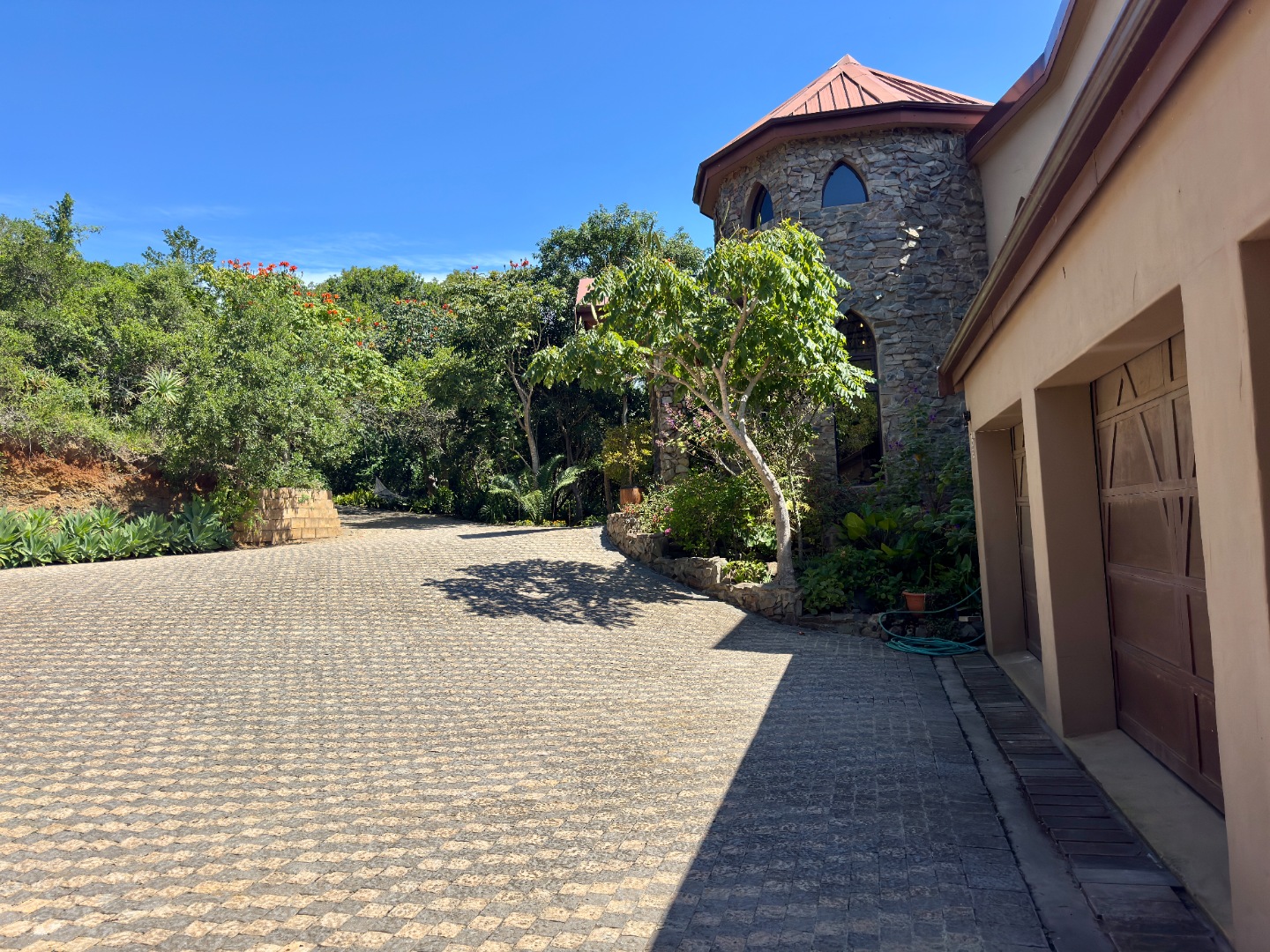 Discover a truly unique residential offering in the serene Wilderness Heights, South Africa. This secluded sanctuary, set on an expansive 3.05-hectare plot, boasts a desirable sunny north aspect and breathtaking views over an indigenous forest. The property welcomes you through a distinctive Gothic-style stone clad south entrance, featuring solid wood doors that open into a dramatic double-volume tower.