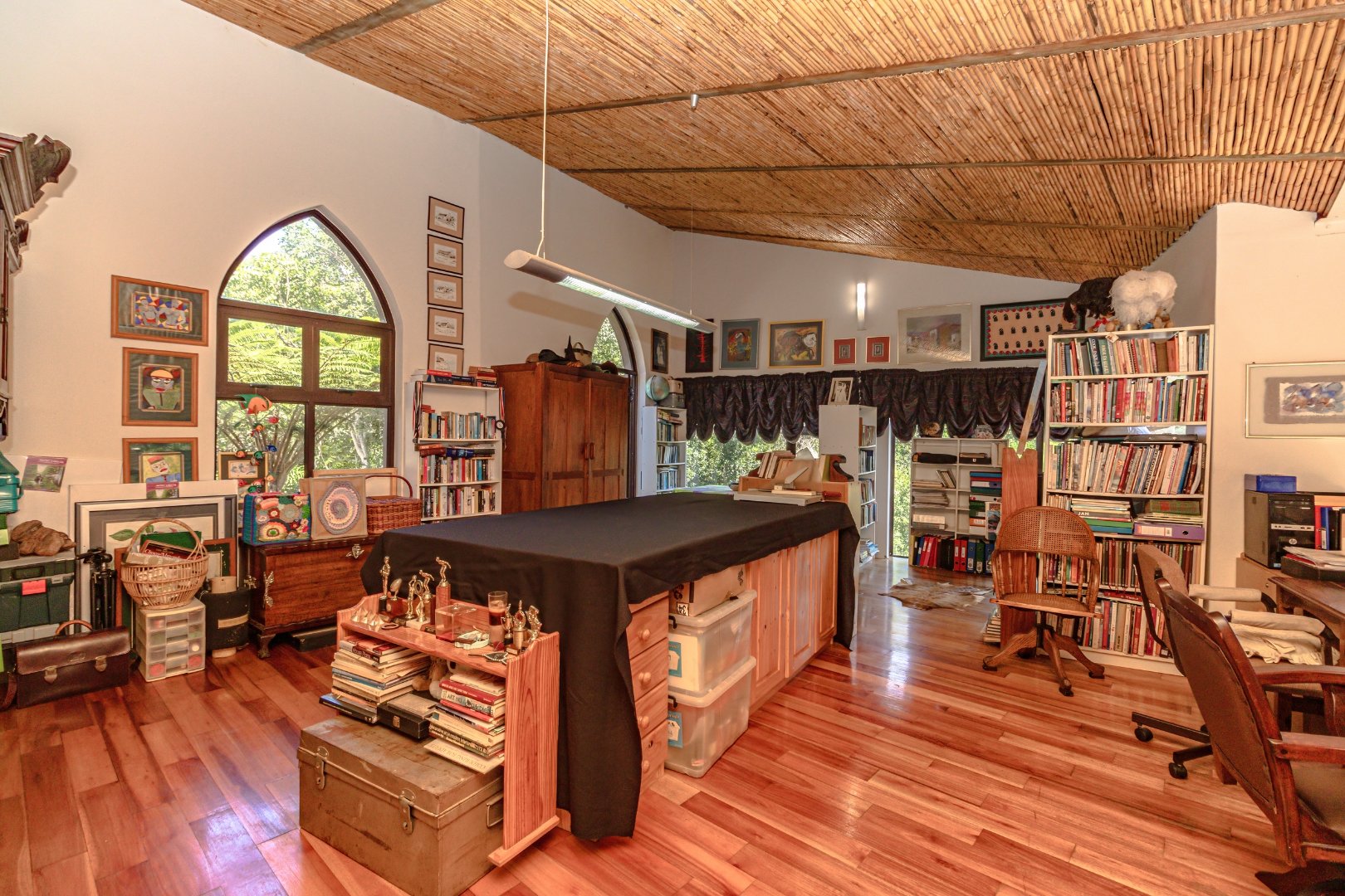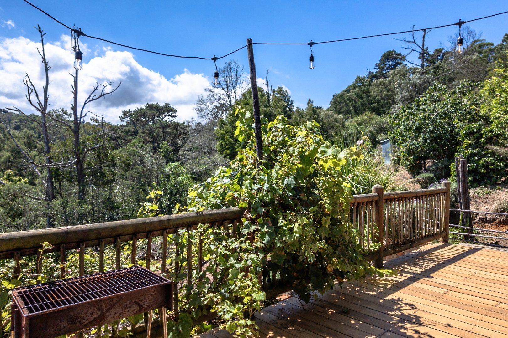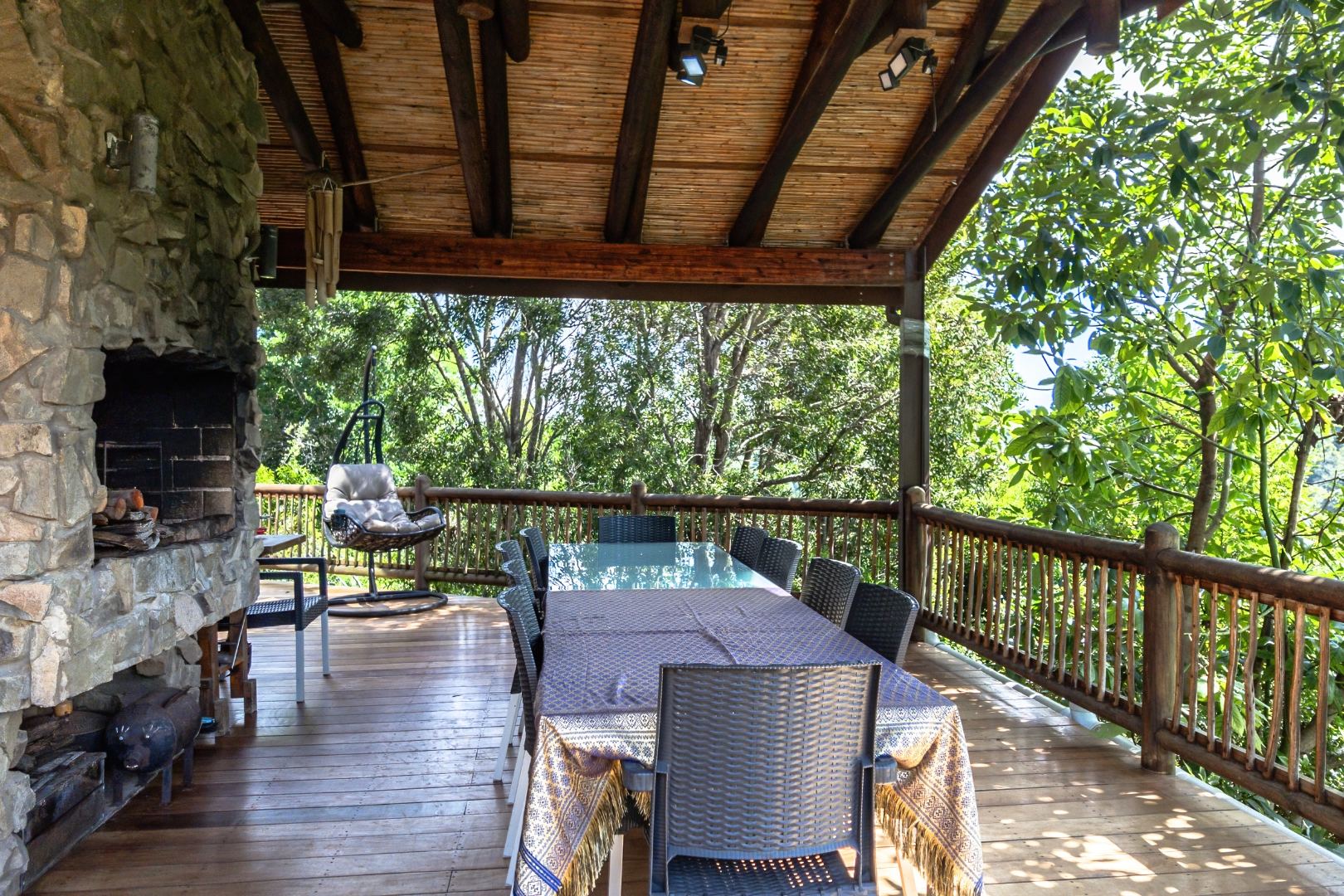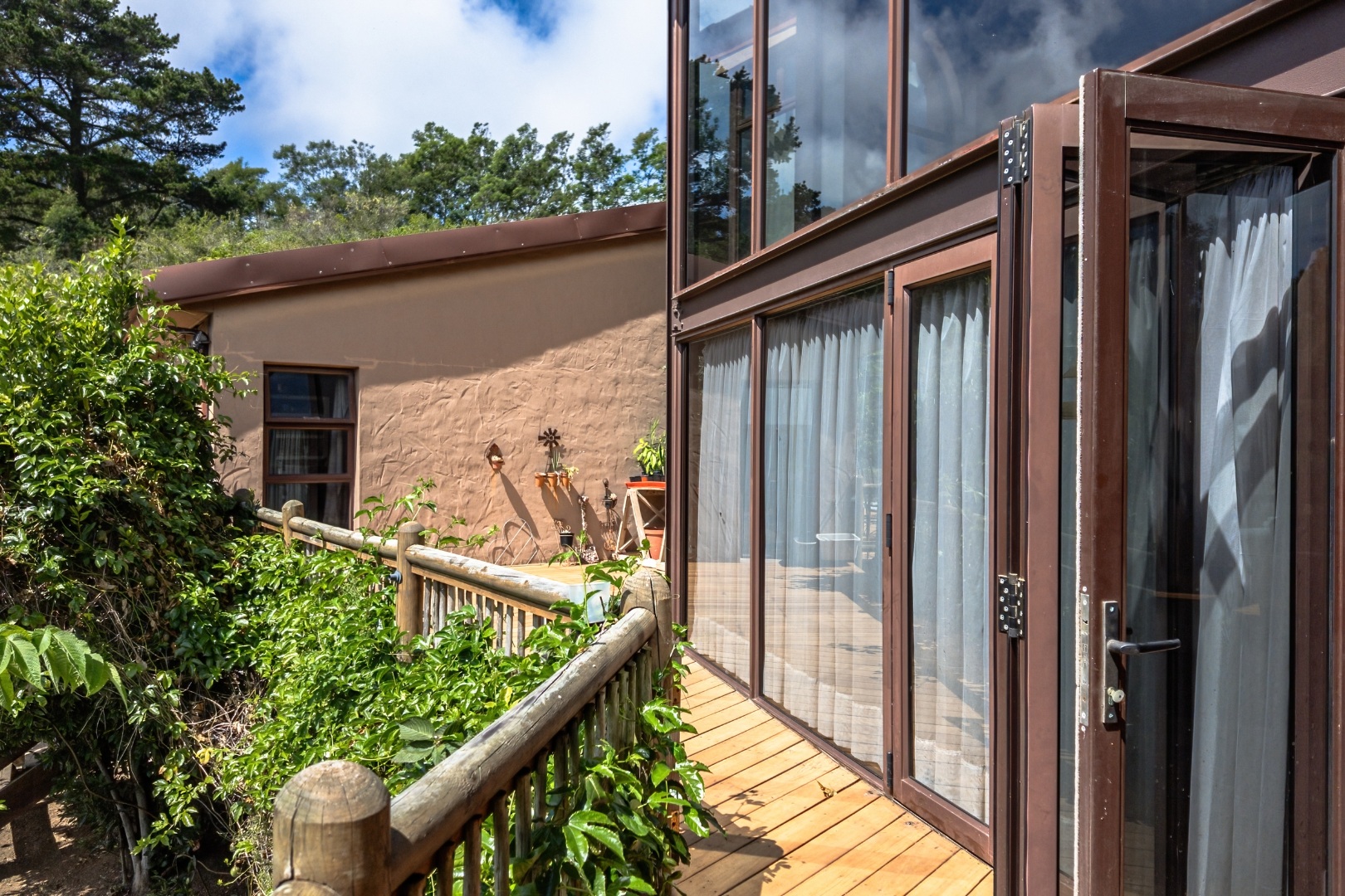 Adding to the property's appeal is a separate studio apartment, complete with a loft, its own kitchen, bathroom, and a private deck, offering flexibility for guests or rental income. Practical amenities include three garages and ample additional parking. The grounds are a nature lover's dream, featuring approximately 18 different fruit trees, a small dam, a dedicated veggie patch, and a chicken coop, all contributing to a self-sufficient country lifestyle. This property is secured with motion light sensors and an alarm system. Experience unparalleled tranquility and natural beauty in this exceptional home.