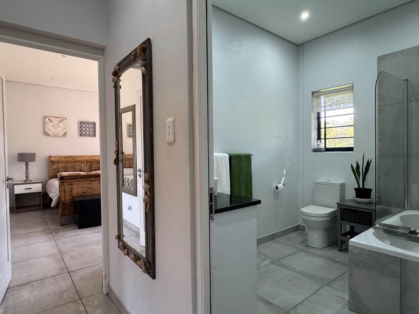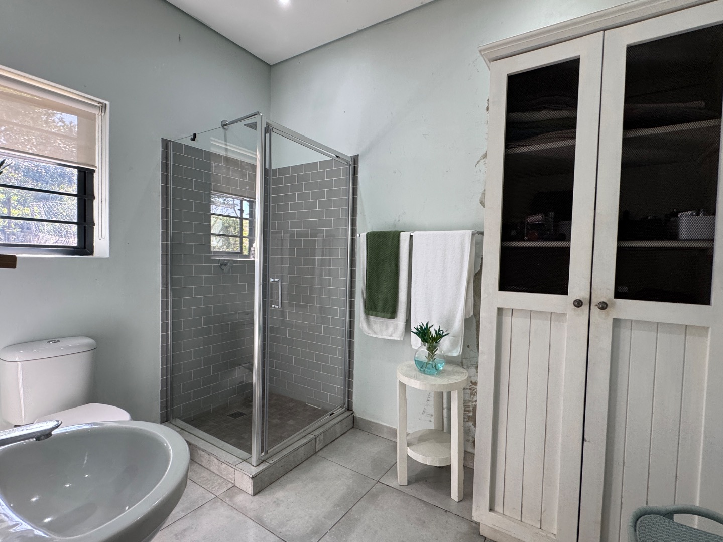 Bask in the sun by the saltwater pool or fire up the built-in braai for unforgettable gatherings. The gourmet kitchen, complete with a preparation island and separate scullery, is an entertainer’s delight. A cozy lounge with a fireplace, a versatile study (or 4th bedroom), and a bathroom complete this level.