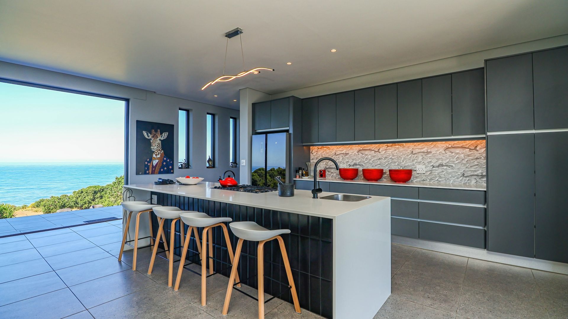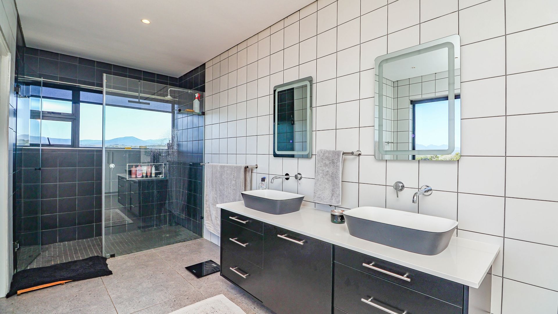 This well designed home captures the essence of luxury and functionality. The ground floor welcomes you with an expansive open-plan living area, where sliding doors open to a north-facing entertainment space with majestic mountain vistas and a south-facing deck showcasing uninterrupted ocean views.