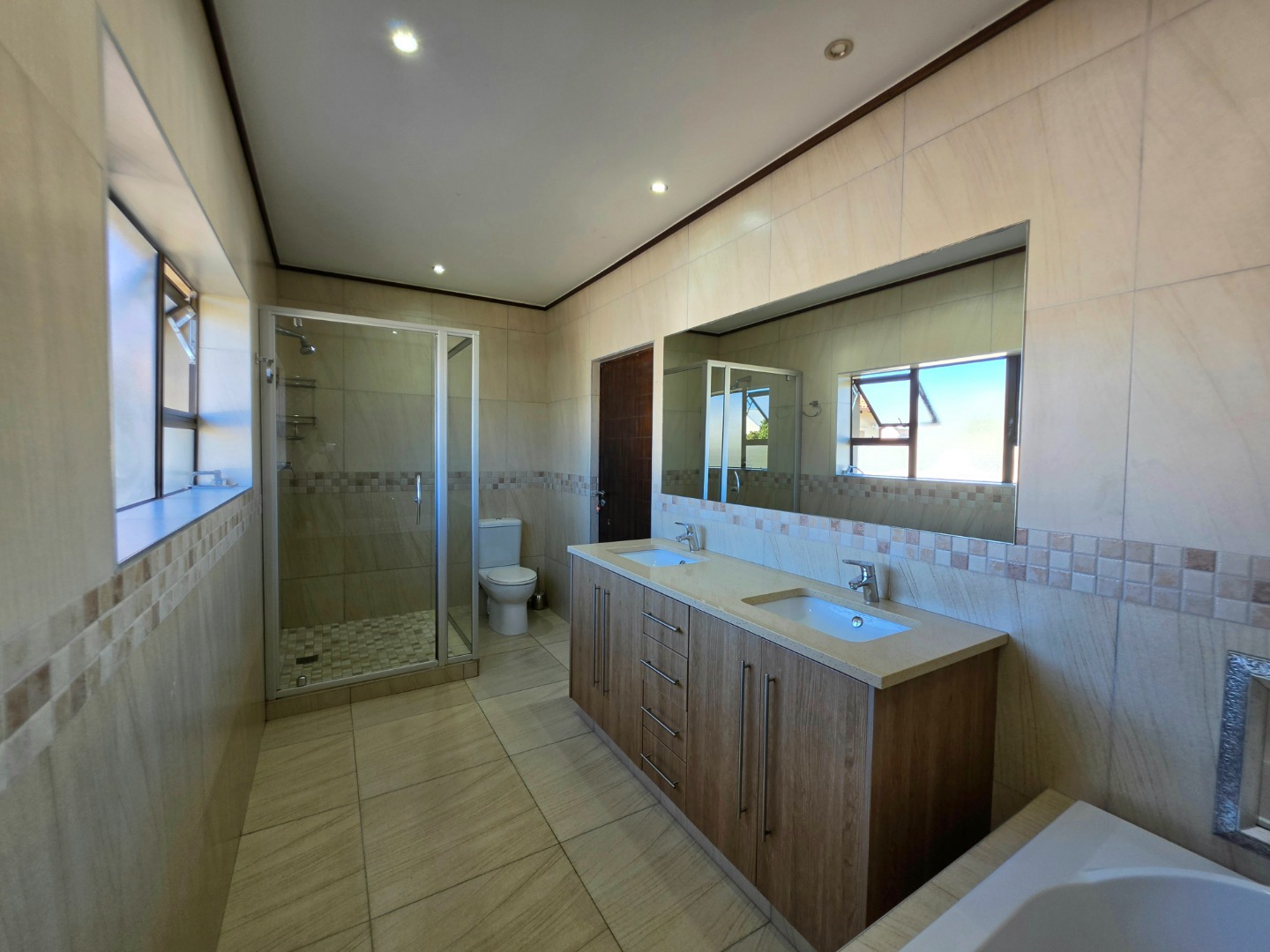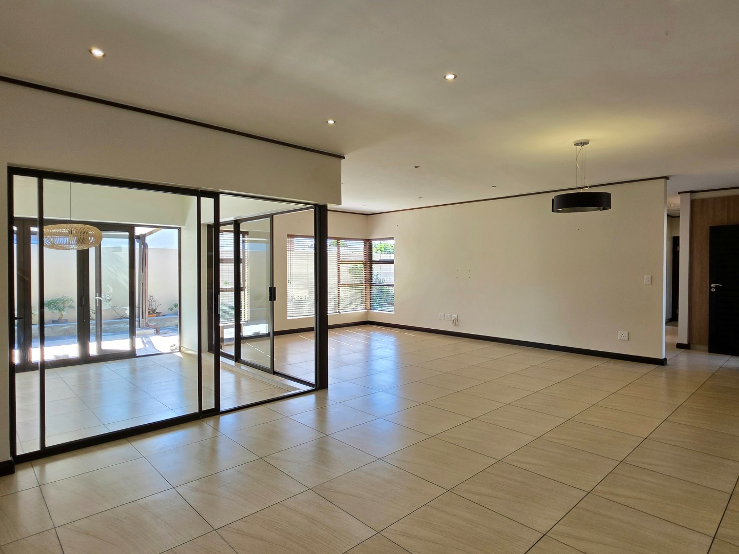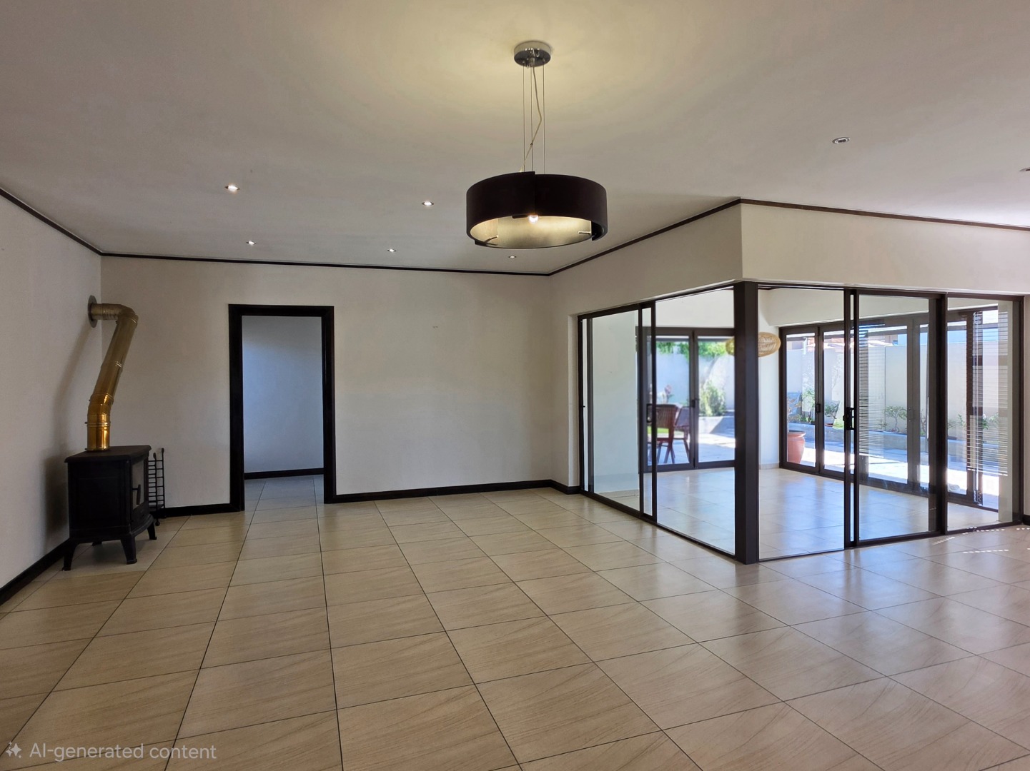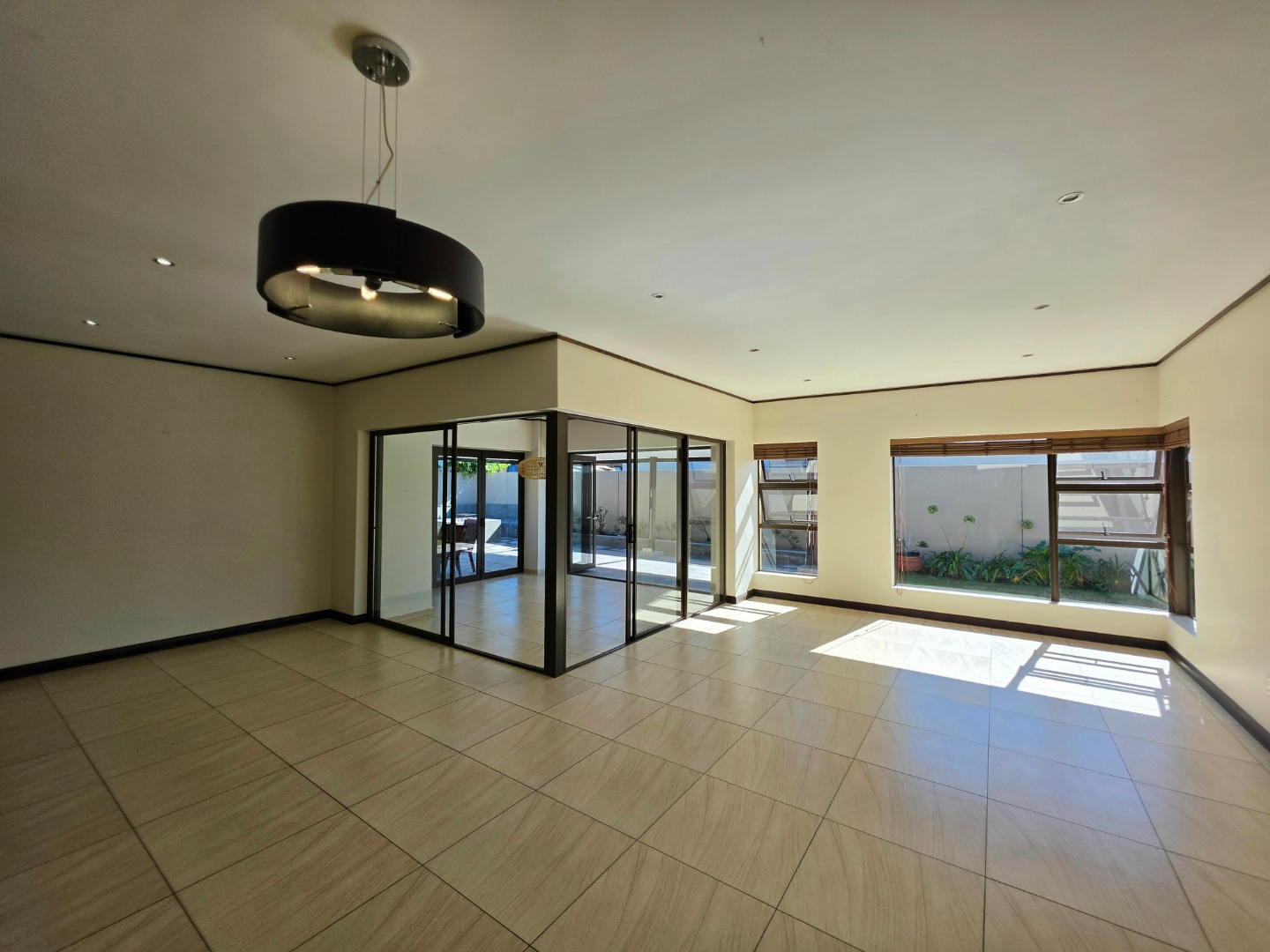 Elegant Interiors: An open-plan lounge and dining area flow into a designer kitchen equipped with a walk-in pantry and separate scullery.