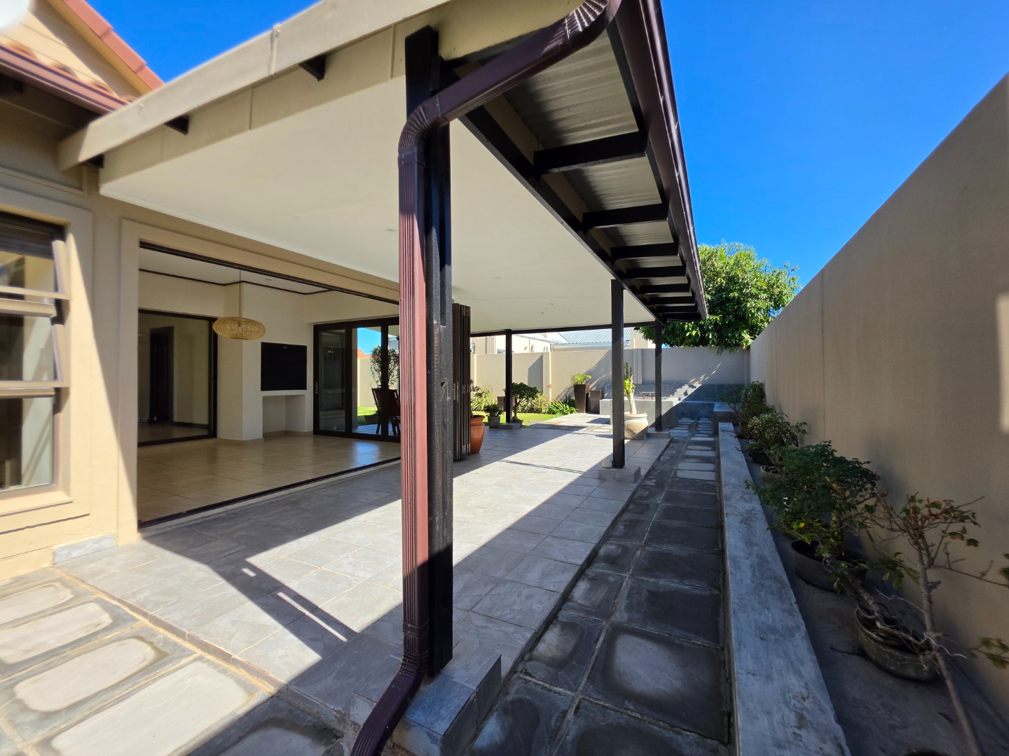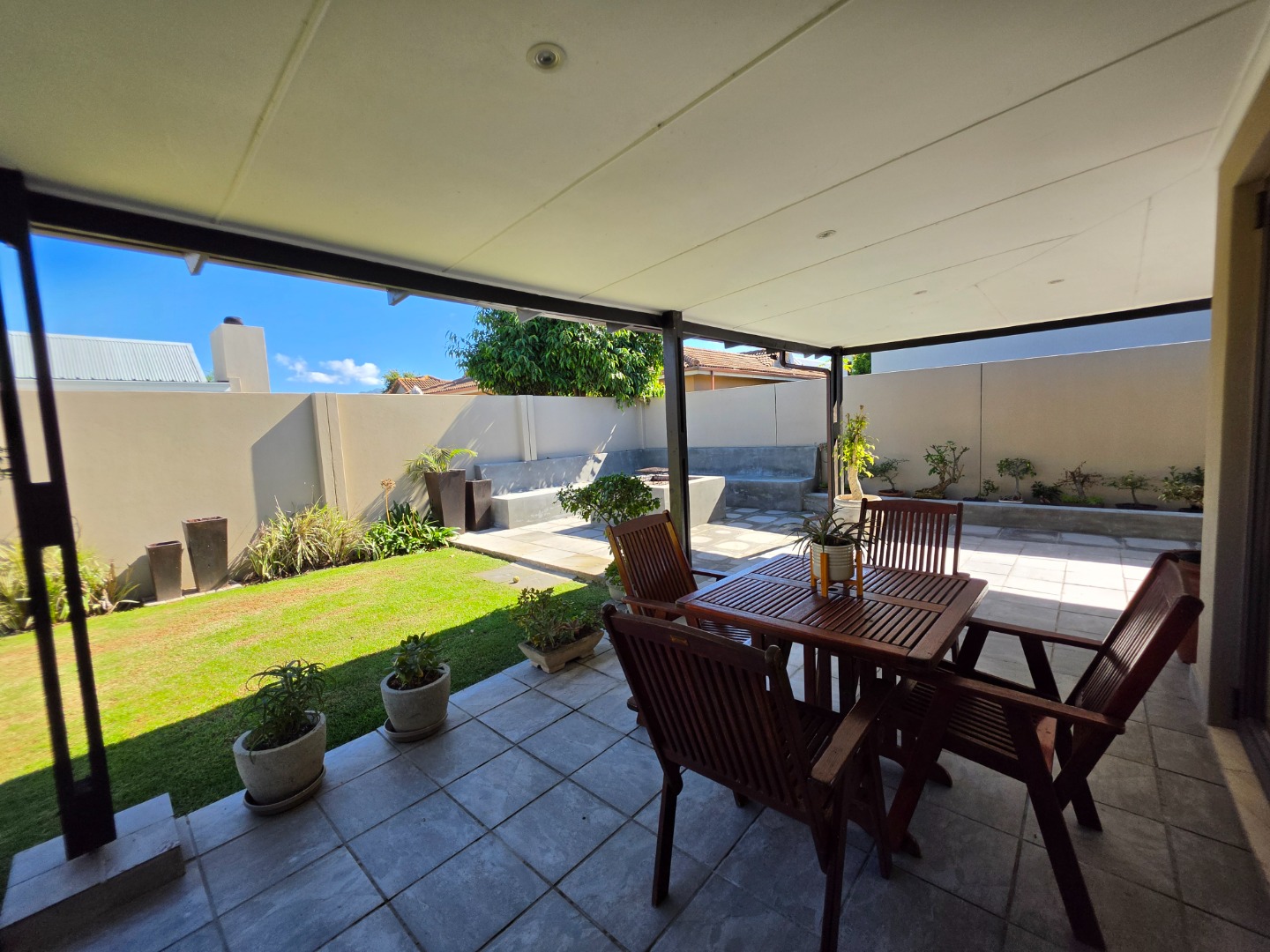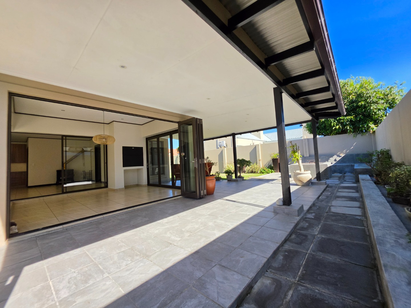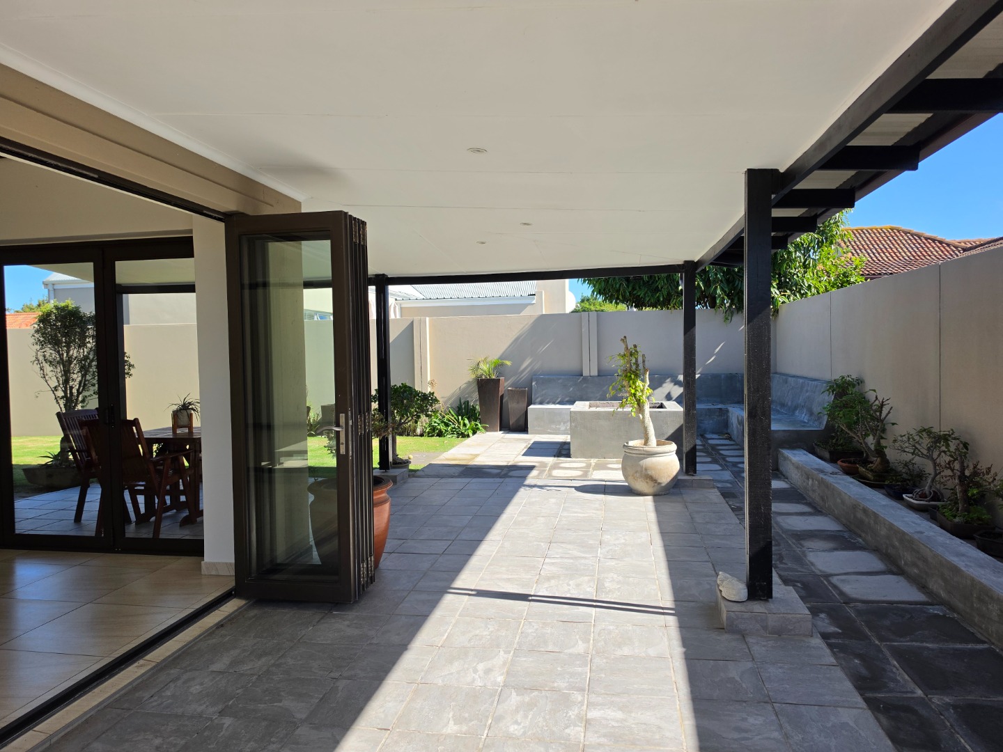 The Ultimate Haven: The cozy braai room features sliding doors on all four sides, opening completely to a wrap-around veranda.