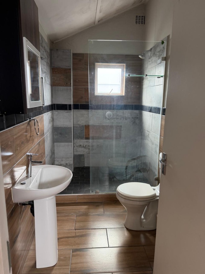 Discover this inviting 1-bedroom apartment available for rent in the heart of Knysna Central, South Africa. This property offers a well-designed layout featuring a comfortable lounge, a dedicated dining room, and a modern kitchen. The kitchen is equipped with stylish dark wood cabinets, wood-look countertops, and a gas range, complemented by an installed air conditioning unit for enhanced comfort. The open-plan design enhances the sense of space, while multiple windows ensure abundant natural light throughout the main living areas. Characterful wooden flooring is present in various sections, adding warmth to the interior. The apartment includes a contemporary bathroom, boasting a sleek pedestal sink, toilet, and a frameless glass shower enclosure with a mixed-tile design. A private outdoor deck, accessible via a sliding glass door, provides a tranquil space for relaxation, surrounded by mature trees. This rental also comes with one dedicated parking bay, adding convenience for residents. Ideal for professionals or individuals seeking a lock-up-and-go lifestyle, this apartment combines modern amenities with a prime location. Situated in the vibrant Knysna Central, residents will enjoy easy access to local amenities and the charm of Knysna. Key Features: * 1 Bedroom, 1 Bathroom * Modern Kitchen with Gas Range * Open-Plan Living and Dining Area * Private Outdoor Deck * Dedicated Parking Bay * Contemporary Bathroom Design * Central Knysna Location