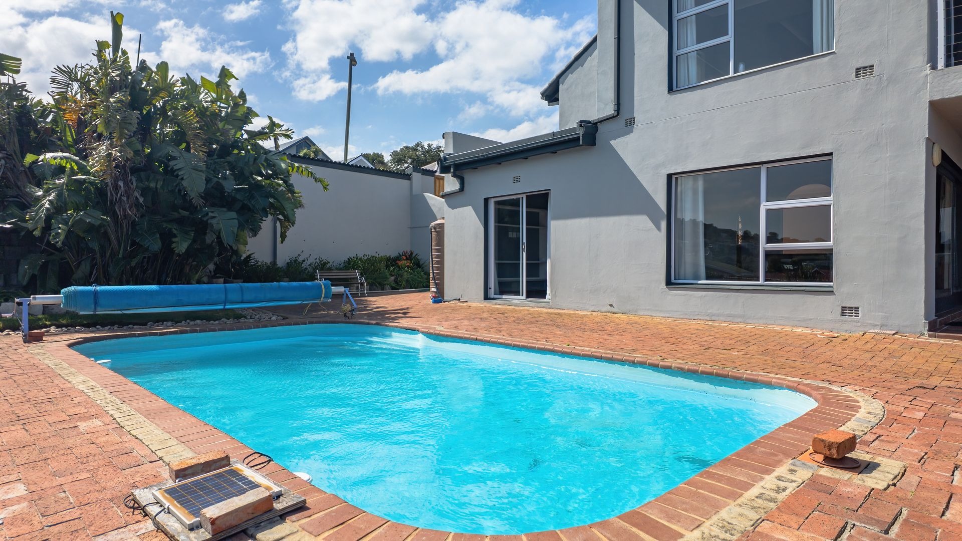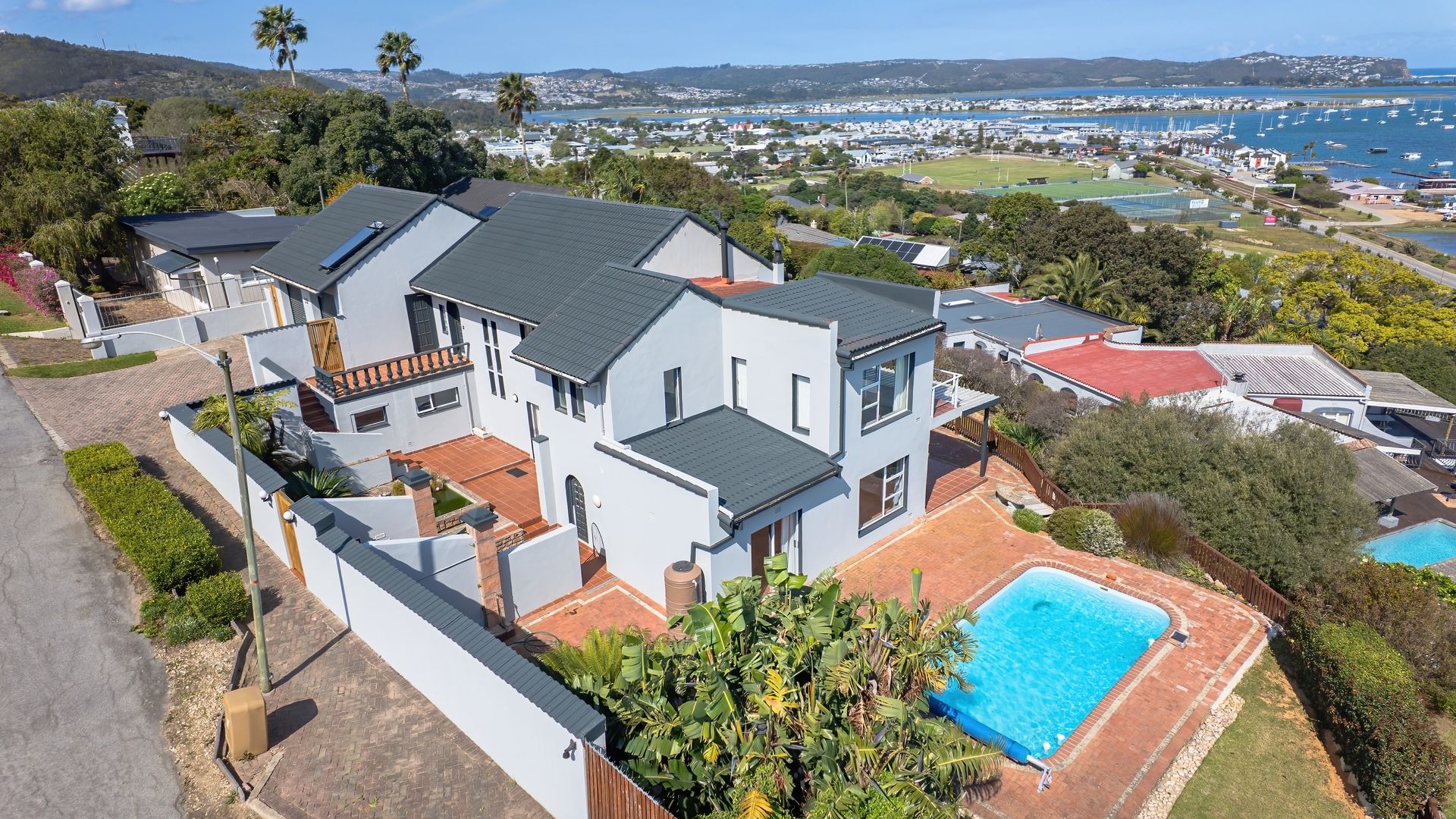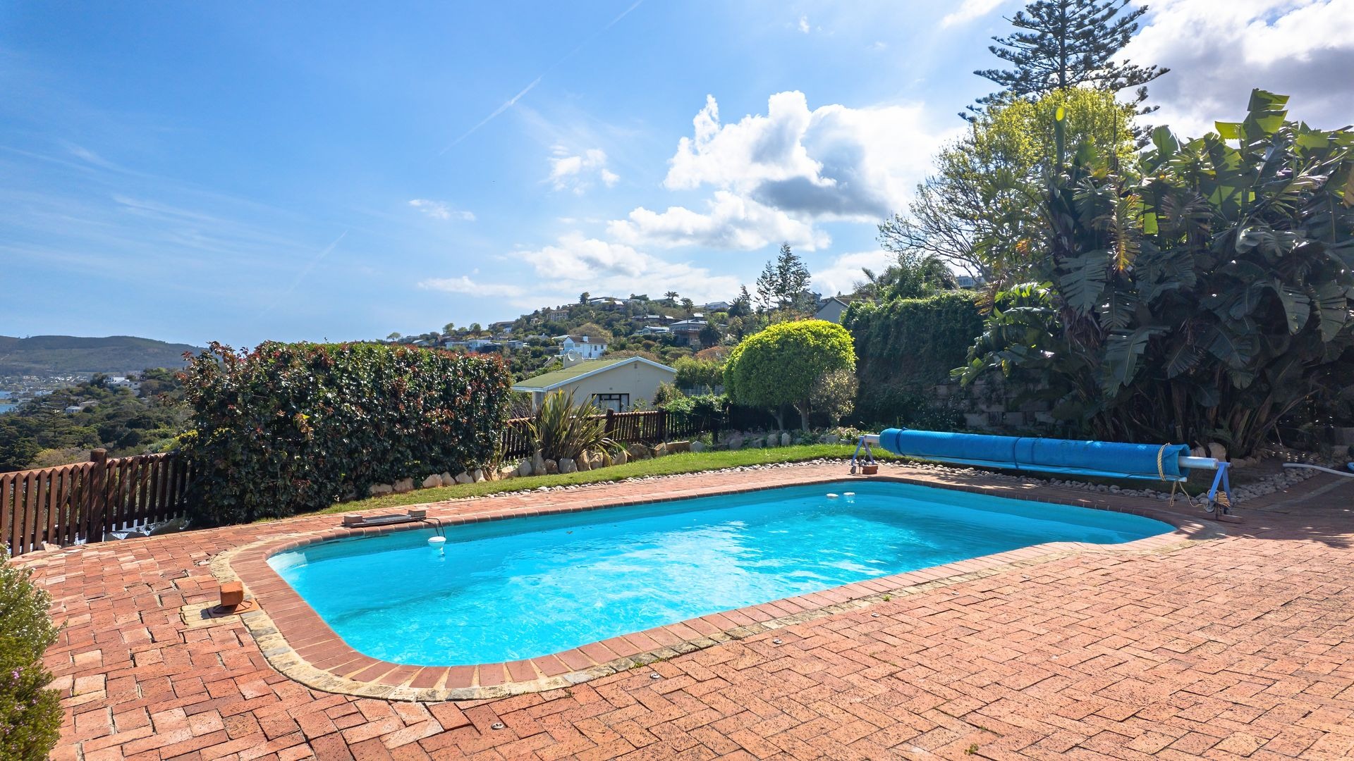 Discover this inviting 3-bedroom, 2-bathroom residence available for rent in the picturesque suburb of Paradise, Knysna. This home offers a well-designed layout featuring a spacious kitchen, a dedicated dining room, and two comfortable lounges, complemented by an additional family/TV room for versatile living. An entrance hall welcomes you, leading to an open-plan living area enhanced by sliding doors. Practical amenities include a separate laundry room and ample storage space. The property also boasts a dedicated study, perfect for remote work. Designed for comfortable living, this unfurnished home is ideal for families or professionals seeking a serene environment. Enjoy outdoor living with a private swimming pool, a well-maintained garden, and a charming patio, balcony, and deck, perfect for relaxation or entertaining. A cozy fireplace adds warmth and ambiance during cooler evenings. Situated in a peaceful cul-de-sac, the property offers enhanced privacy and scenic views, providing a picturesque backdrop to daily life. Security is well-addressed with an installed alarm system, perimeter fencing, and a totally walled property, providing peace of mind. Connectivity is ensured with fibre internet availability, catering to modern digital needs. The inclusion of water tanks demonstrates a commitment to water efficiency, a valuable feature in South Africa. This home combines essential security measures with practical amenities for a convenient lifestyle. Nestled in the sought-after area of Paradise, this Knysna property benefits from its prime location in South Africa's Garden Route. This suburb is renowned for its natural beauty and tranquil atmosphere, offering residents a desirable lifestyle. Key Features: * 3 Bedrooms, 2 Bathrooms (1 en-suite) * 2 Lounges, 1 Dining Room, Family/TV Room * Dedicated Study and Entrance Hall * Private Swimming Pool, Garden, Patio, Balcony, Deck * Scenic Views * Alarm System, Fenced, Totally Walled * Fibre Internet Ready * Double Garage, 2 Additional Parking Spaces * Located in a peaceful cul-de-sac