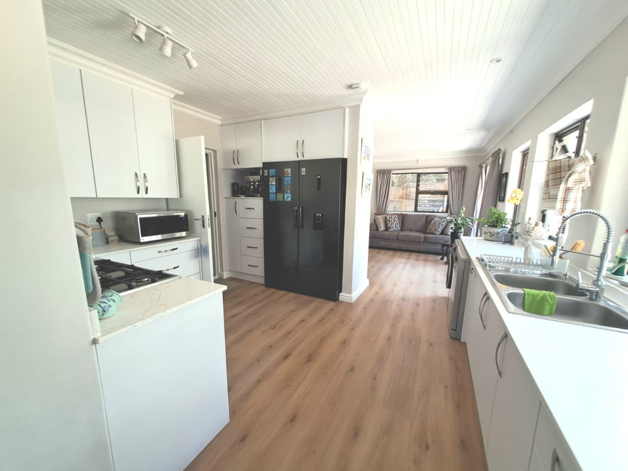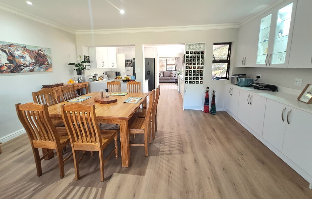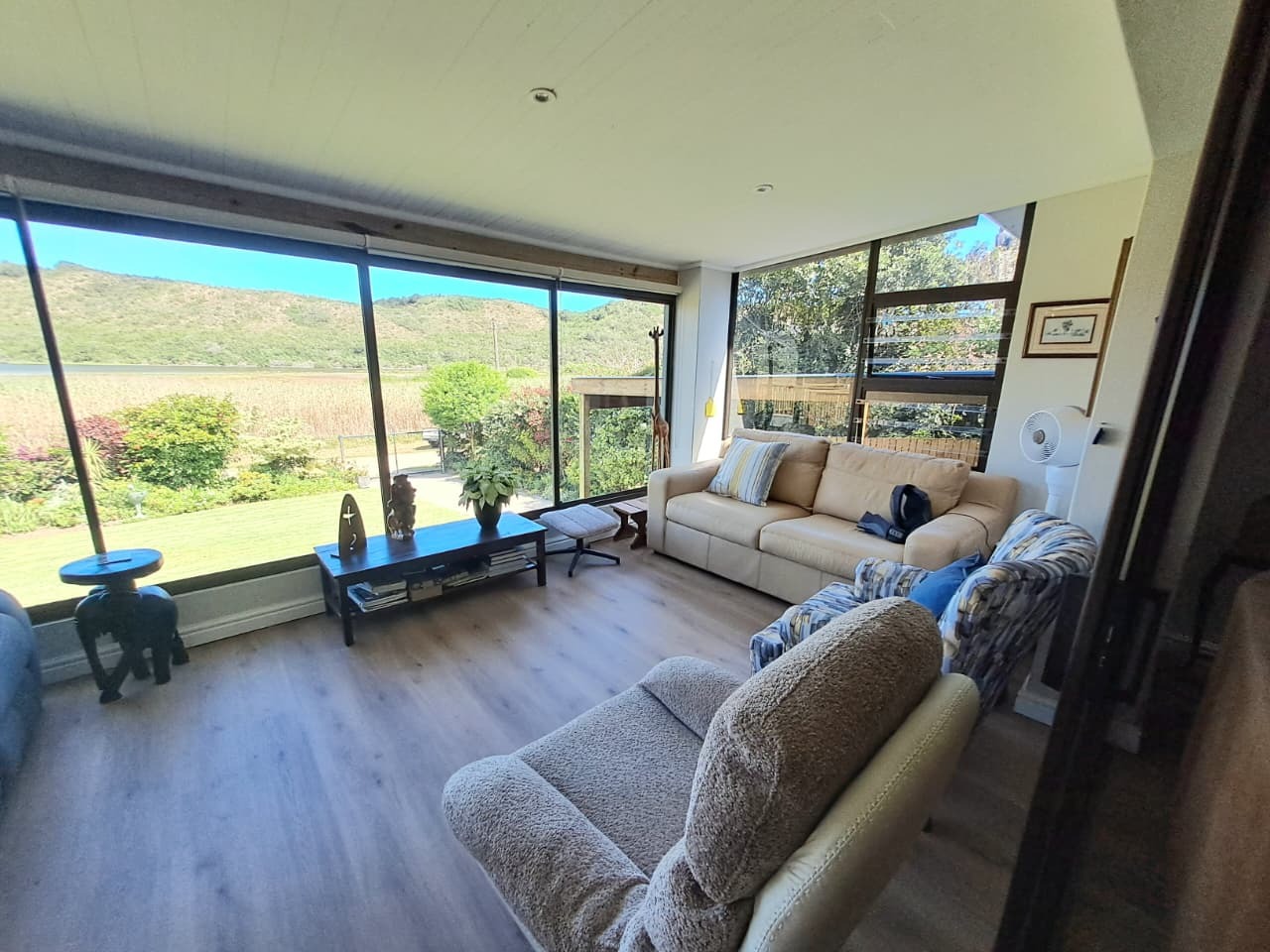 Newly Renovated entirely inside: 4x Bed, 3x Bath House on The Island with wonderful views of The River. Crisp Splash Pool and Outdoor Covered Braai Area with lush Garden Surrounds . This Property has Solar Panellng whereby one is mostly uneffected by Loadshedding. It's homely and spacious living rooms lend to relaxation and comfortability The property is kitted with a large gas hob, fridge freezer and Smart TV. A unique way to experience the surrounding Nature, Tourist Attractions and the local Amenities on foot. This Island Estuary extends itself to wonderful walks with the chirping sounds of birds, swimming estuary beaches, and happy family outings at the Sedgefield Markets and Restaurants nearby. Use of a Double Kayak and Kiddies Bicycles x2. Bring your own fishy rods if this is what you enjoy.