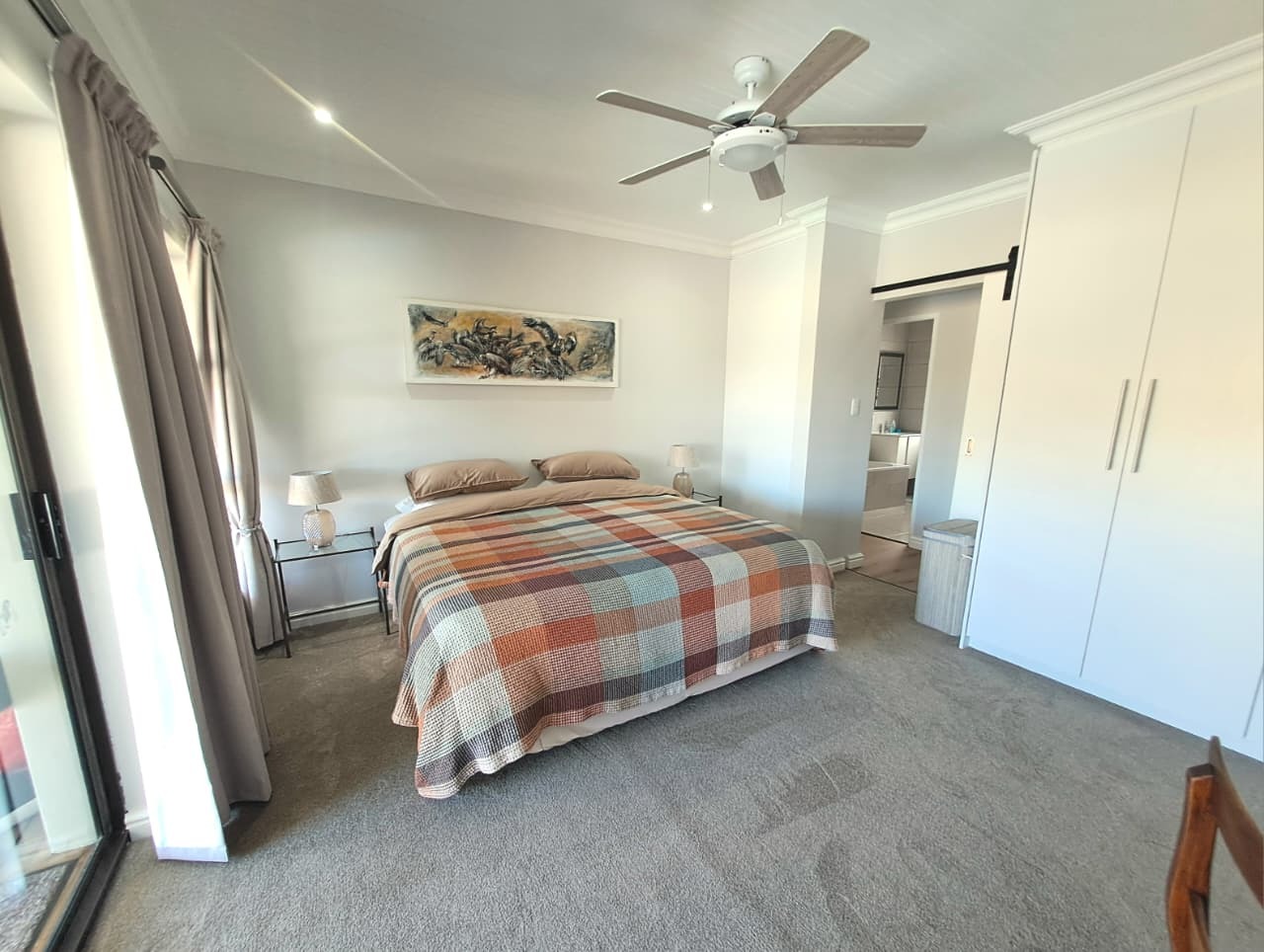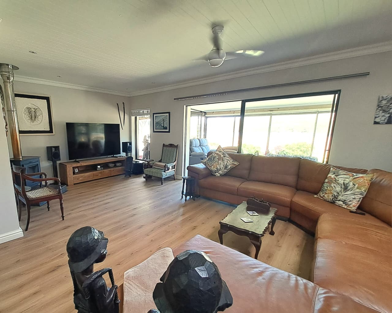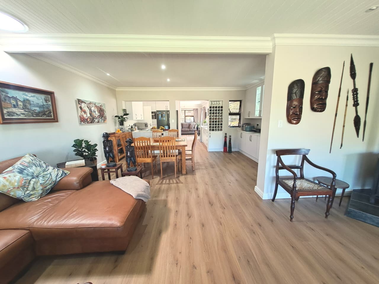 Newly Renovated entirely inside: 4x Bed, 3x Bath House on The Island with wonderful views of The River. Crisp Splash Pool and Outdoor Covered Braai Area with lush Garden Surrounds . This Property has Solar Panellng whereby one is mostly uneffected by Loadshedding. It's homely and spacious living rooms lend to relaxation and comfortability The property is kitted with a large gas hob, fridge freezer and Smart TV. A unique way to experience the surrounding Nature, Tourist Attractions and the local Amenities on foot. This Island Estuary extends itself to wonderful walks with the chirping sounds of birds, swimming estuary beaches, and happy family outings at the Sedgefield Markets and Restaurants nearby. Use of a Double Kayak and Kiddies Bicycles x2. Bring your own fishy rods if this is what you enjoy.