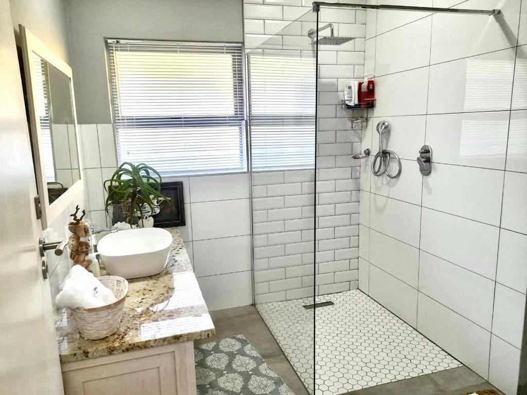 Accommodation comprises four generously sized bedrooms, ensuring comfort for family and guests. Three bathrooms are available, with two of these being convenient ensuites, offering privacy and ease. The property also includes staff quarters providing versatile options for extended family, staff, or potential rental income. The main bedroom upstairs is en suite and comes with a spacious lounge and wooden deck with sea views. Alternatively this area can be used as a guest bedroom with spacious lounge for guests.