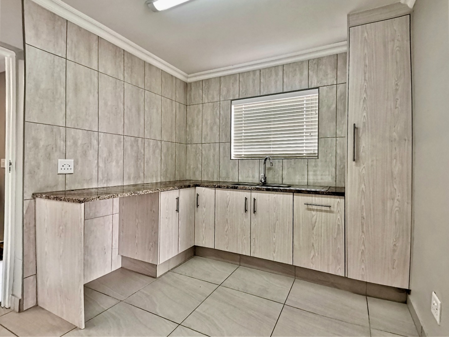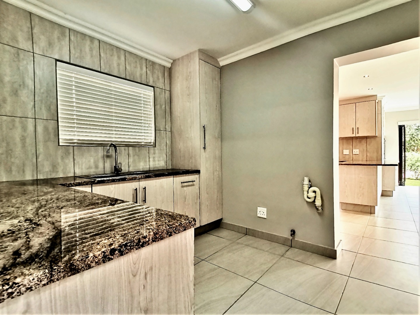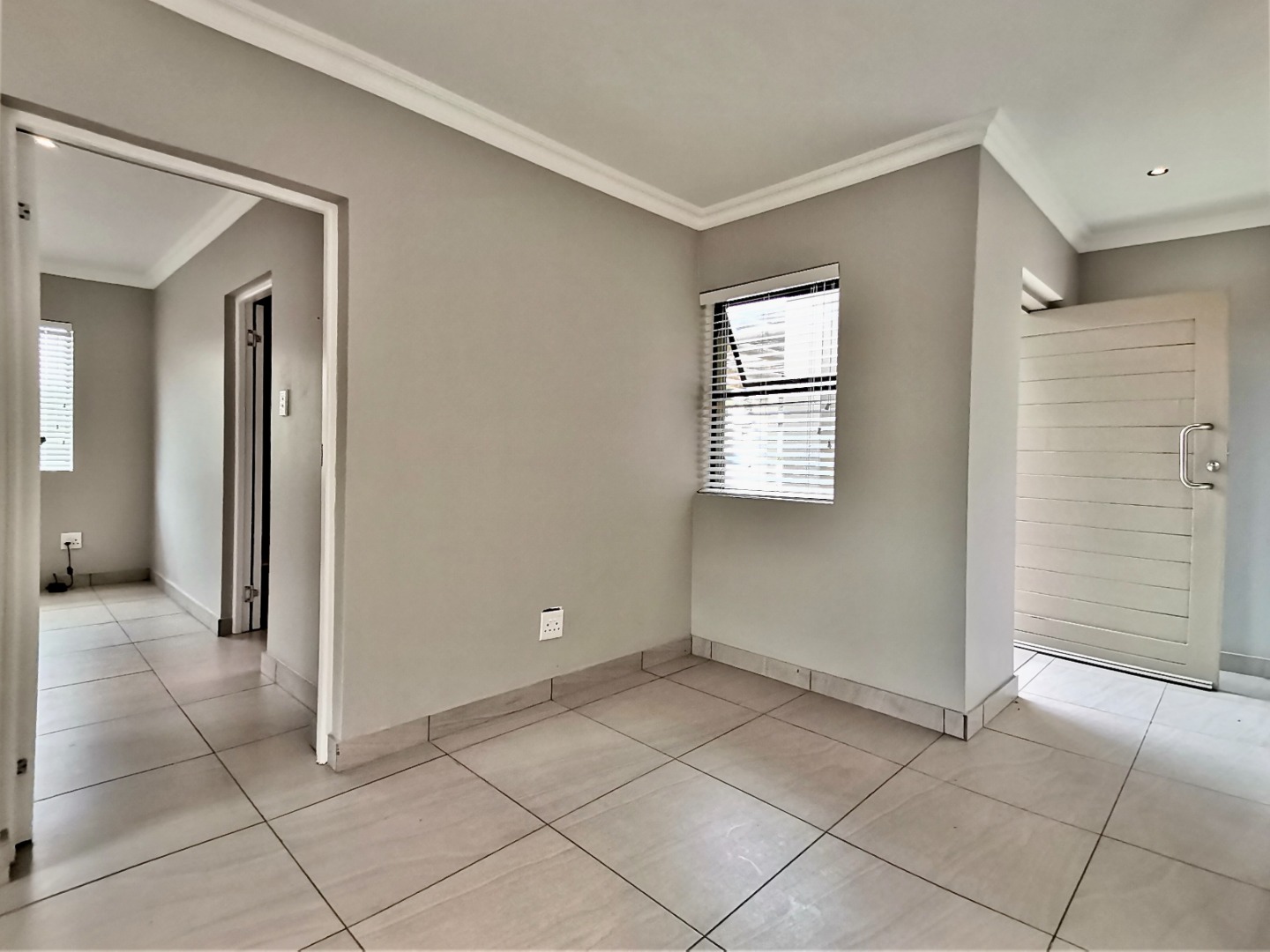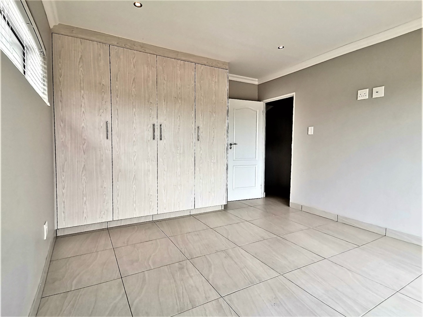 Inside, an expansive 231 sqm of thoughtfully designed living space awaits, characterised by an open-plan layout, light grey walls, and elegant coloured tiled flooring throughout. Recessed lighting and crown molding add a contemporary touch.