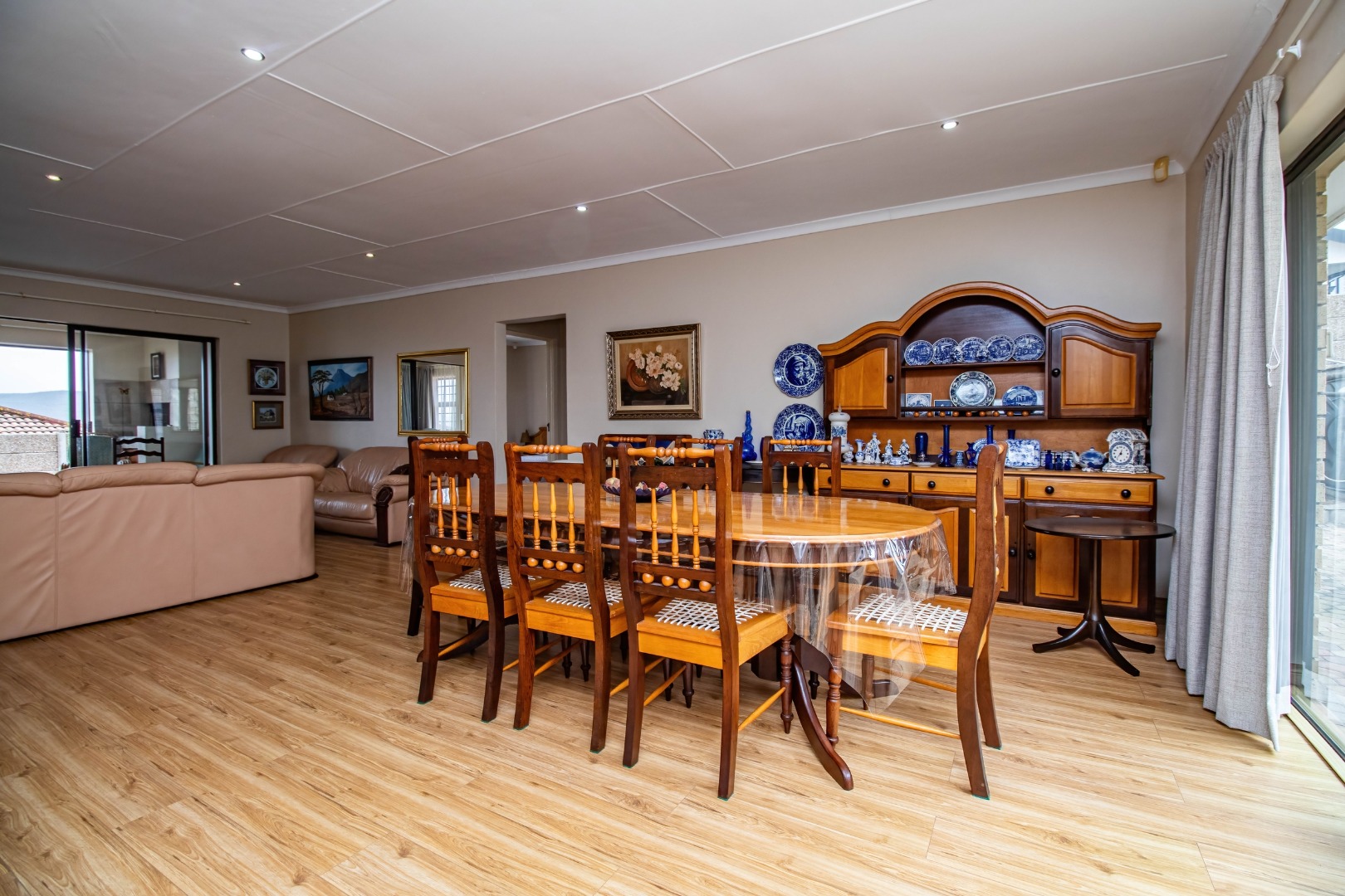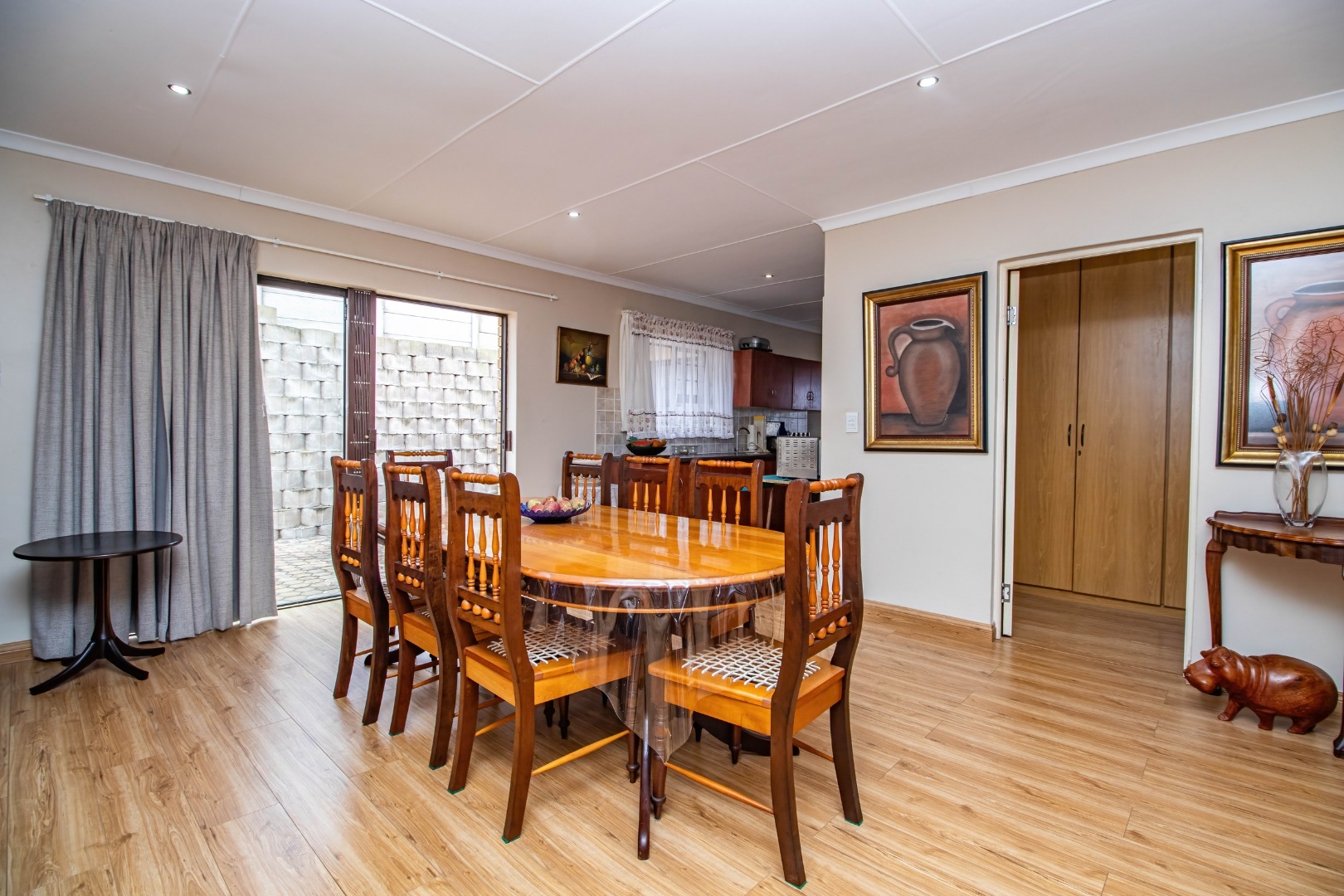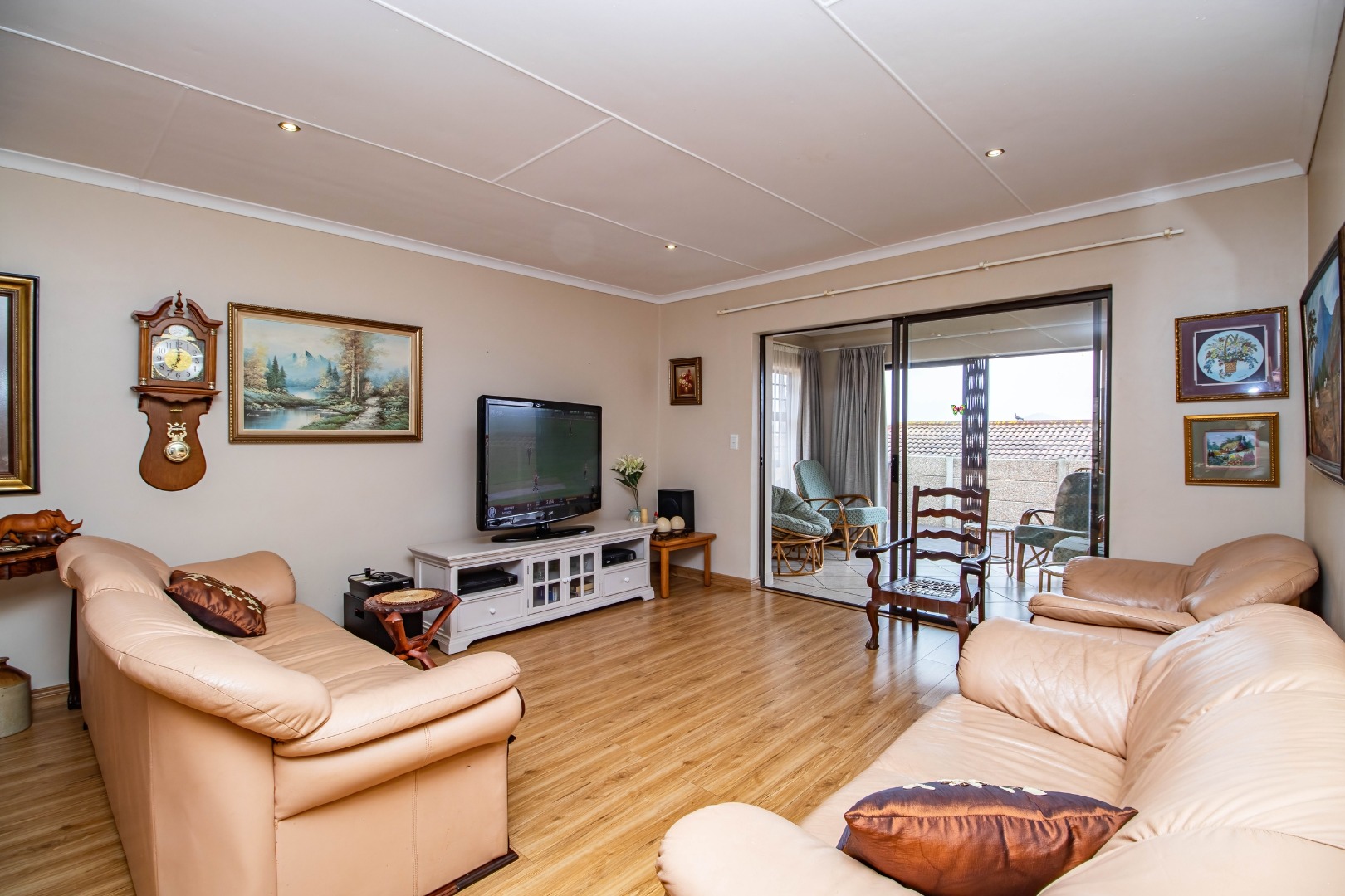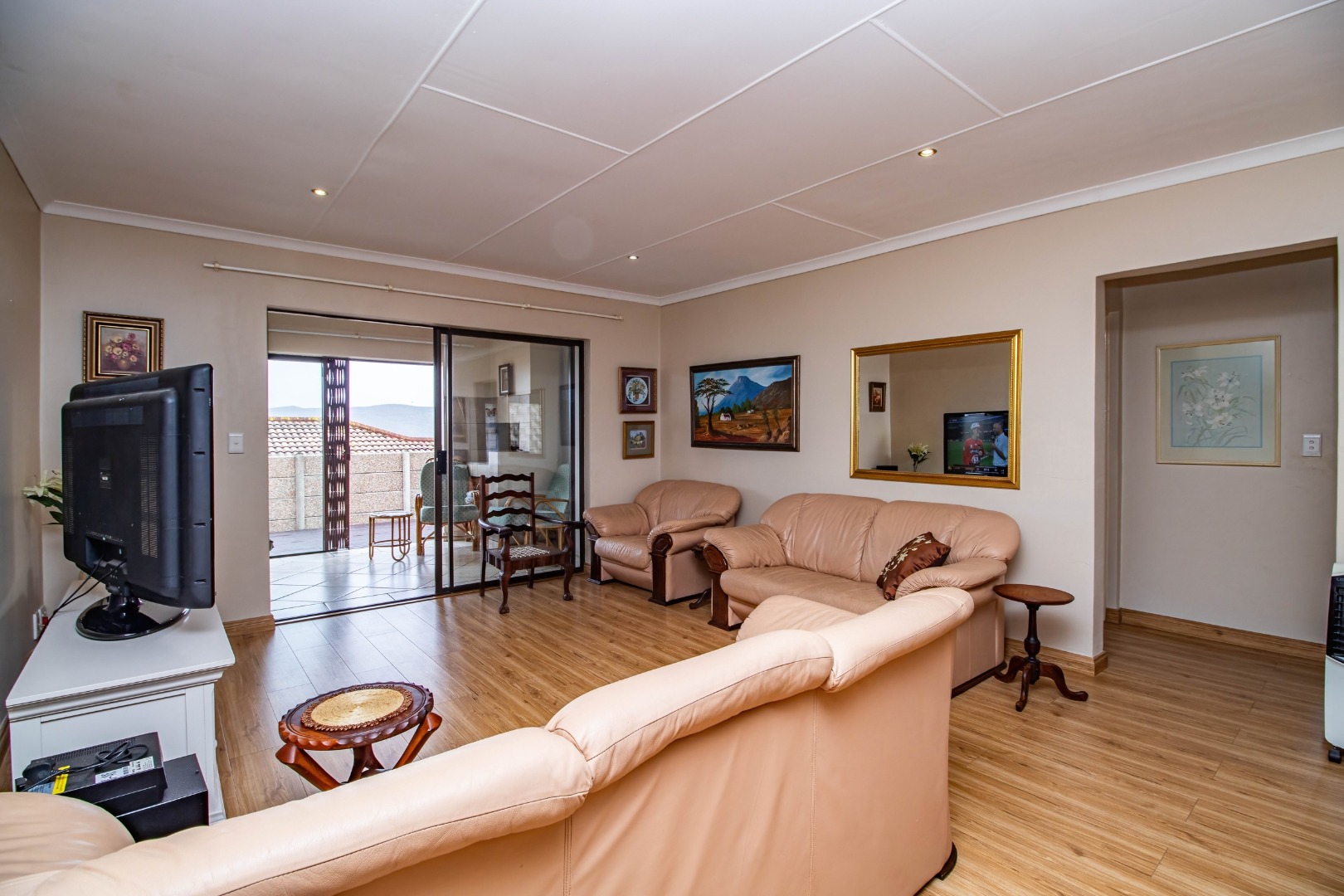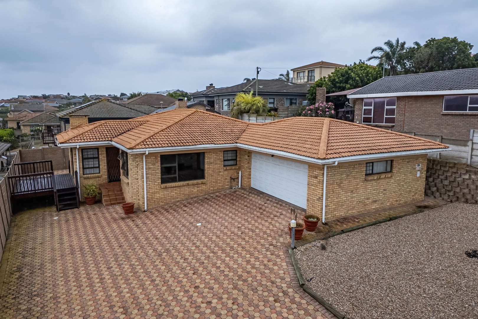 Fraaiuitsig, nestled in the scenic Klein Brak Rivier, offers a desirable suburban lifestyle with coastal proximity, perfect for those seeking tranquility and convenience. This inviting 230 sqm residence, set on a 604 sqm erf, presents a well-designed interior featuring three comfortable bedrooms and two bathrooms, including one en-suite for added privacy. The home boasts two spacious lounges and a dedicated dining room, providing ample space for relaxation and entertaining. A functional kitchen caters to daily needs, while the open-plan layout enhances the flow between living areas. Modern touches include wood-look laminate flooring and recessed ceiling lighting, creating a welcoming atmosphere throughout. Sliding glass doors seamlessly connect the indoor living spaces to the outdoor areas, inviting natural light and fresh air. Step outside to discover a variety of outdoor living options. The property features a paved patio and a wooden deck, ideal for enjoying the South African climate and distant views of the surrounding landscape. A built-in braai room offers a perfect setting for outdoor entertaining. The low-maintenance exterior is characterized by durable brickwork and a tiled roof, ensuring longevity. Practical amenities include a dedicated laundry area and additional storage space. Security is well-addressed with an access gate, security gates, and burglar bars visible, providing peace of mind. The property benefits from a large paved driveway leading to a double garage, offering secure parking for two vehicles. Fibre connectivity is available, ensuring high-speed internet access for modern living. The property is totally walled, enhancing privacy and security. Key Features: * 3 Bedrooms, 2 Bathrooms (1 En-suite) * 2 Lounges, 1 Dining Room, 1 Kitchen * Double Garage & Paved Driveway * Outdoor Deck & Patio with Built-in Braai * Fibre Ready & Access Gate * Laundry & Storage Facilities * Coastal & Suburban Location * Pets Allowed