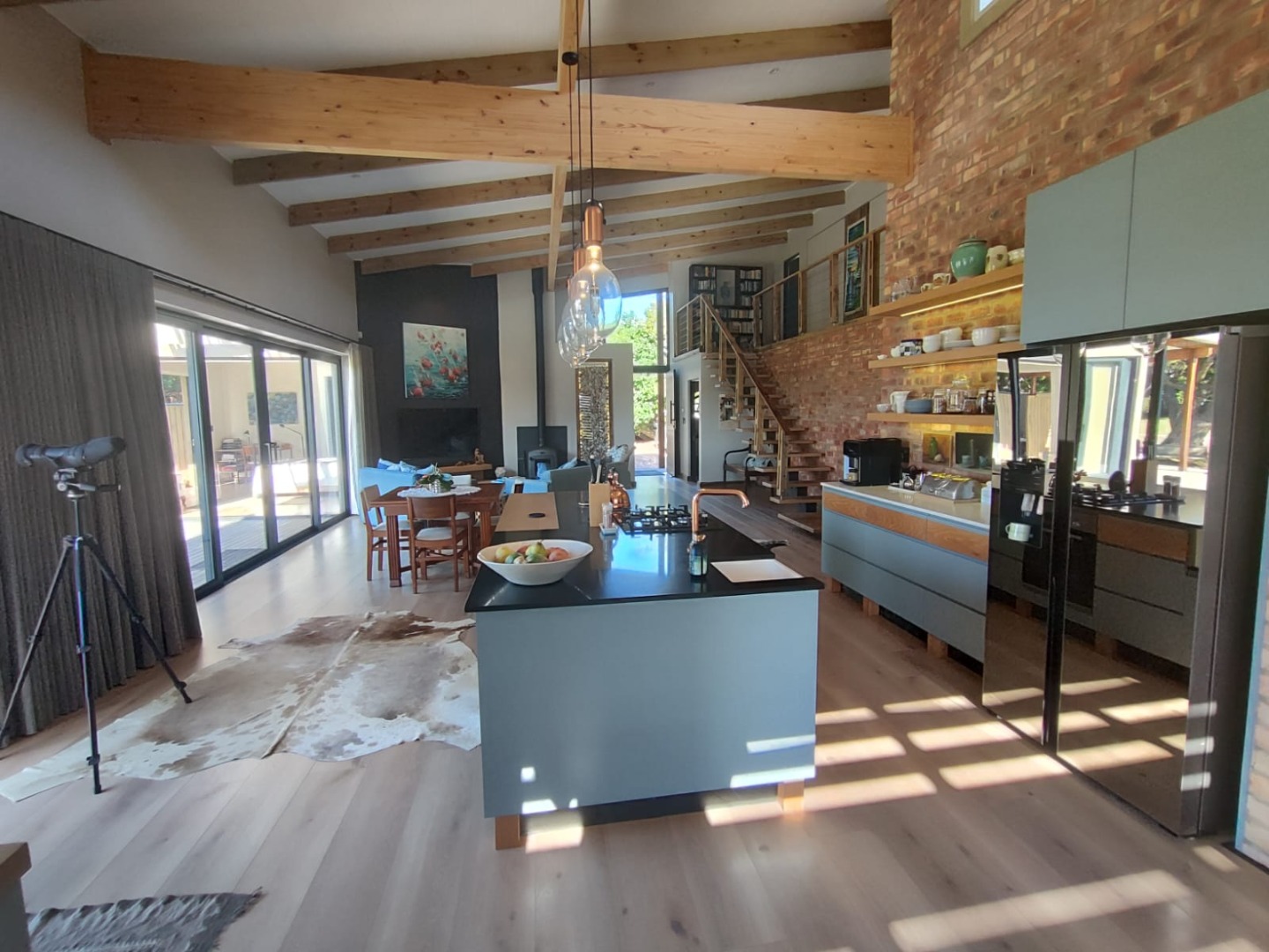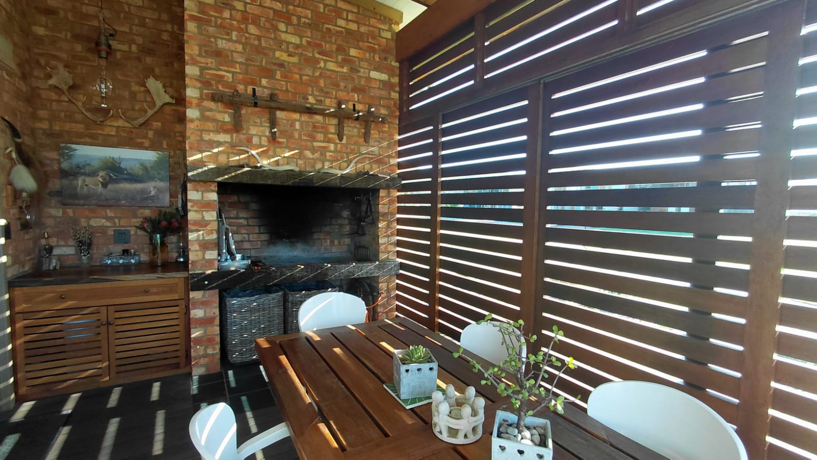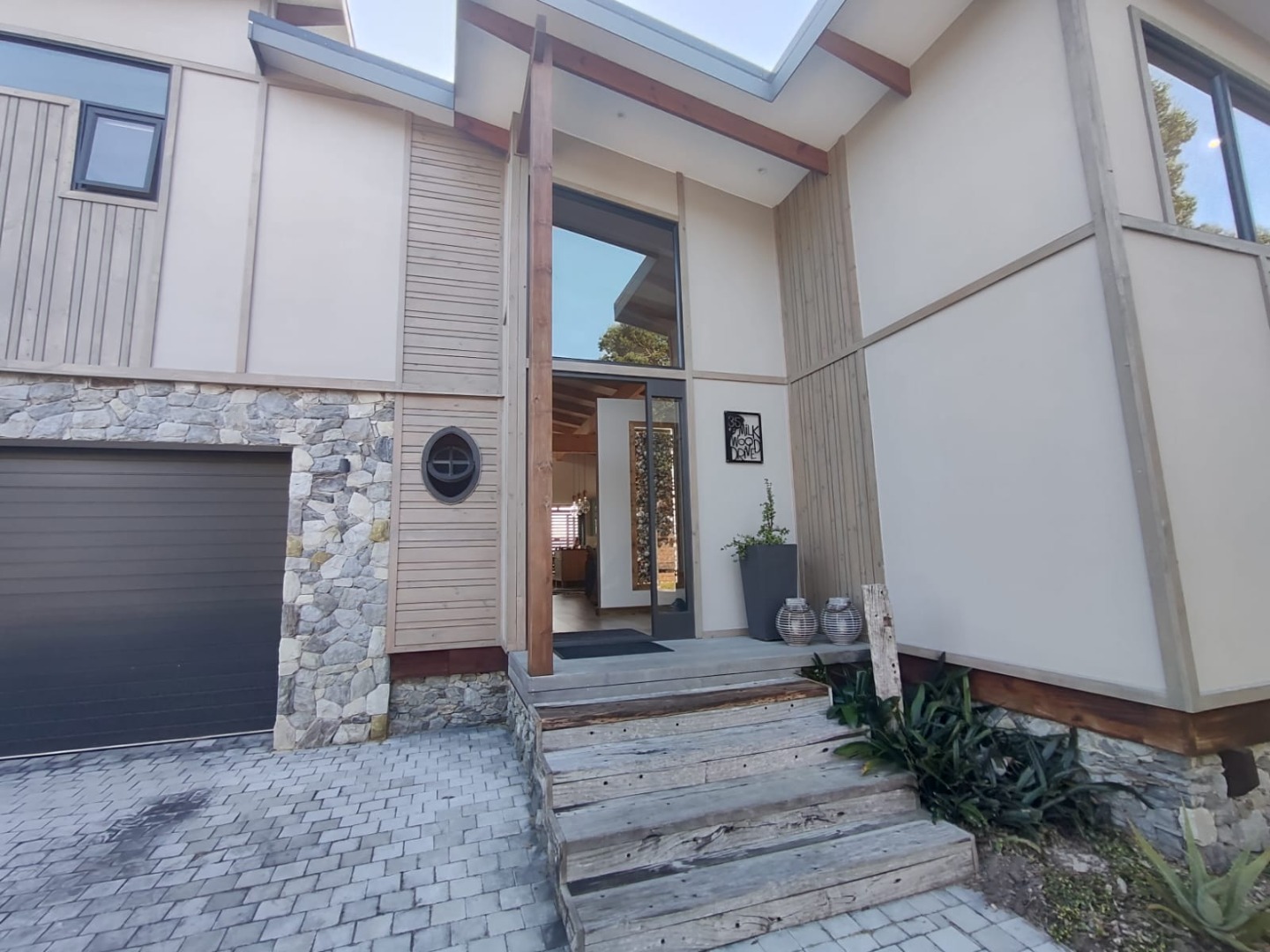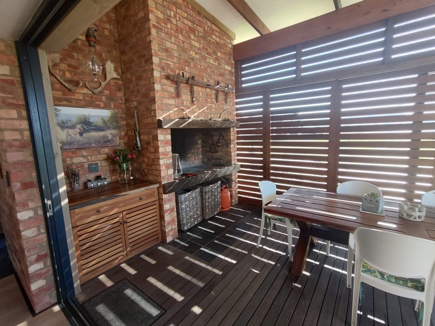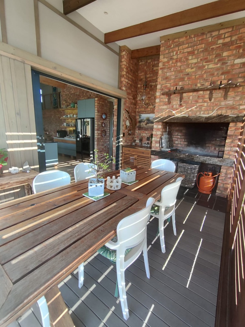 The home features three well-proportioned bedrooms and two and a half bathrooms, including a private ensuite with open aired bath for that touch of special. Designed for comfortable living, the residence includes a a large open plan, dining room, lounge, and Kitchen, adjoining the kitchen is the Braai room designed to entertaining your guests, In addition there is scullery and two garages, extra storage and ample additional parking spaces.