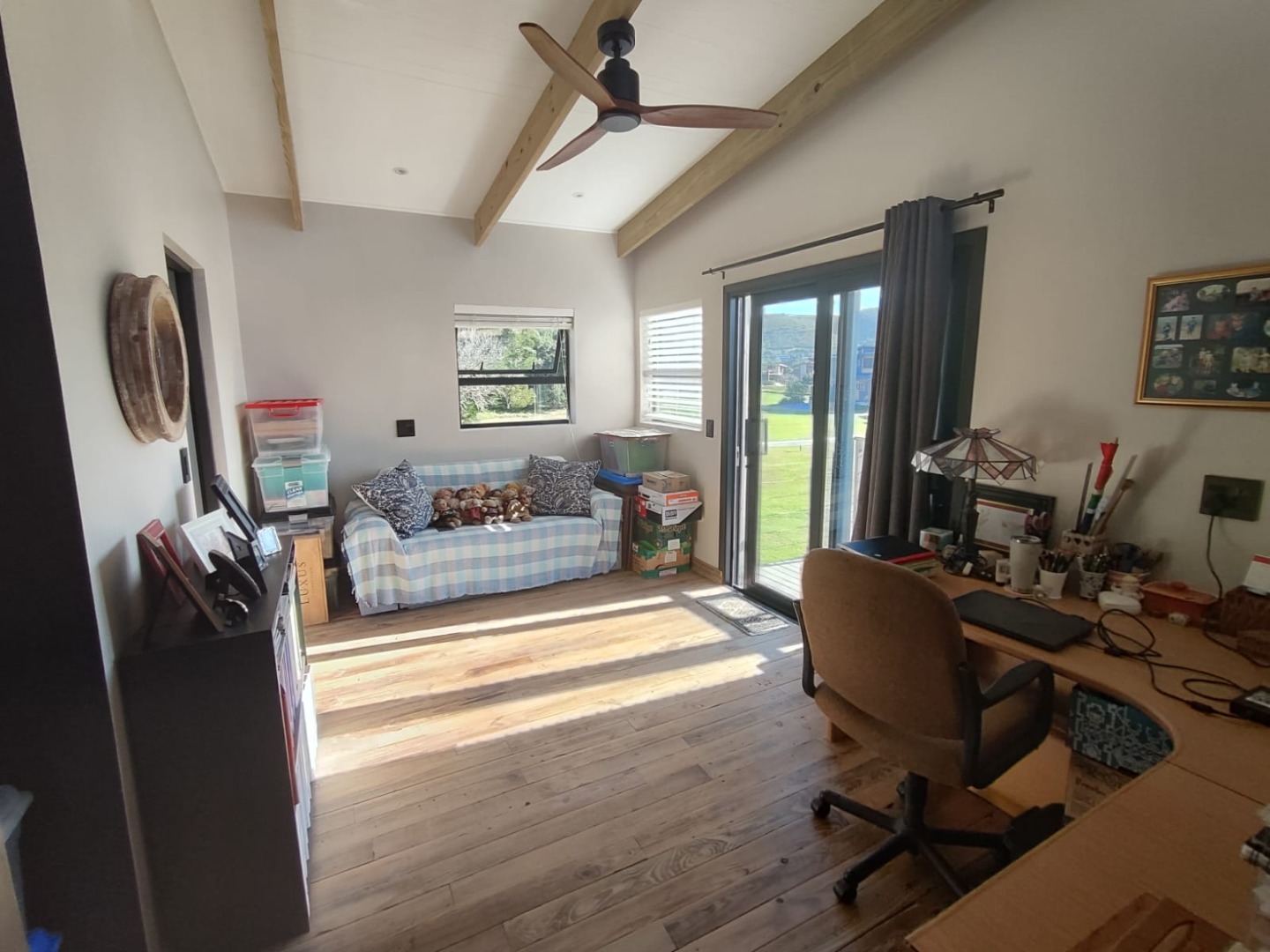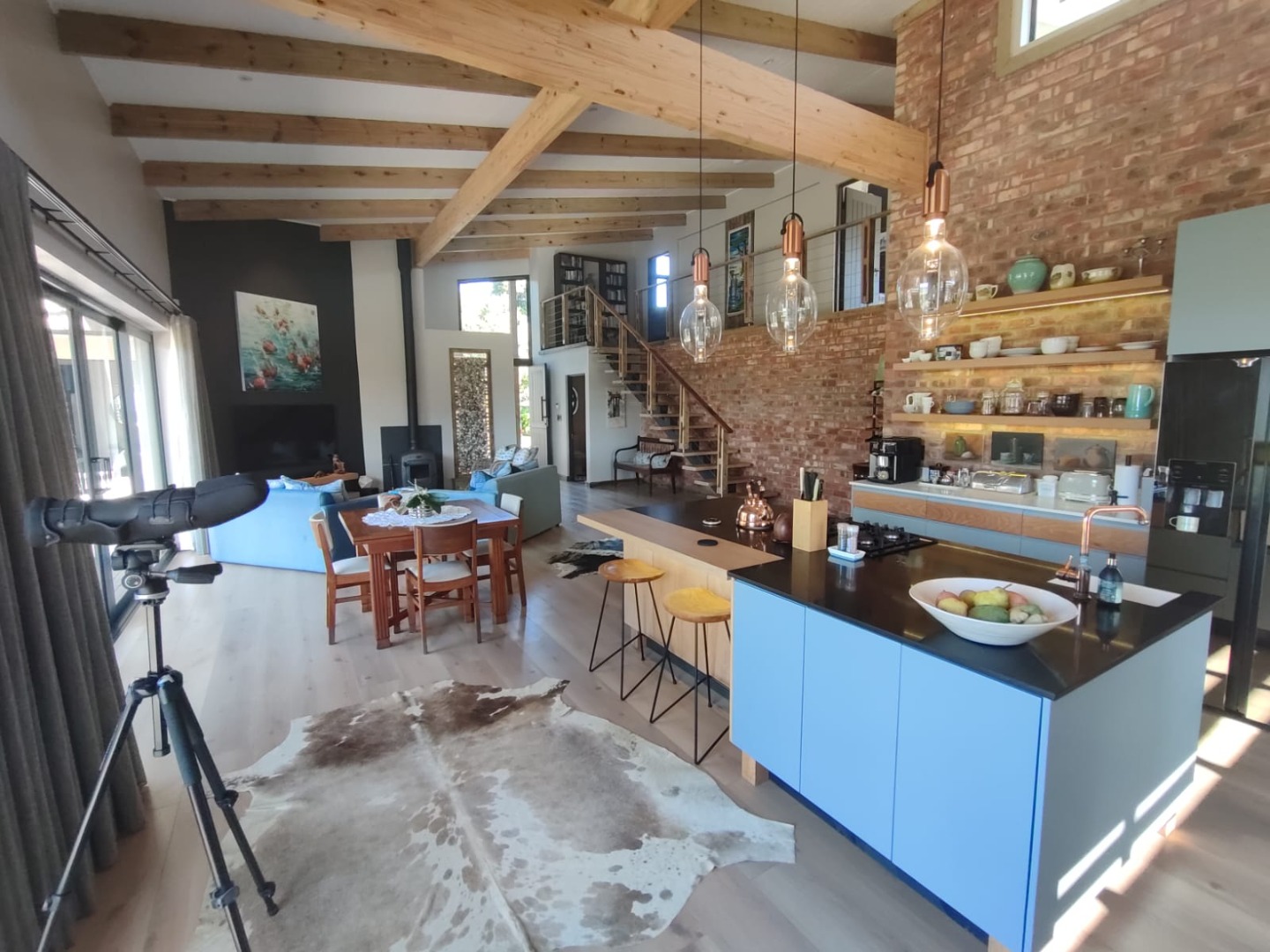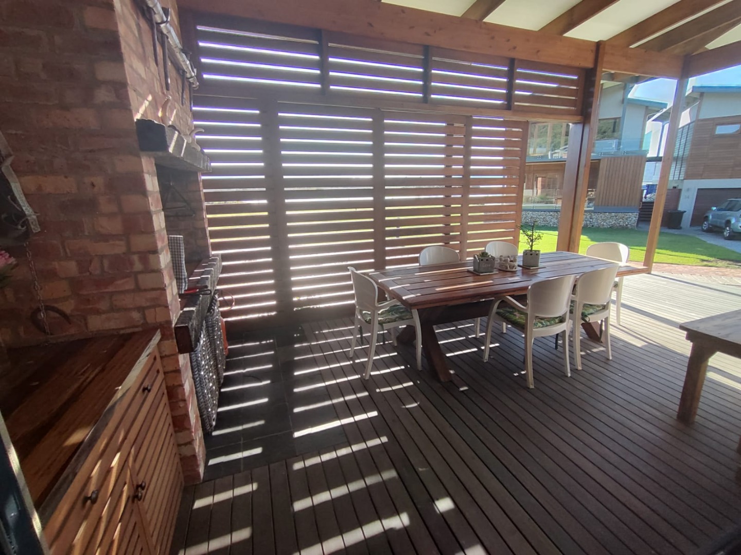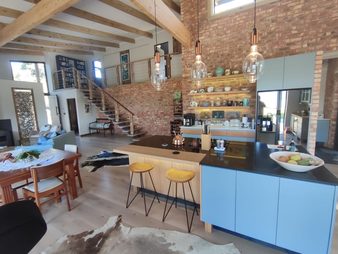 The home features three well-proportioned bedrooms and two and a half bathrooms, including a private ensuite with open aired bath for that touch of special. Designed for comfortable living, the residence includes a a large open plan, dining room, lounge, and Kitchen, adjoining the kitchen is the Braai room designed to entertaining your guests, In addition there is scullery and two garages, extra storage and ample additional parking spaces.