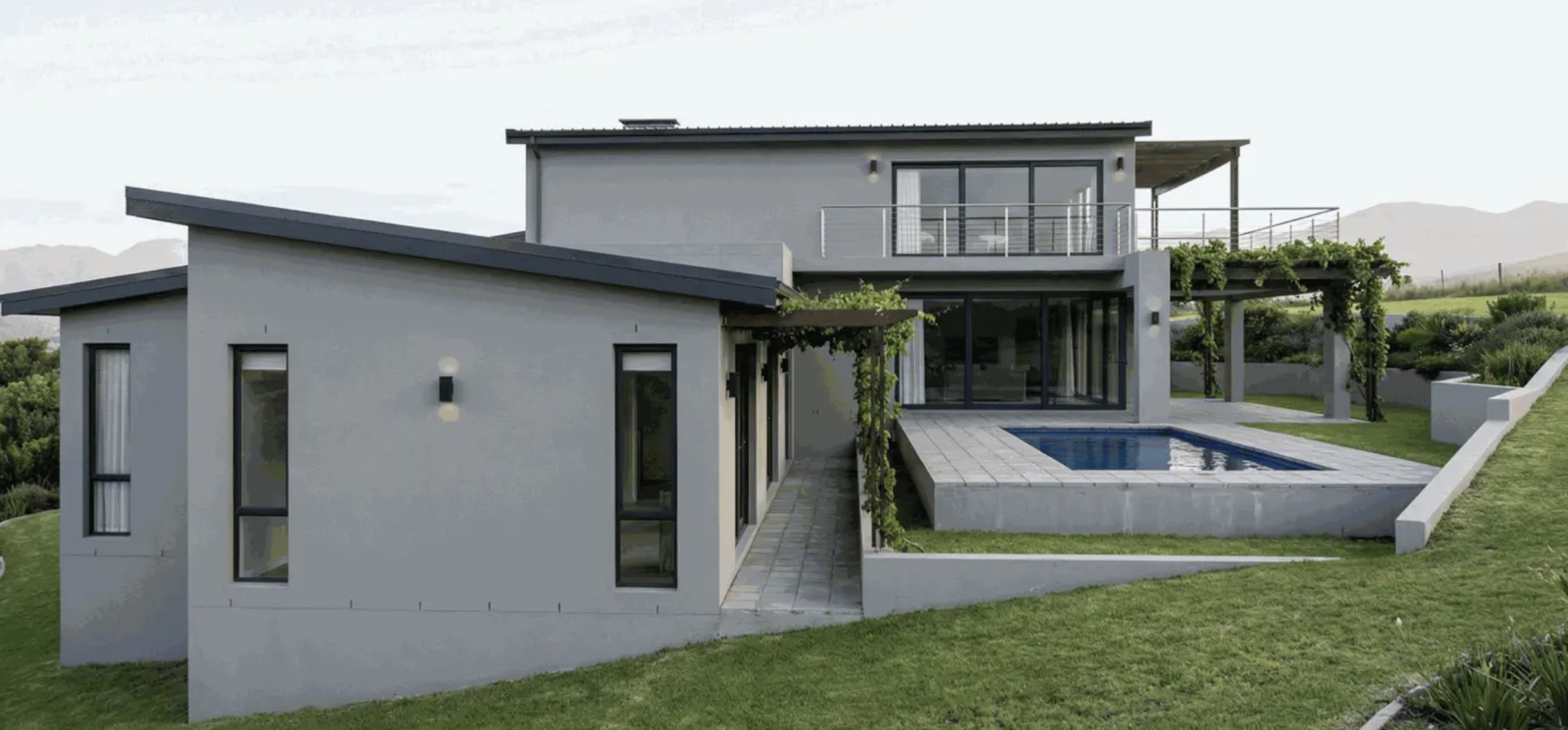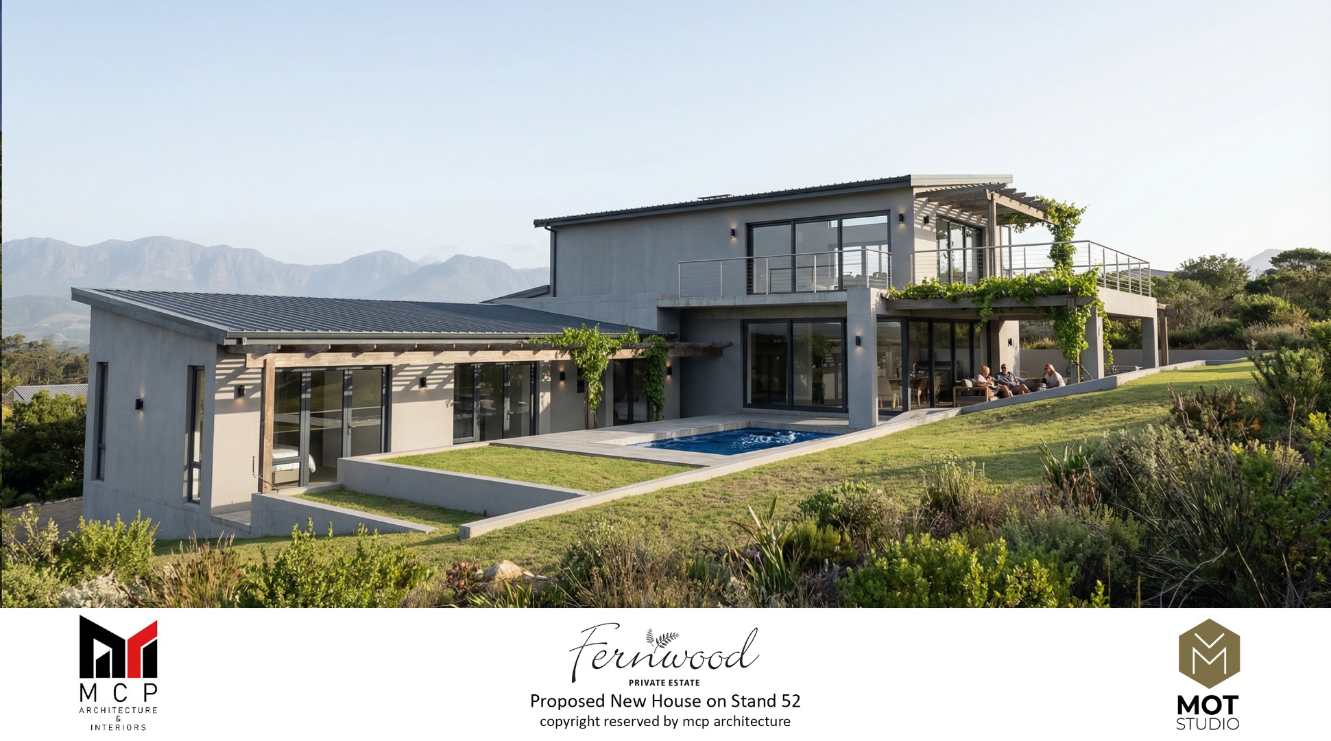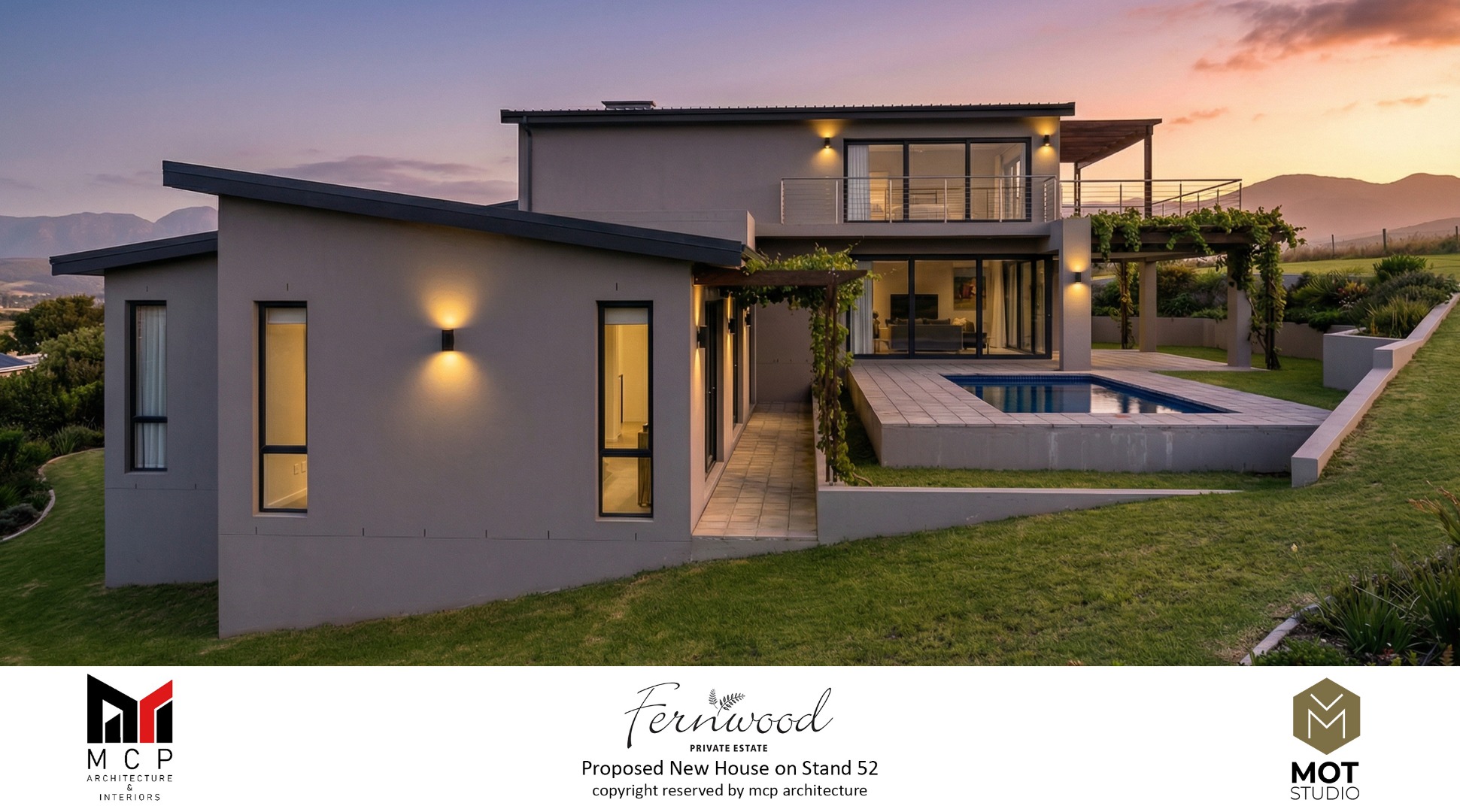 Set within the exclusive Fernwood Estate, this architecturally designed plot-and-plan residence occupies an elevated position that captures uninterrupted views across the lagoon and toward the world-renowned Knysna Heads. Designed to harmonise with its natural surroundings, the home combines contemporary clean lines with organic textures—stone cladding, timber accents, and expansive glazing—creating a refined yet warm coastal aesthetic.