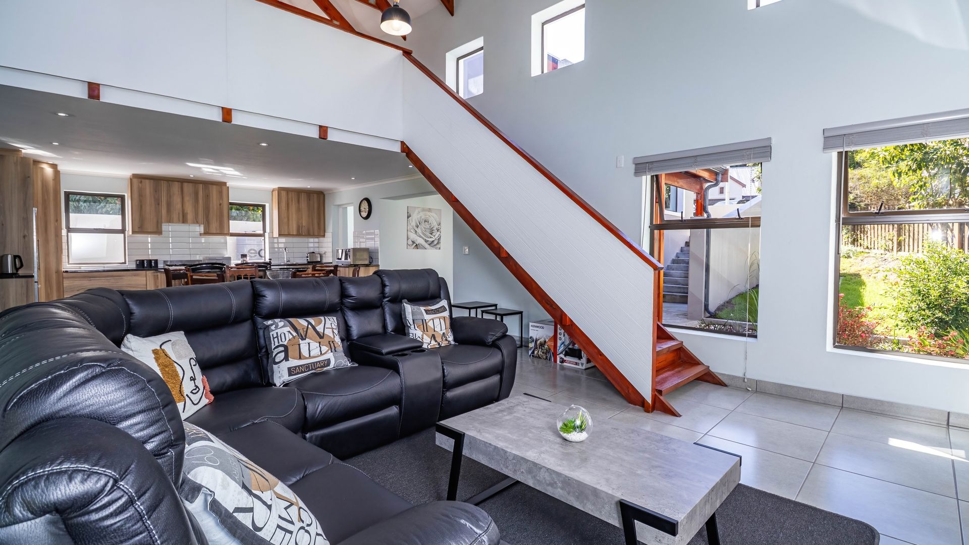 This contemporary residential property, nestled within the desirable Green Pastures estate in Knysna, South Africa, offers an exceptional lifestyle. Enjoy the tranquility of country living with mountain views, cul-de-sac privacy, and easy access to aquatic activities and coastal beaches. This estate provides a secure environment with 24-hour security, ensuring peace of mind for residents.