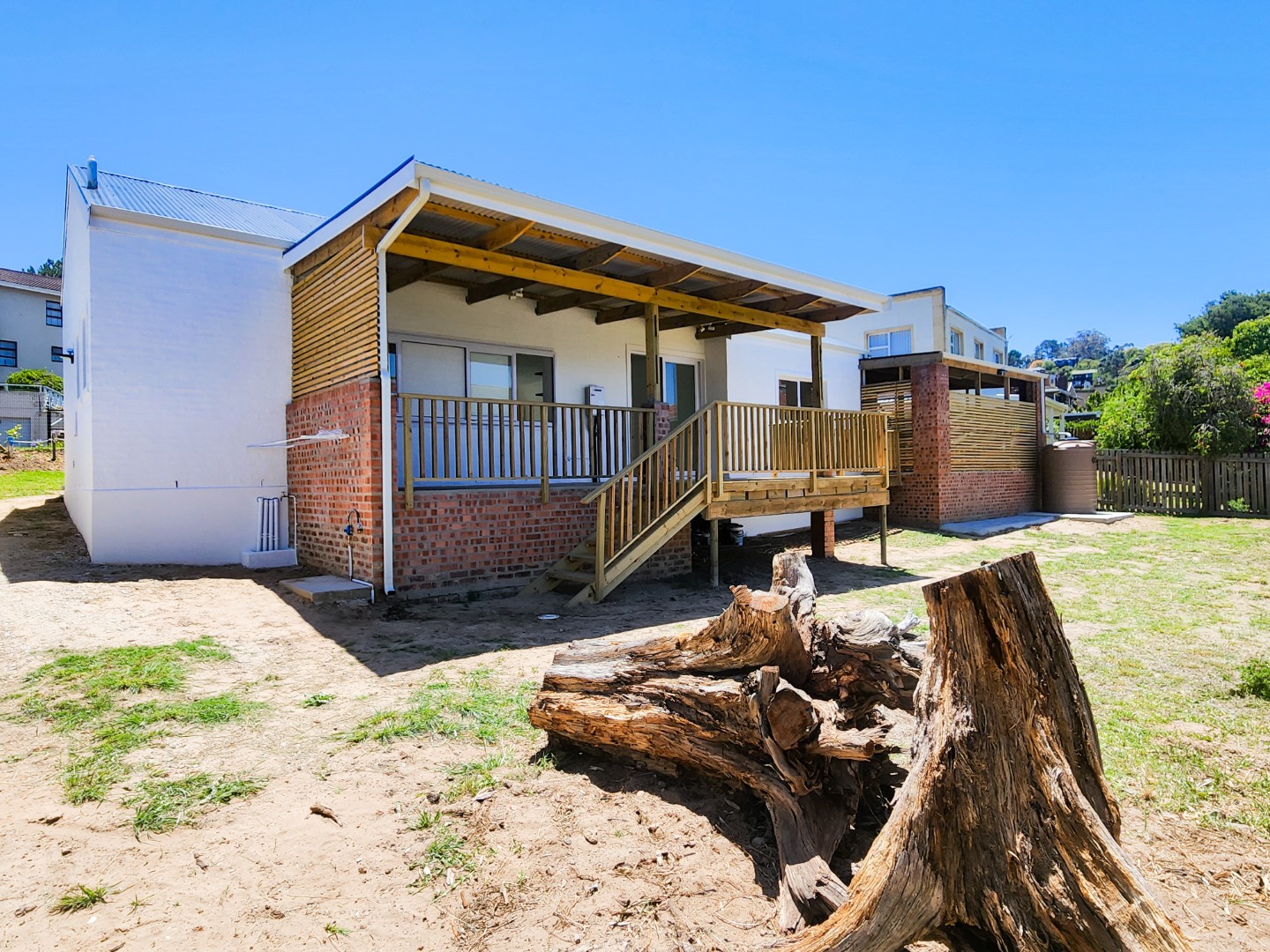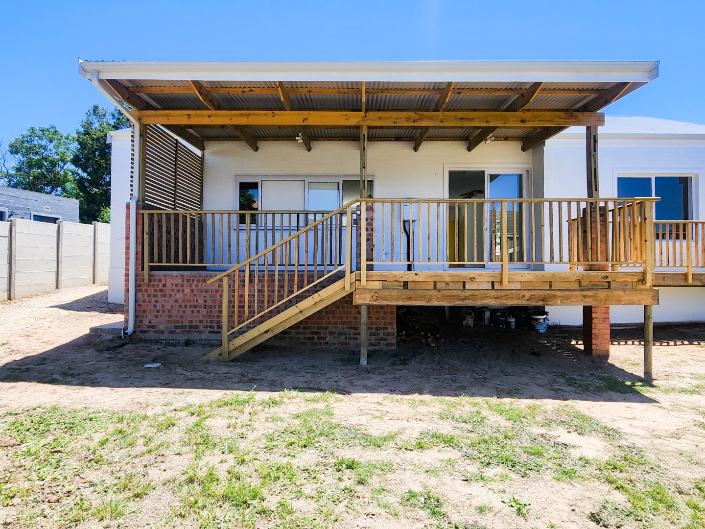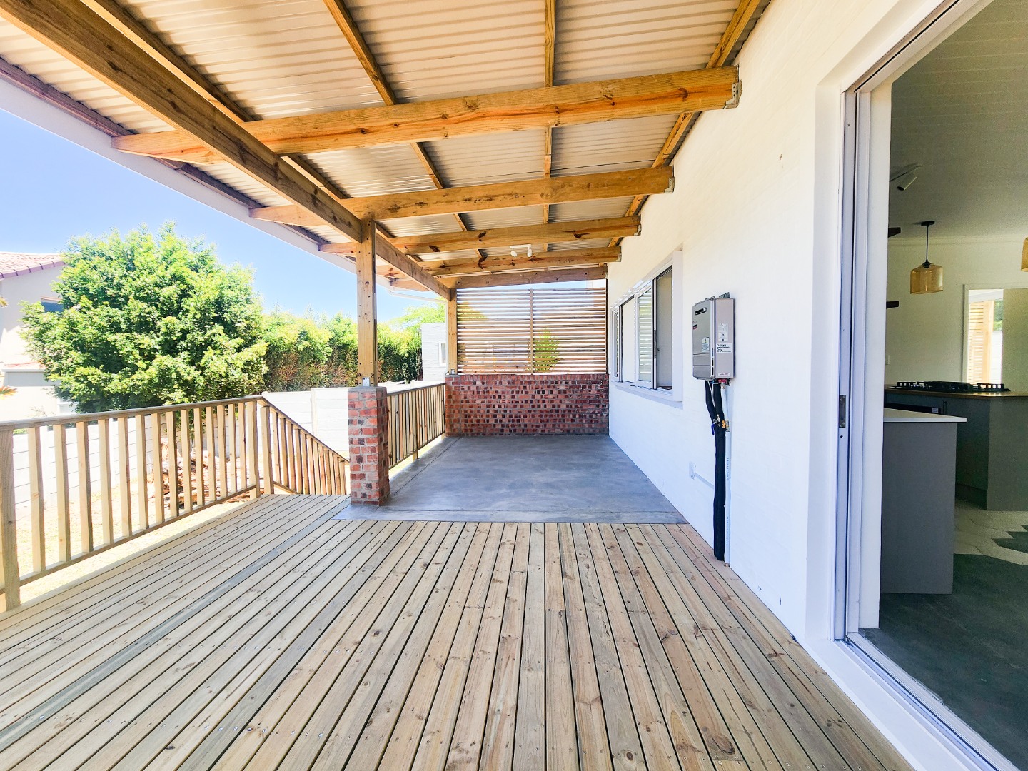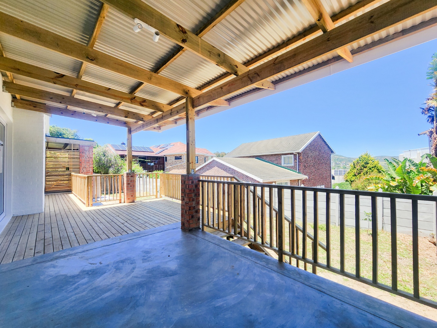 * Covered patio and wooden deck