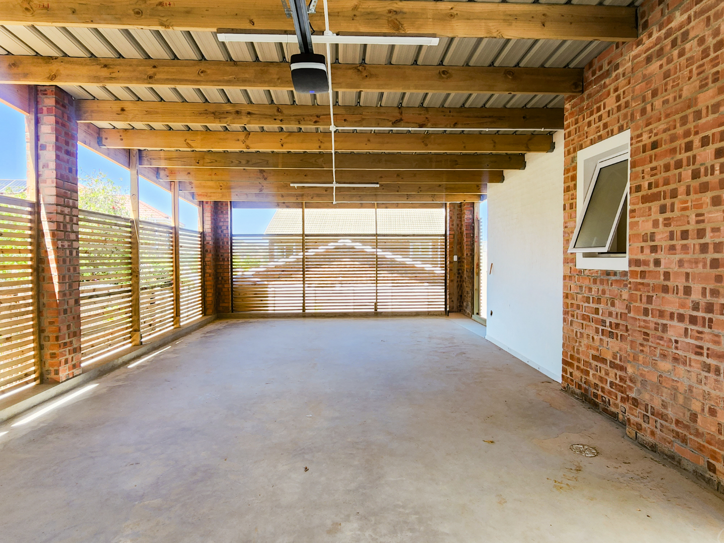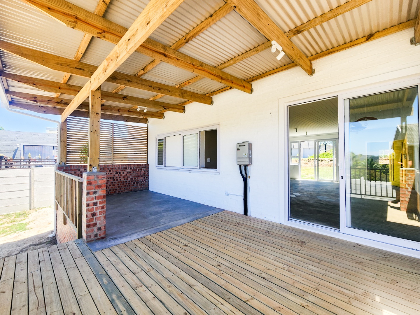 * Covered patio and wooden deck