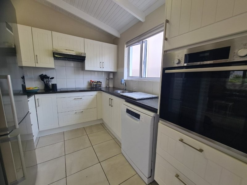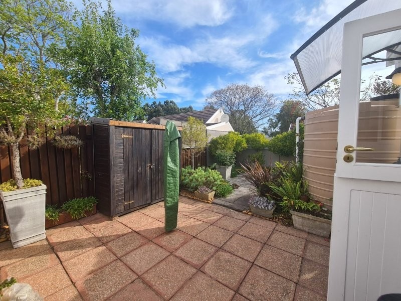 Outdoor living is a pleasure with a spacious covered patio featuring brick flooring, perfect for entertaining or quiet relaxation. Beyond this, a paved outdoor area with an established garden, garden shed, and a large water tank provides additional utility and charm. The property includes a single garage and two additional parking spaces, catering to your vehicle needs. As part of a security estate and retirement village, residents benefit from enhanced safety features such as an access gate, alarm system, and perimeter fence, ensuring peace of mind. Sustainability is addressed with solar panels and a battery inverter, contributing to energy efficiency. This pet-friendly home offers a tranquil coastal living experience in a secure environment.