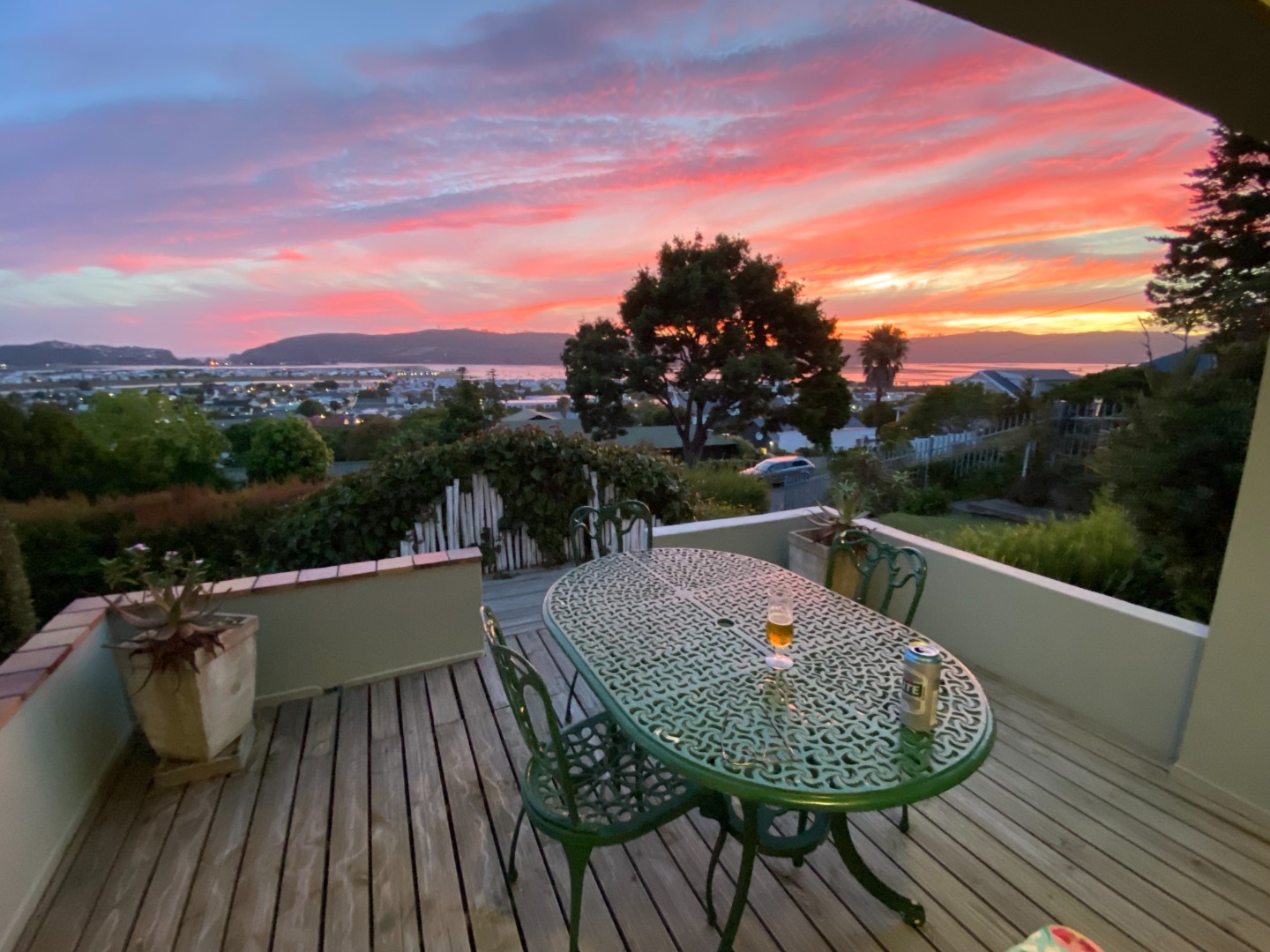 in addition there is a self-contained bedsit flatlet with its open plan layout, with kitchen, bathroom and a large deck to take in the unobstructed view over the town and Lagoon.
