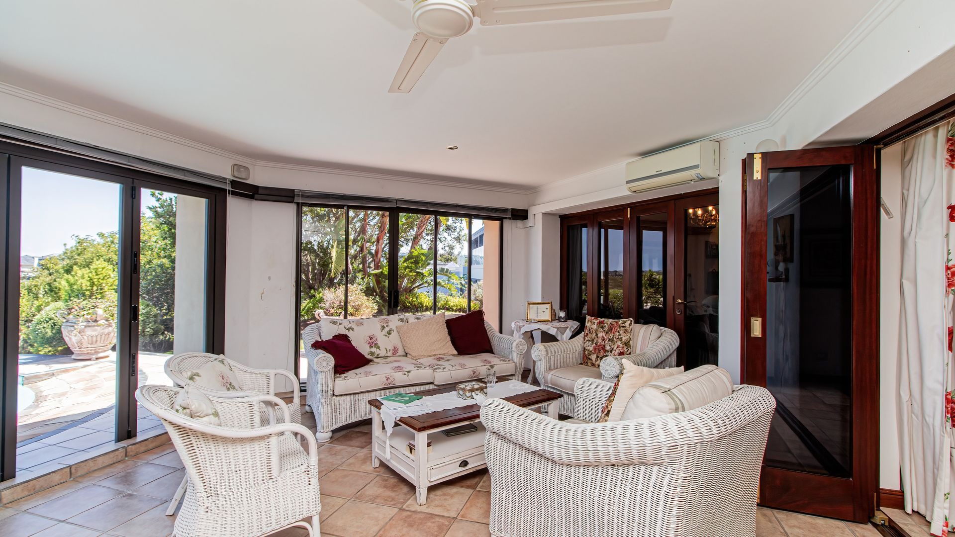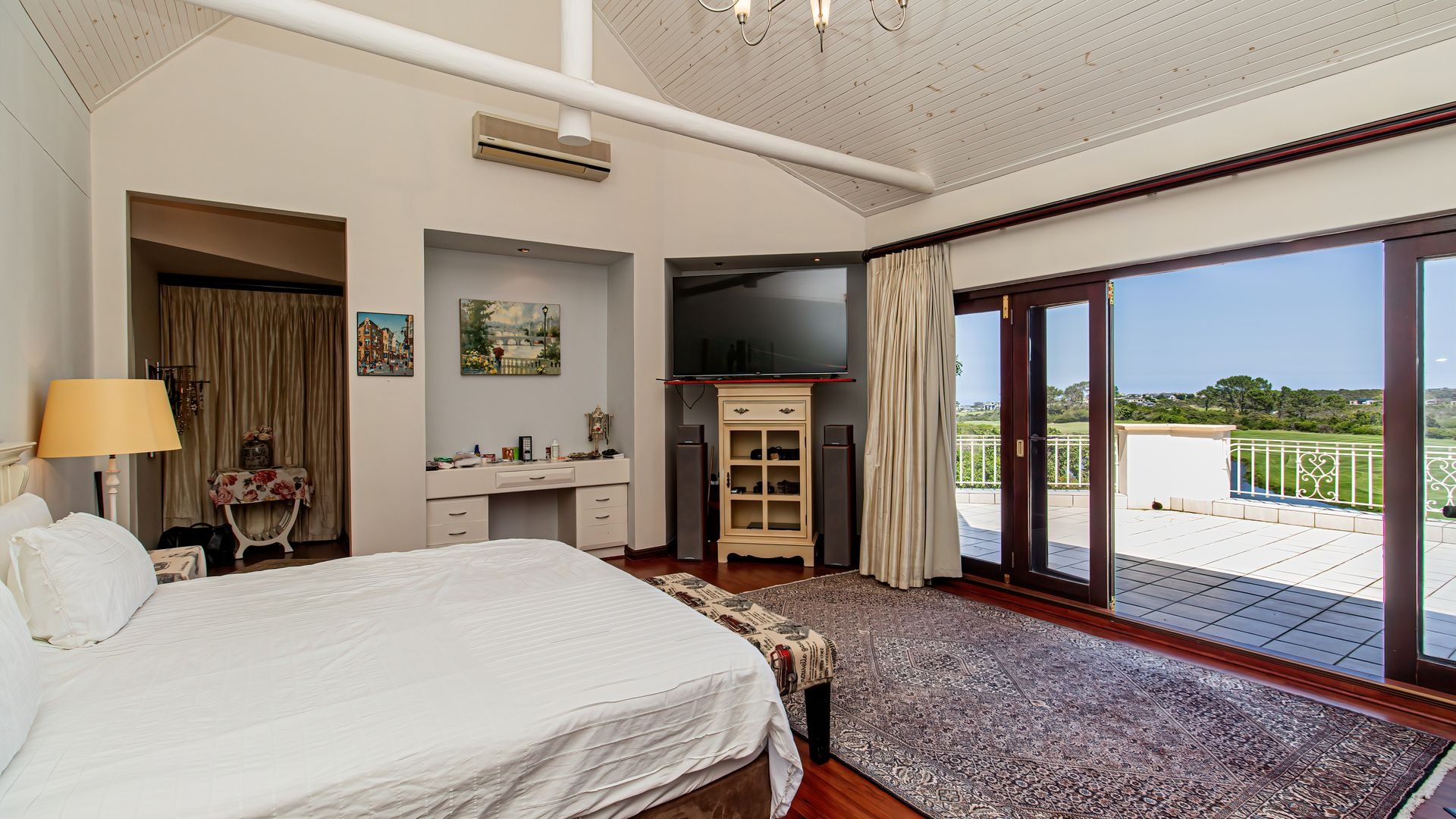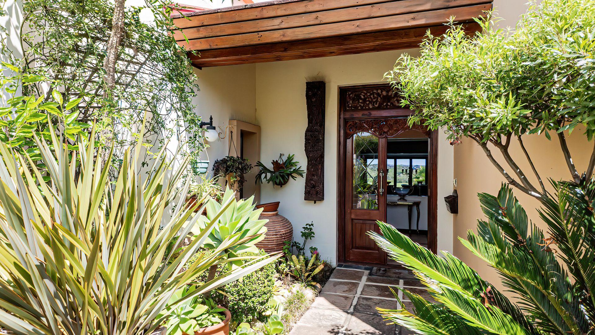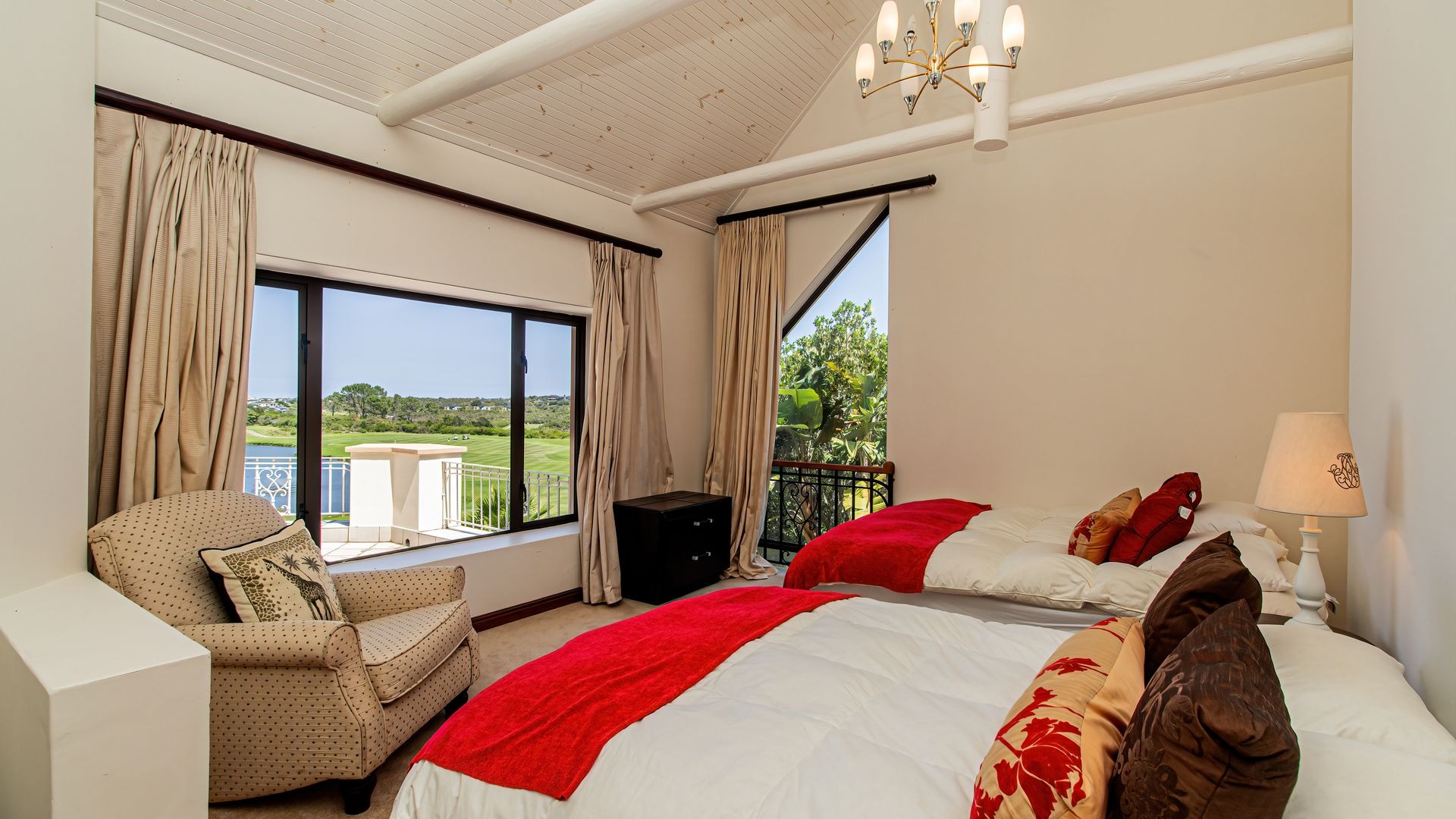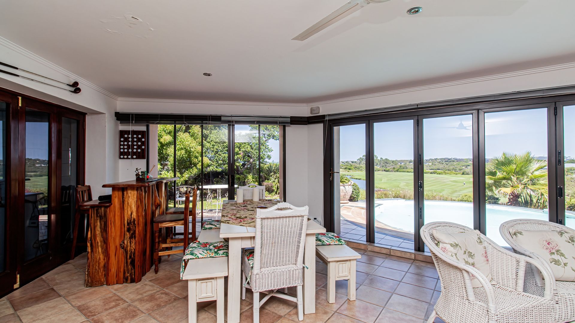Outdoor living is exceptionally catered for with a private, kidney-shaped swimming pool set within an expansive, meticulously landscaped garden on a 962 sqm erf. Multiple balconies and a spacious patio provide ideal settings for al fresco dining and enjoying the breathtaking vistas. Residents benefit from the comprehensive security of this gated community with 24-hour security and access control, complemented by fibre connectivity. This esteemed location offers a unique blend of golf, coastal, and nature reserve lifestyles.