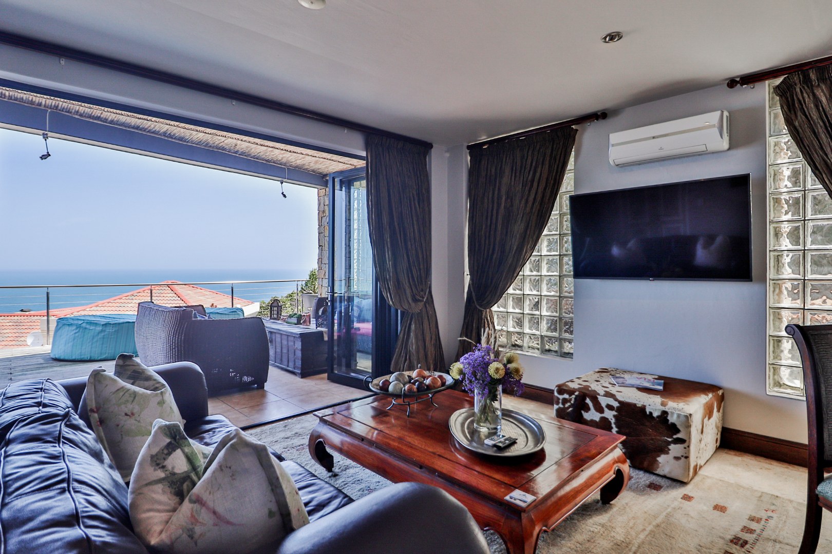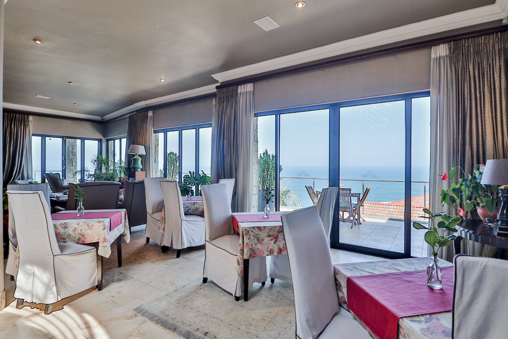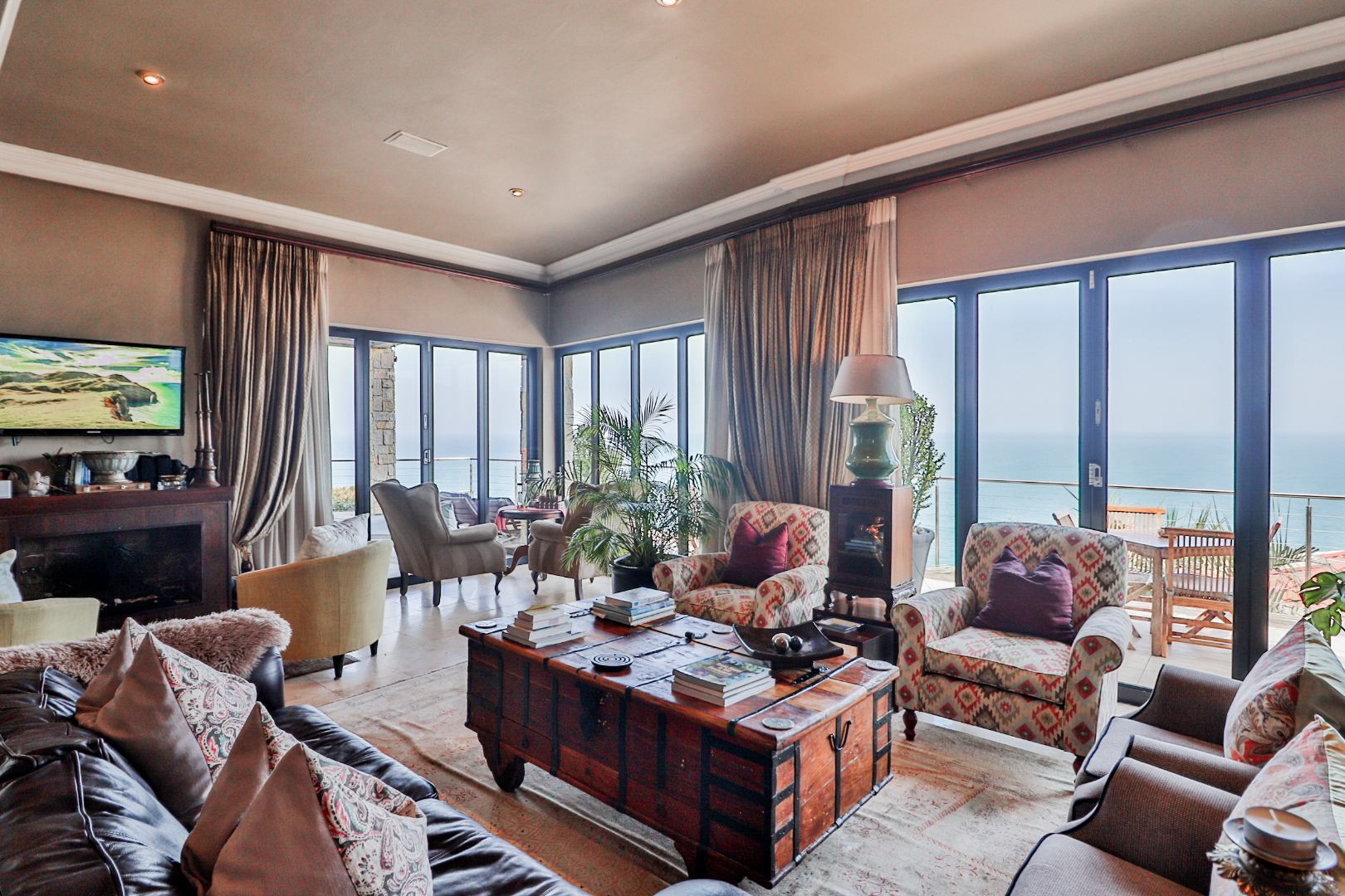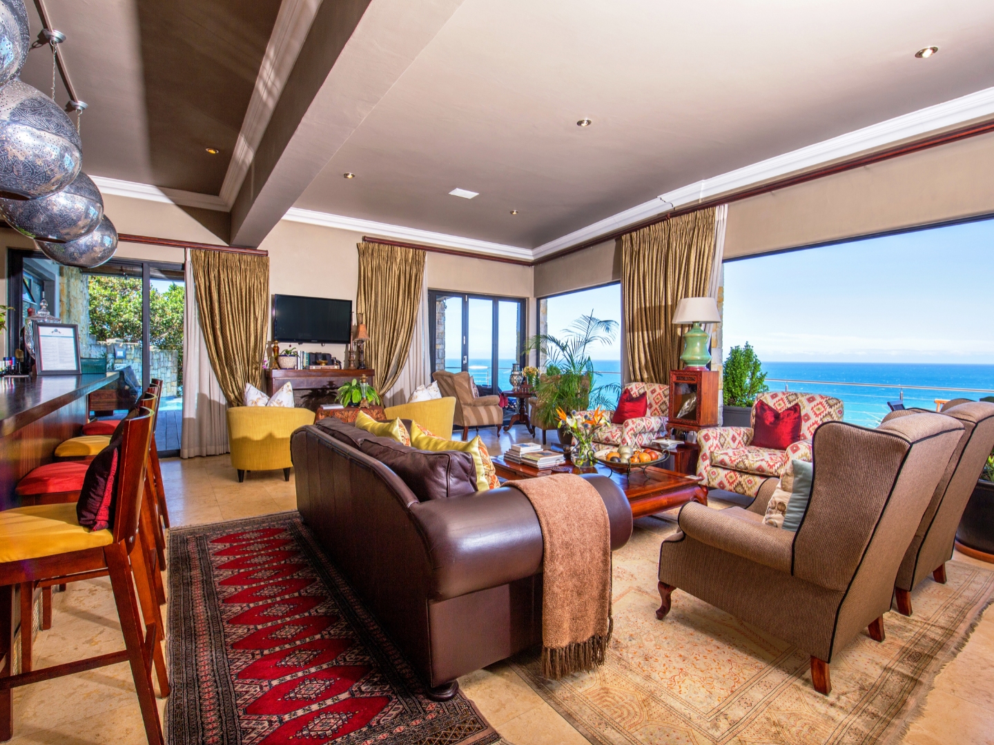 As you enter the home through the impressive double volume entrance hall, one is immediately greeted by the magnificent views of the blue ocean. The spacious open plan lounge, dining area and bar stretches the whole length of the home complimented by large windows to maximize the views.