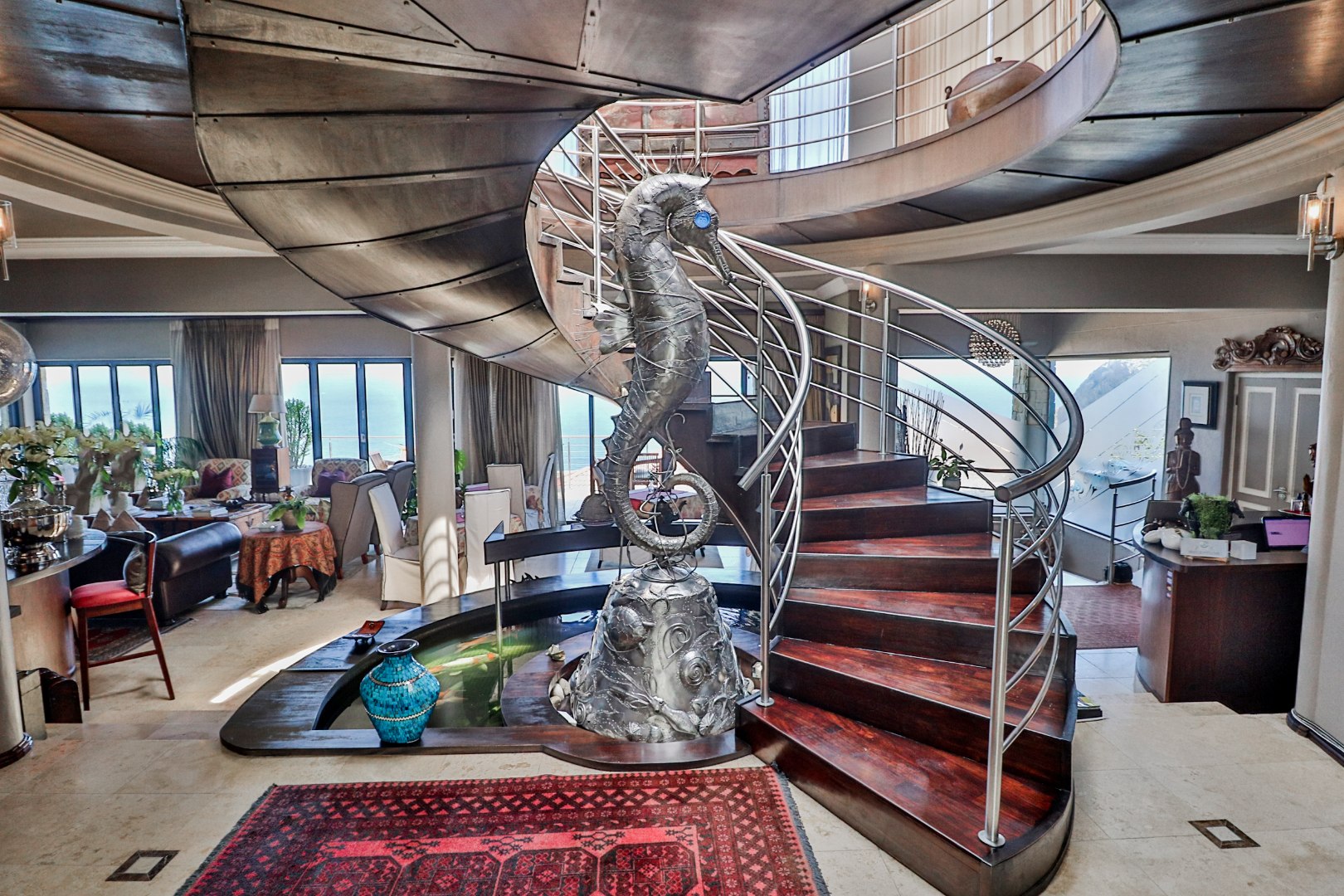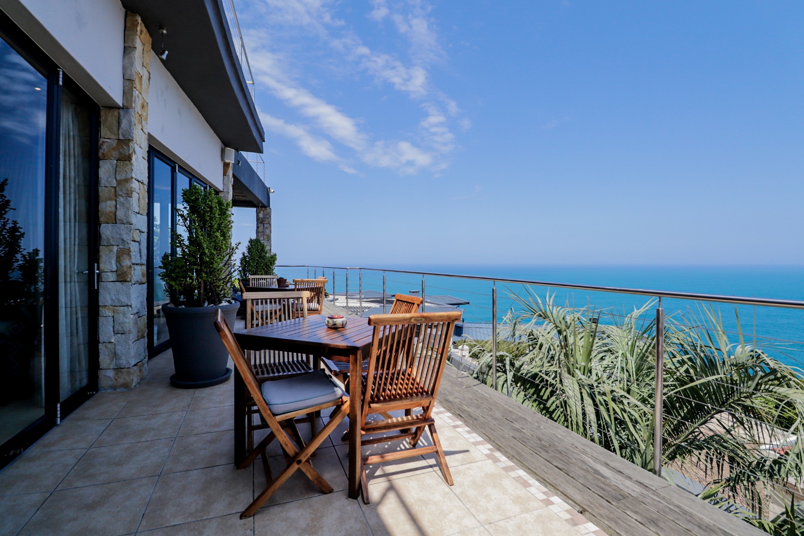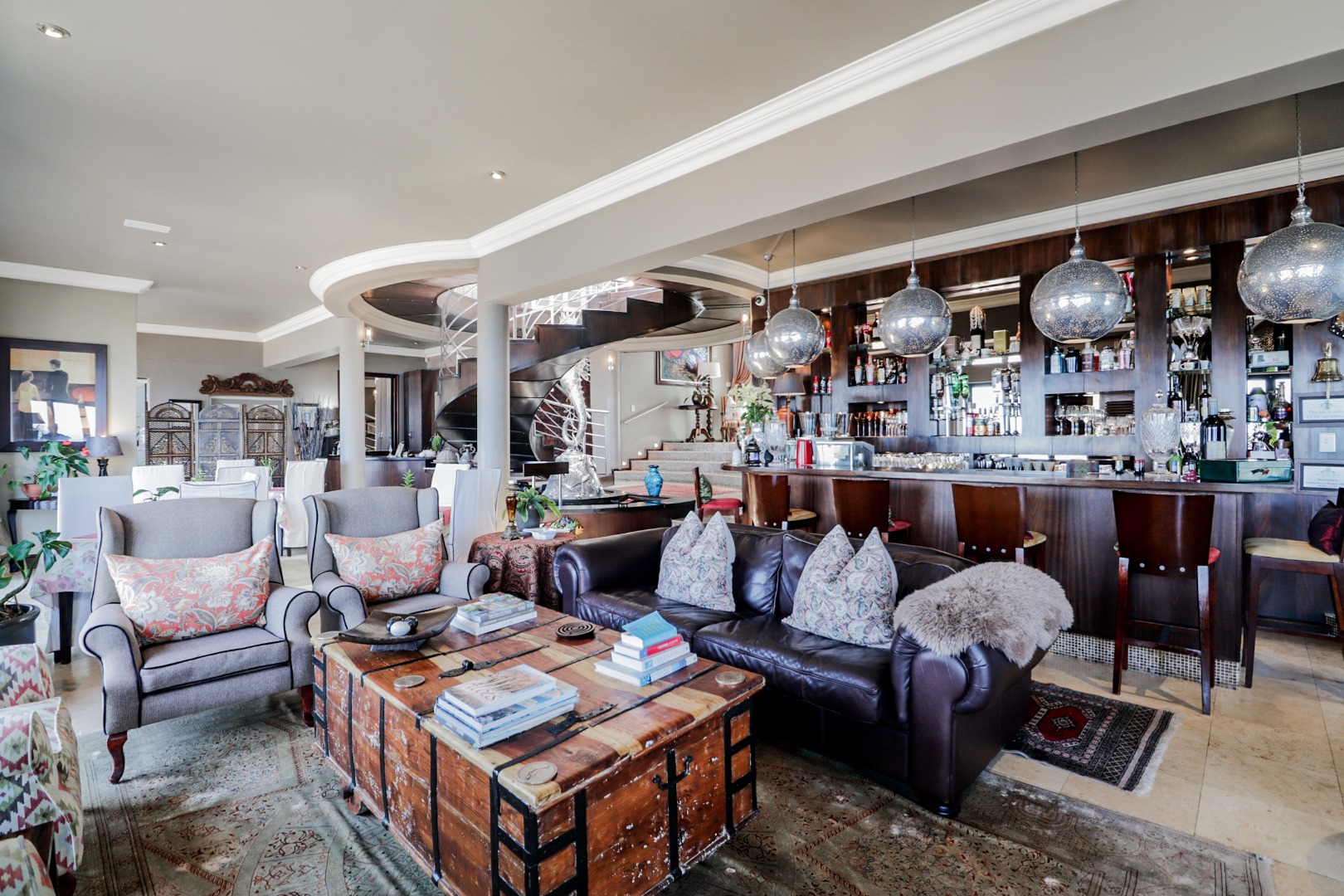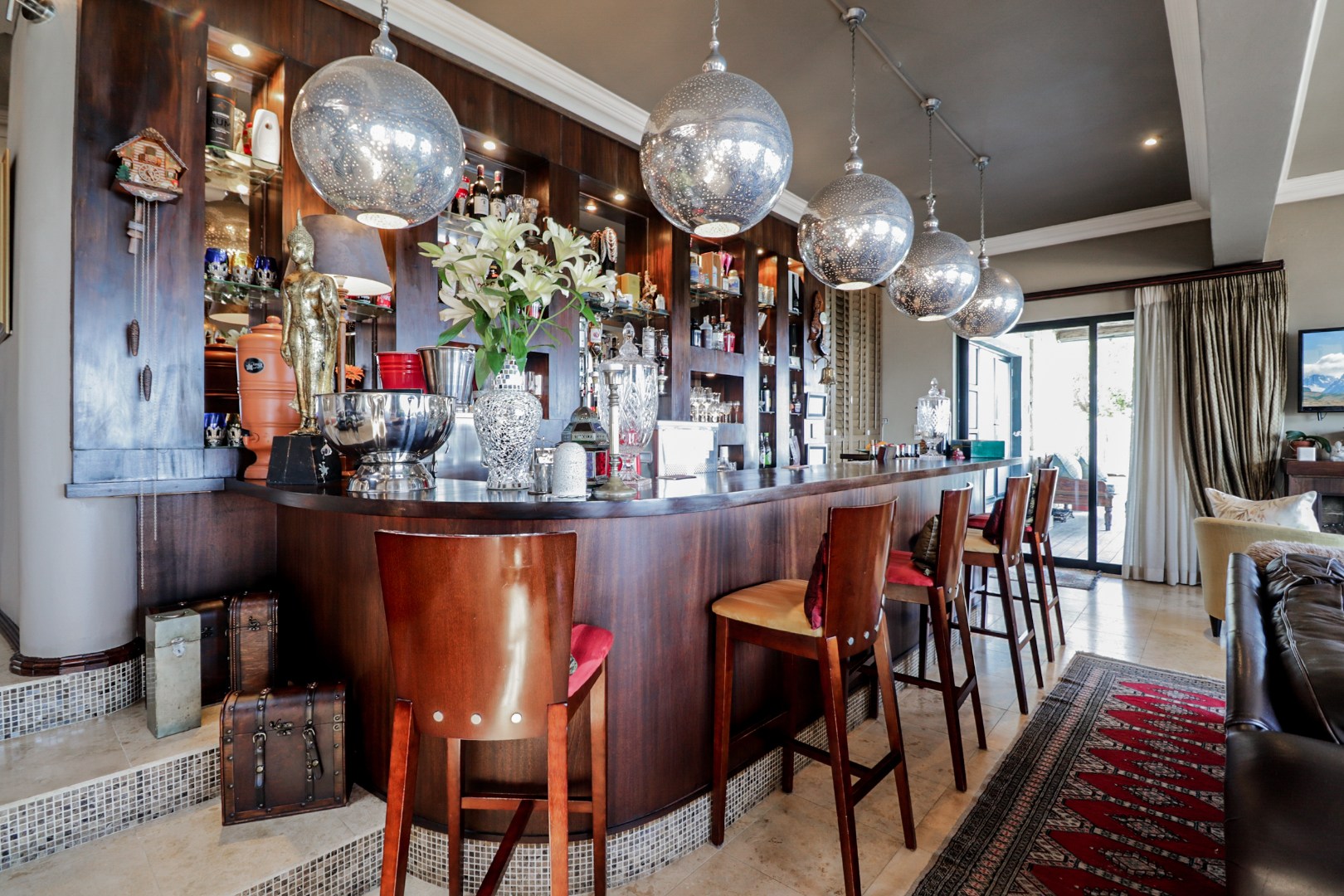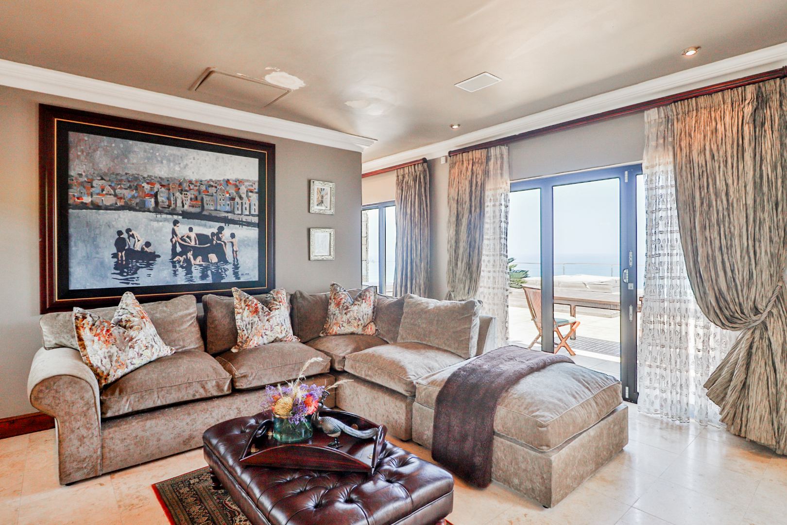As you enter the home through the impressive double volume entrance hall, one is immediately greeted by the magnificent views of the blue ocean. The spacious open plan lounge, dining area and bar stretches the whole length of the home complimented by large windows to maximize the views.