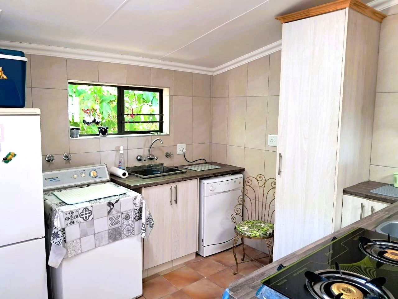The open-plan living area is bright and inviting, featuring a modern, newly upgraded kitchen with a separate scullery. Two braai areas—one indoor and one outdoor—make entertaining effortless, while the beautifully maintained garden showcases indigenous plants, vibrant wildflowers, and a variety of trees—truly a rare find in Boggomsbaai. This face brick, predominantly single-storey home has been meticulously cared for, offering comfort, style, and easy living in a serene coastal setting.