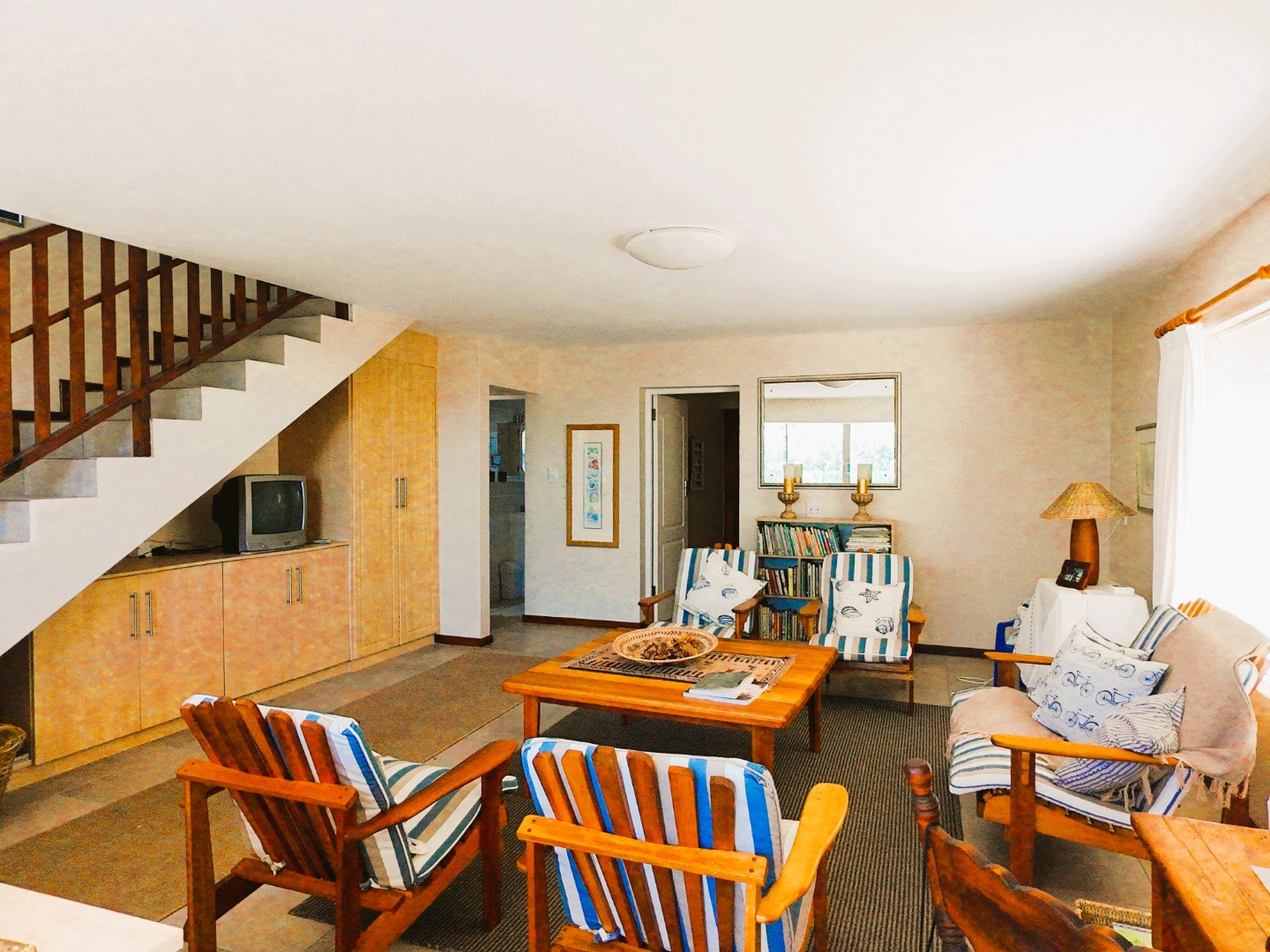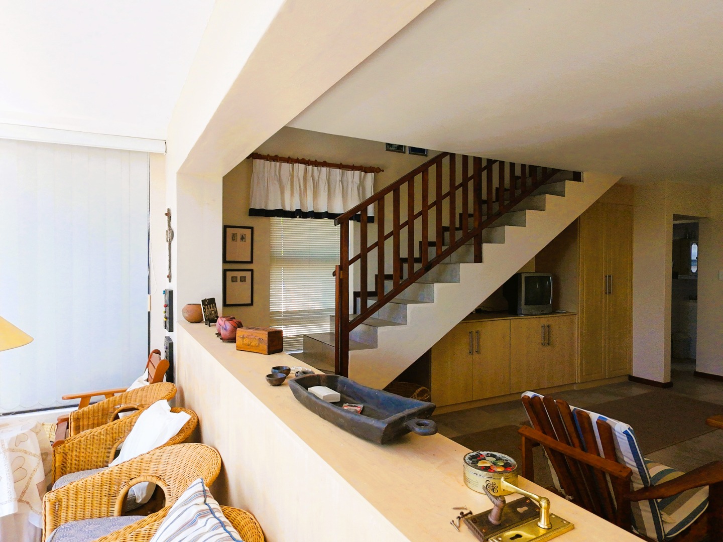 Upstairs, the heart of the home opens up to an inviting open-plan living and dining area, complete with a built-in braai perfect for entertaining. The spacious kitchen offers ample workspace for cooking and hosting with ease. This level also boasts two sea-facing bedrooms, where you can wake up to ocean views, as well as a separate bathroom.