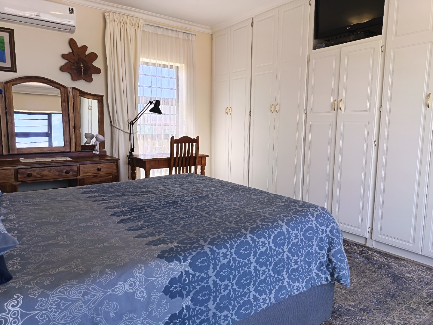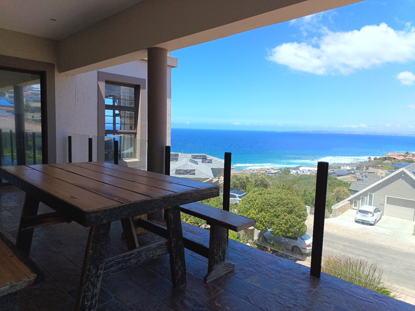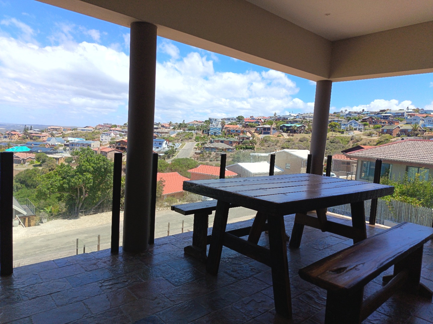 The residence features four comfortable bedrooms and three bathrooms, including en-suite options, providing ample accommodation. Multiple balconies with glass railings invite residents to enjoy the coastal breeze and panoramic vistas. For entertainment, a built-in braai and a built-in bar are available, perfect for social gatherings. The property also includes a practical garden, water tanks, and a wendy house.