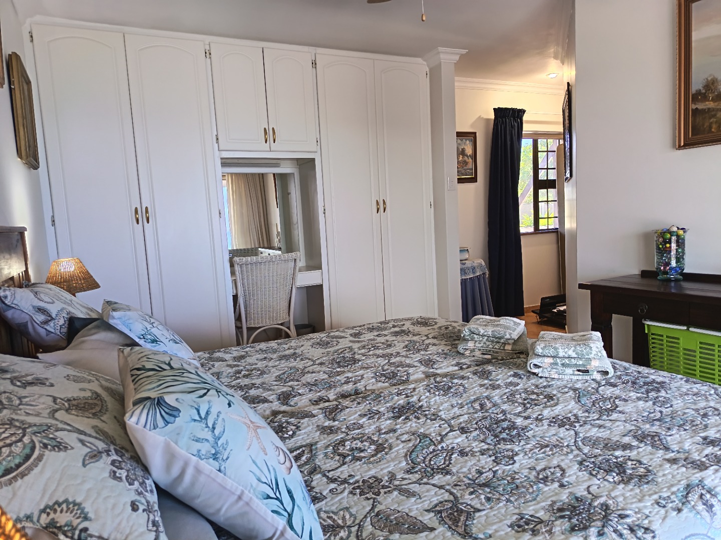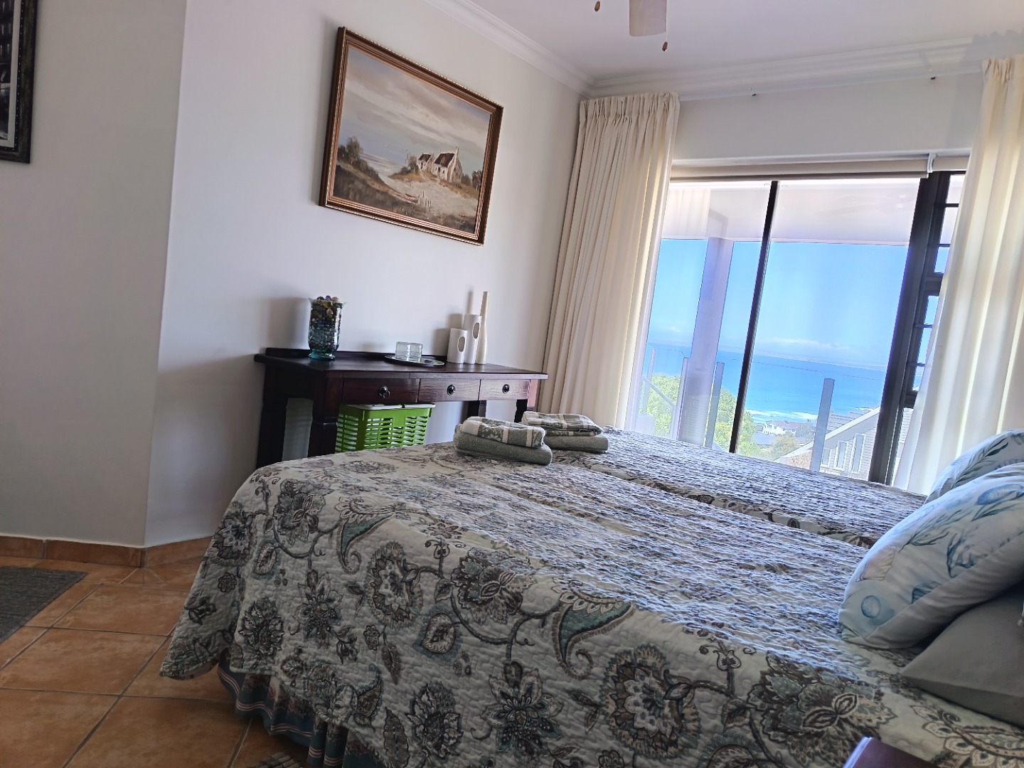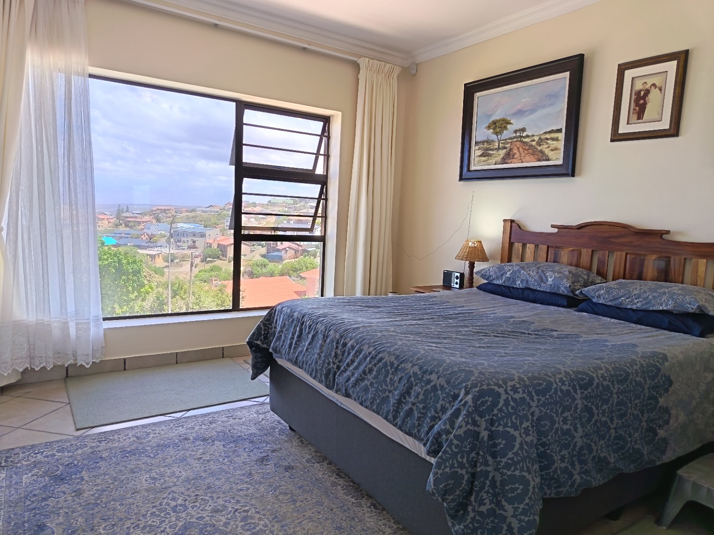 The residence features four comfortable bedrooms and three bathrooms, including en-suite options, providing ample accommodation. Multiple balconies with glass railings invite residents to enjoy the coastal breeze and panoramic vistas. For entertainment, a built-in braai and a built-in bar are available, perfect for social gatherings. The property also includes a practical garden, water tanks, and a wendy house.