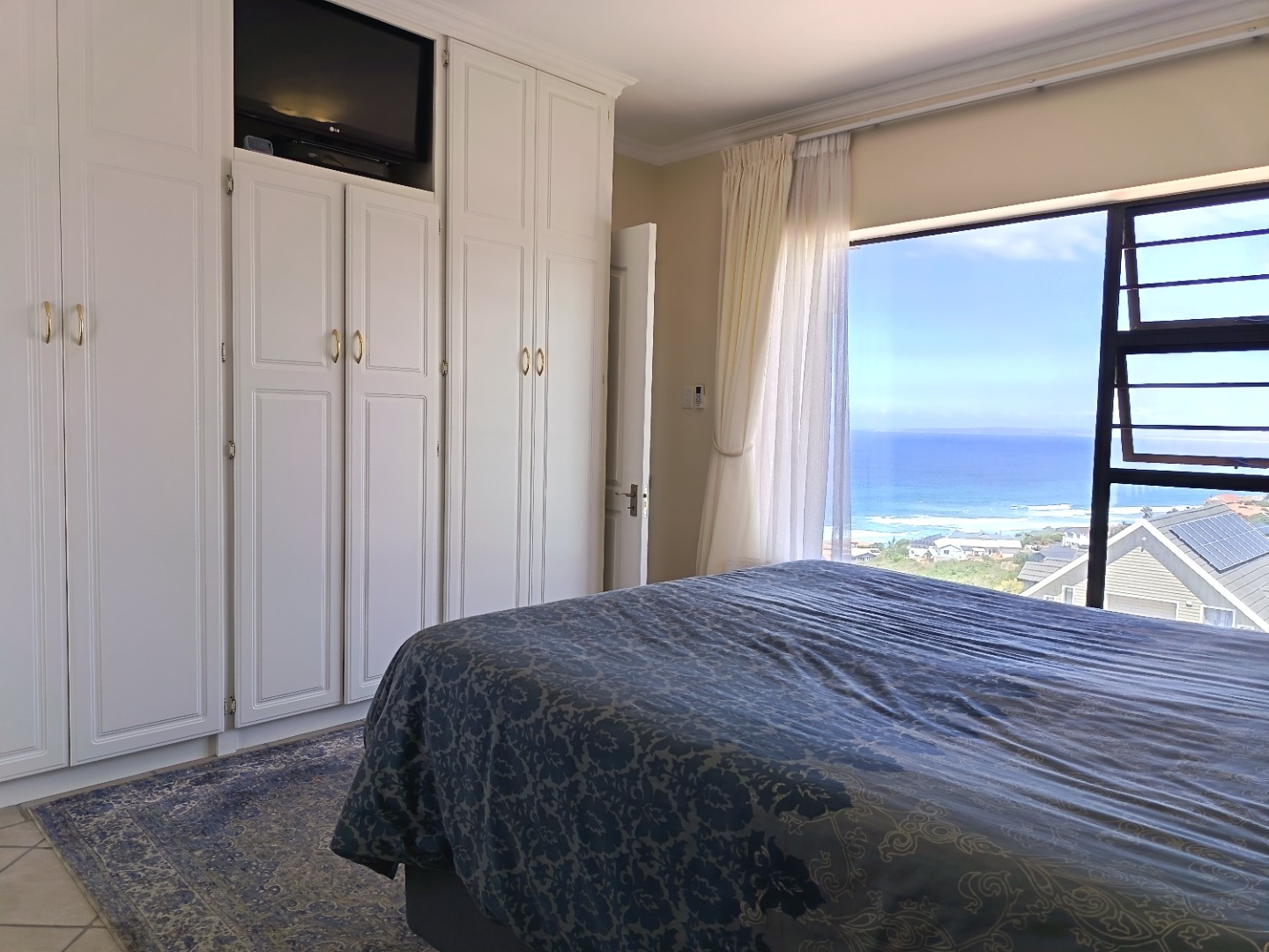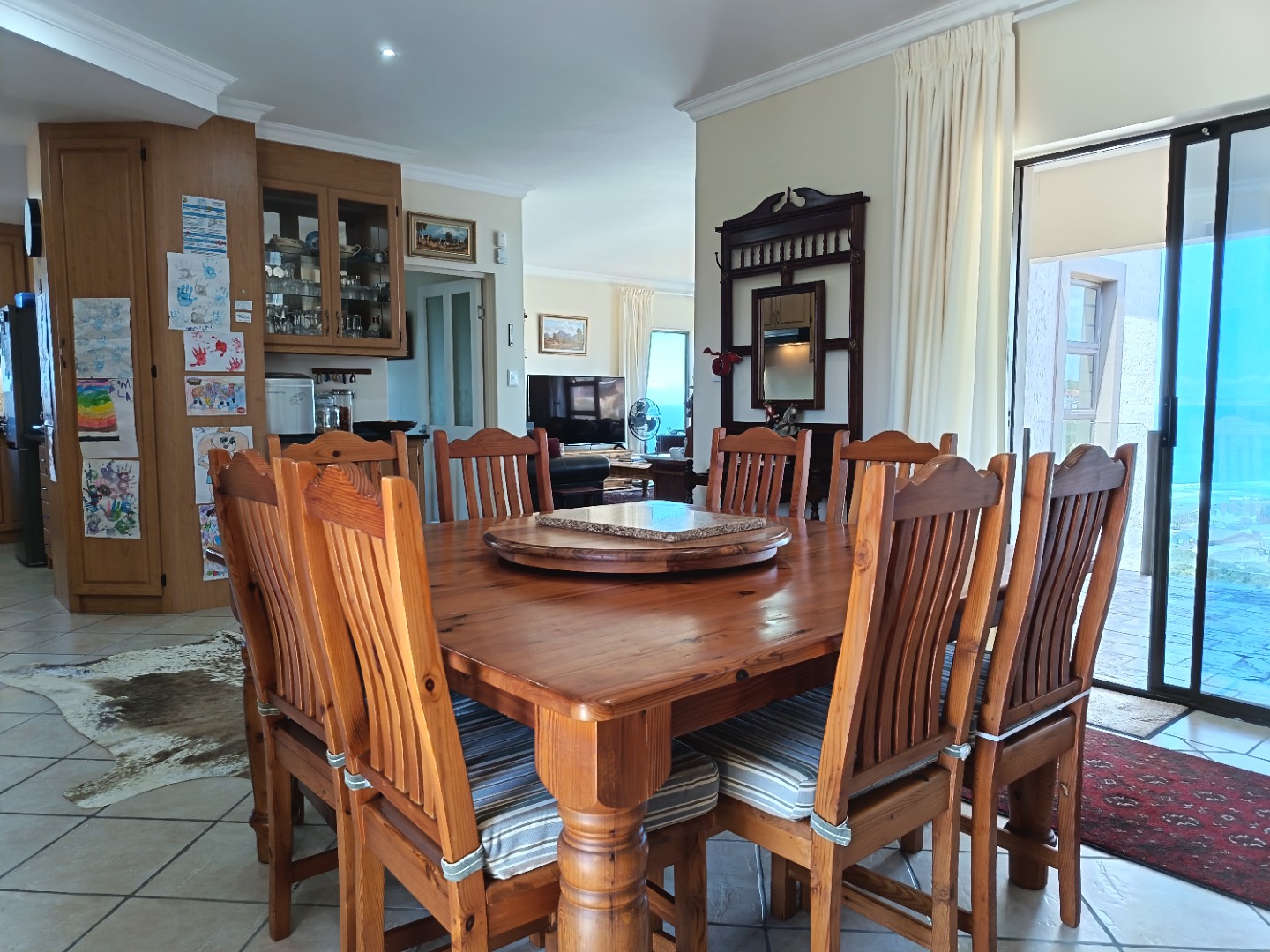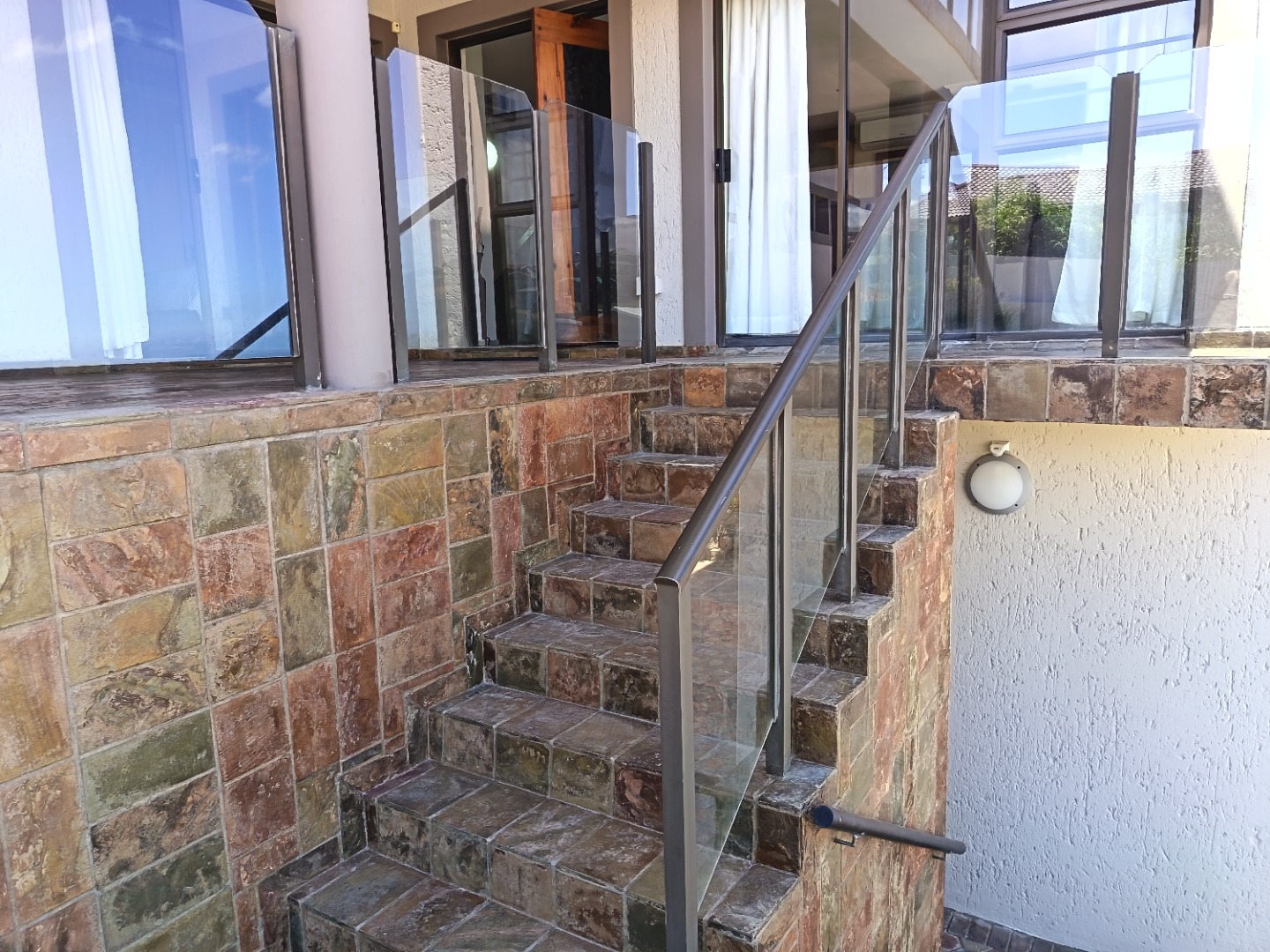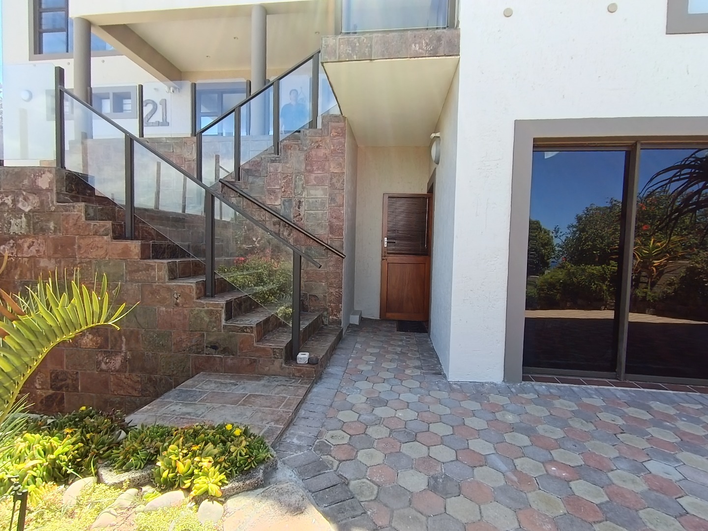Discover this impressive multi-story residence in the sought-after coastal suburb of Mossel Bay. Boasting a contemporary design with clean lines and extensive large windows, this property offers breathtaking sea views and significant income-generating potential. The well-maintained exterior, integrated garage, and spacious paved driveway create an inviting first impression, complemented by attractive landscaping.