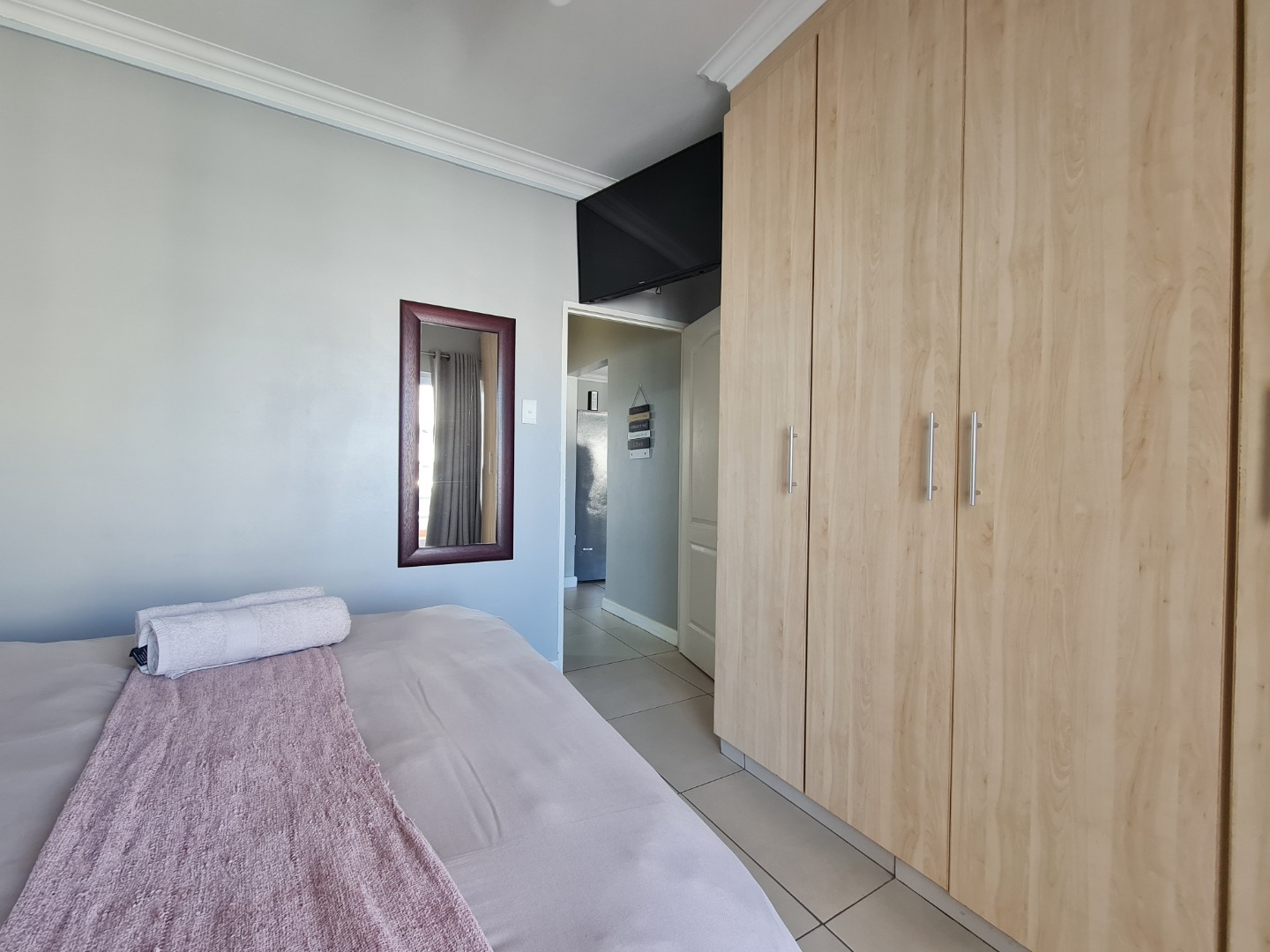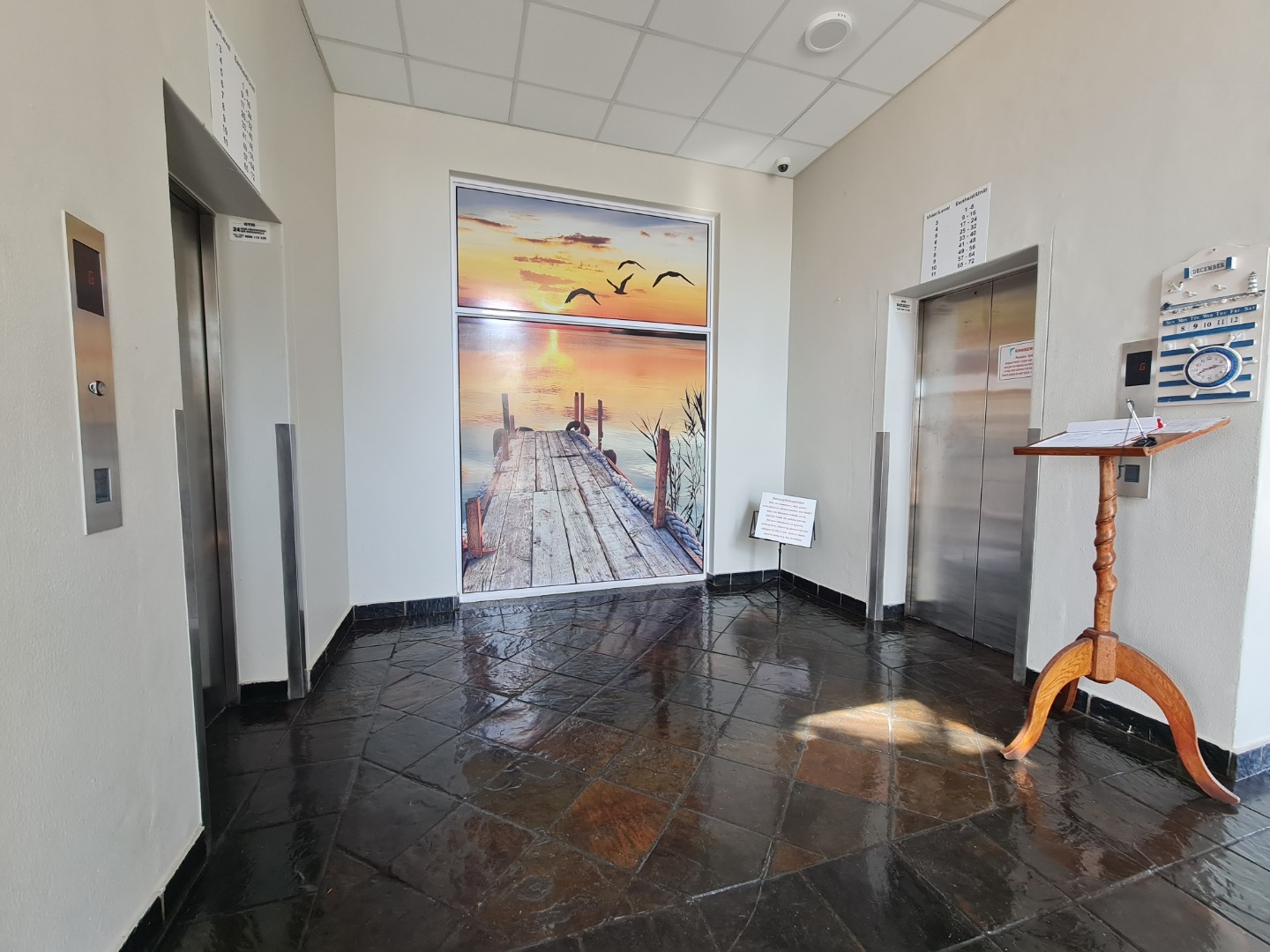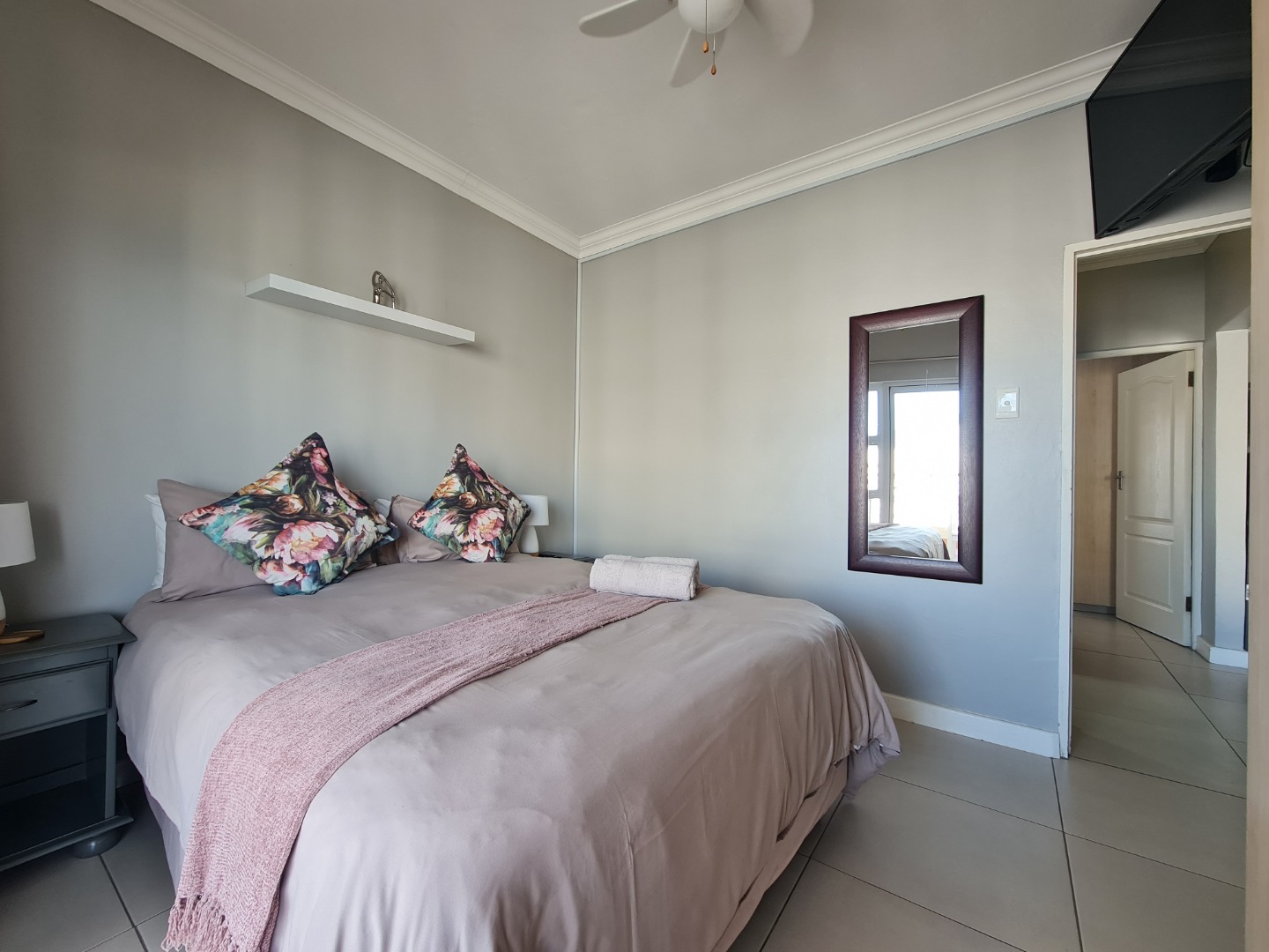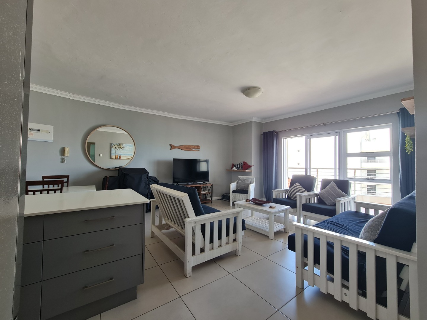 The apartment comprises two comfortable bedrooms, serviced by a well-appointed bathroom. Natural light floods the living spaces, enhancing the bright and airy ambiance. A highlight is the spacious, well-maintained balcony, accessible directly from the living area, perfect for enjoying the stunning sea views and coastal breeze. For added peace of mind, the property includes a security gate, intercom system, and a battery inverter for essential backup power. This wheelchair-friendly unit also comes with one dedicated parking bay AND AN ADDED BONUS IS ALL FURNITURE IS INCLUDED!