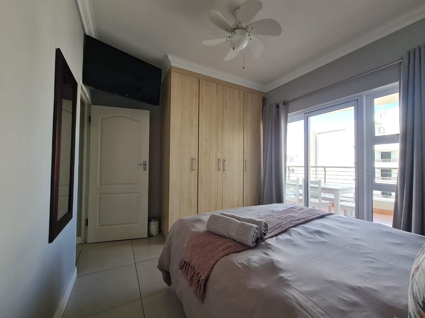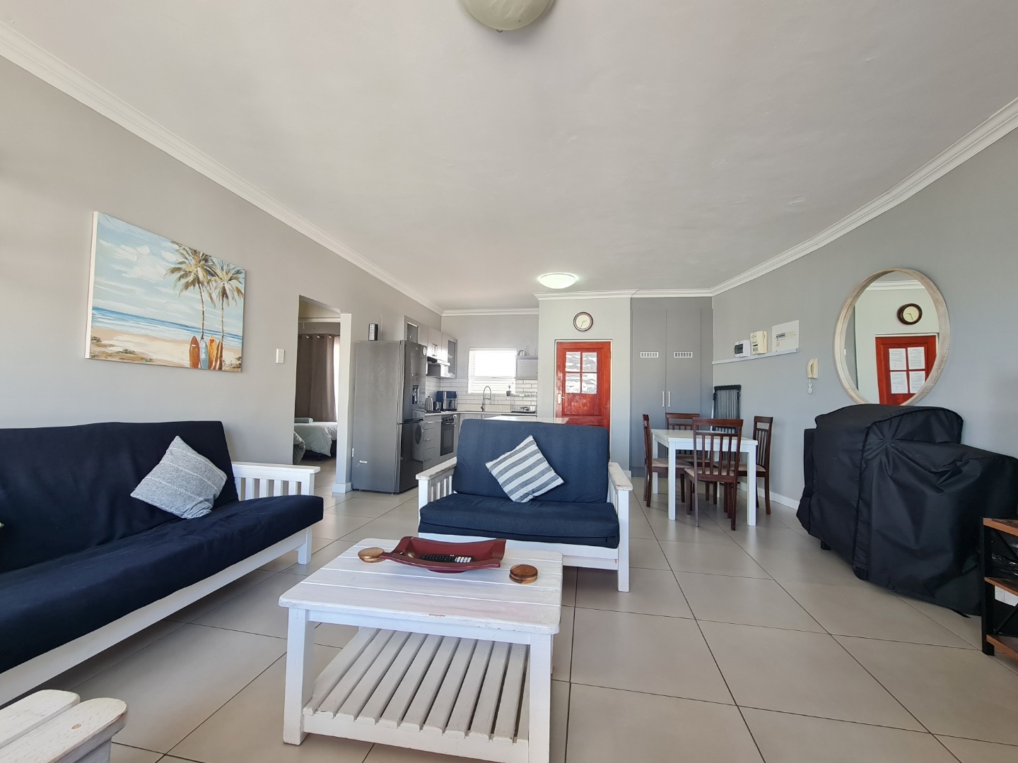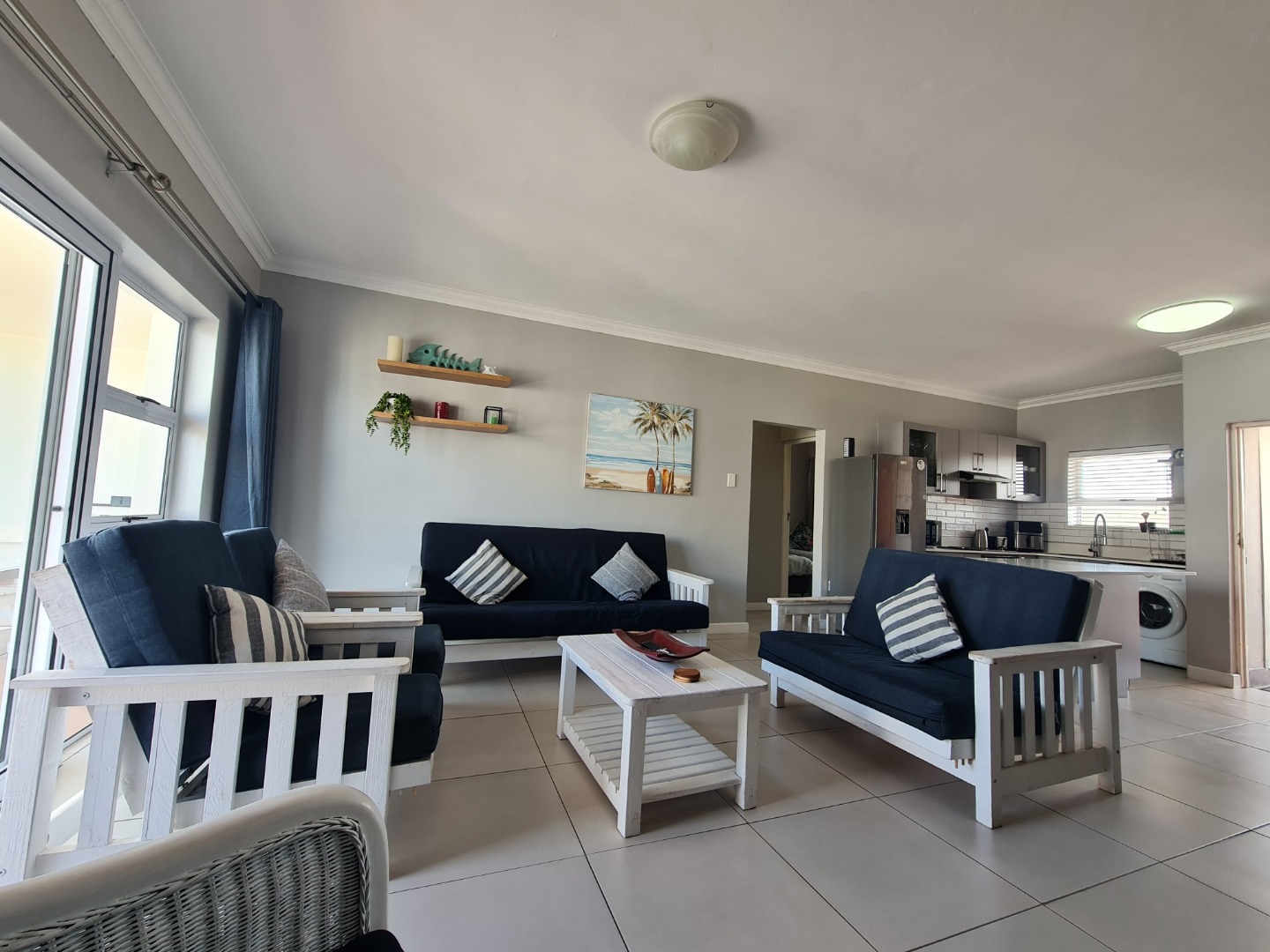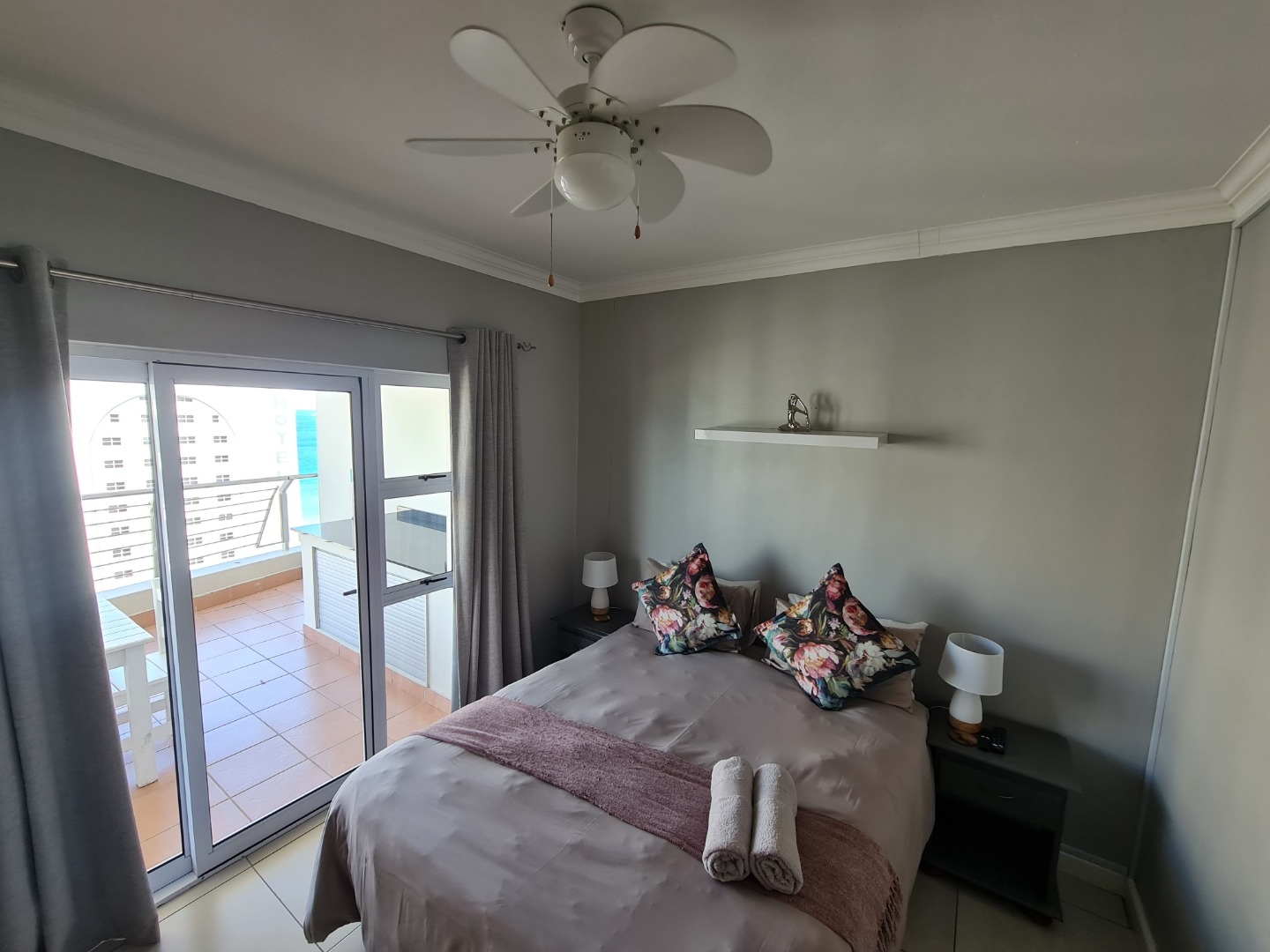The apartment comprises two comfortable bedrooms, serviced by a well-appointed bathroom. Natural light floods the living spaces, enhancing the bright and airy ambiance. A highlight is the spacious, well-maintained balcony, accessible directly from the living area, perfect for enjoying the stunning sea views and coastal breeze. For added peace of mind, the property includes a security gate, intercom system, and a battery inverter for essential backup power. This wheelchair-friendly unit also comes with one dedicated parking bay AND AN ADDED BONUS IS ALL FURNITURE IS INCLUDED!