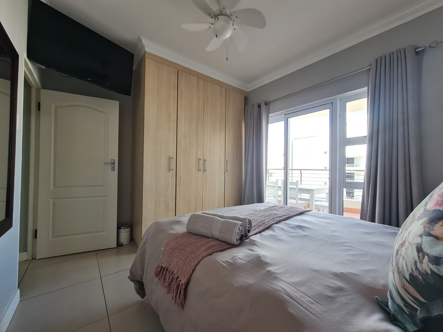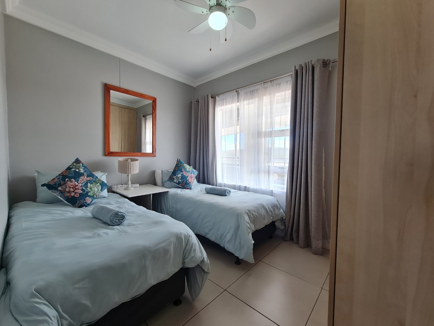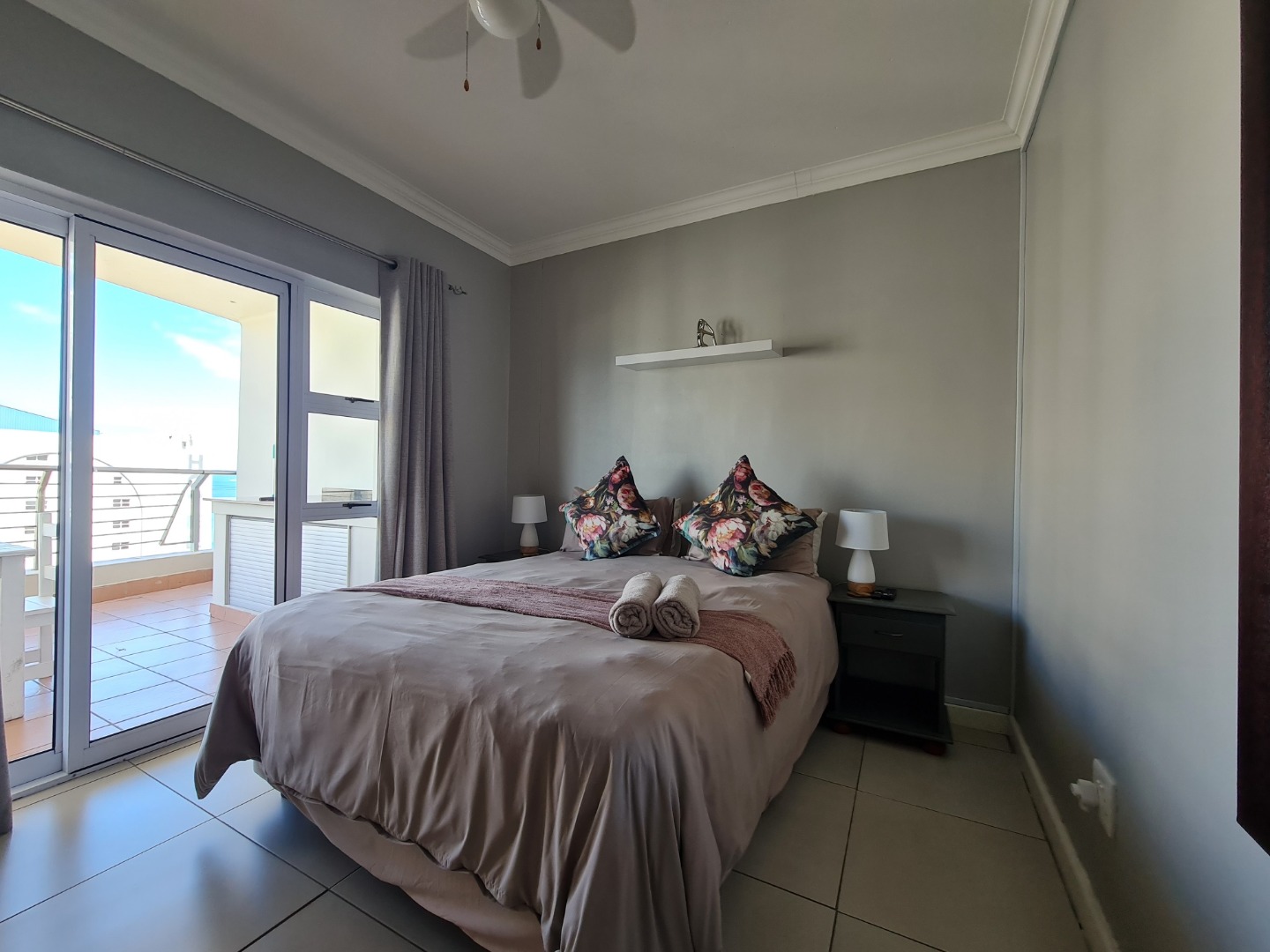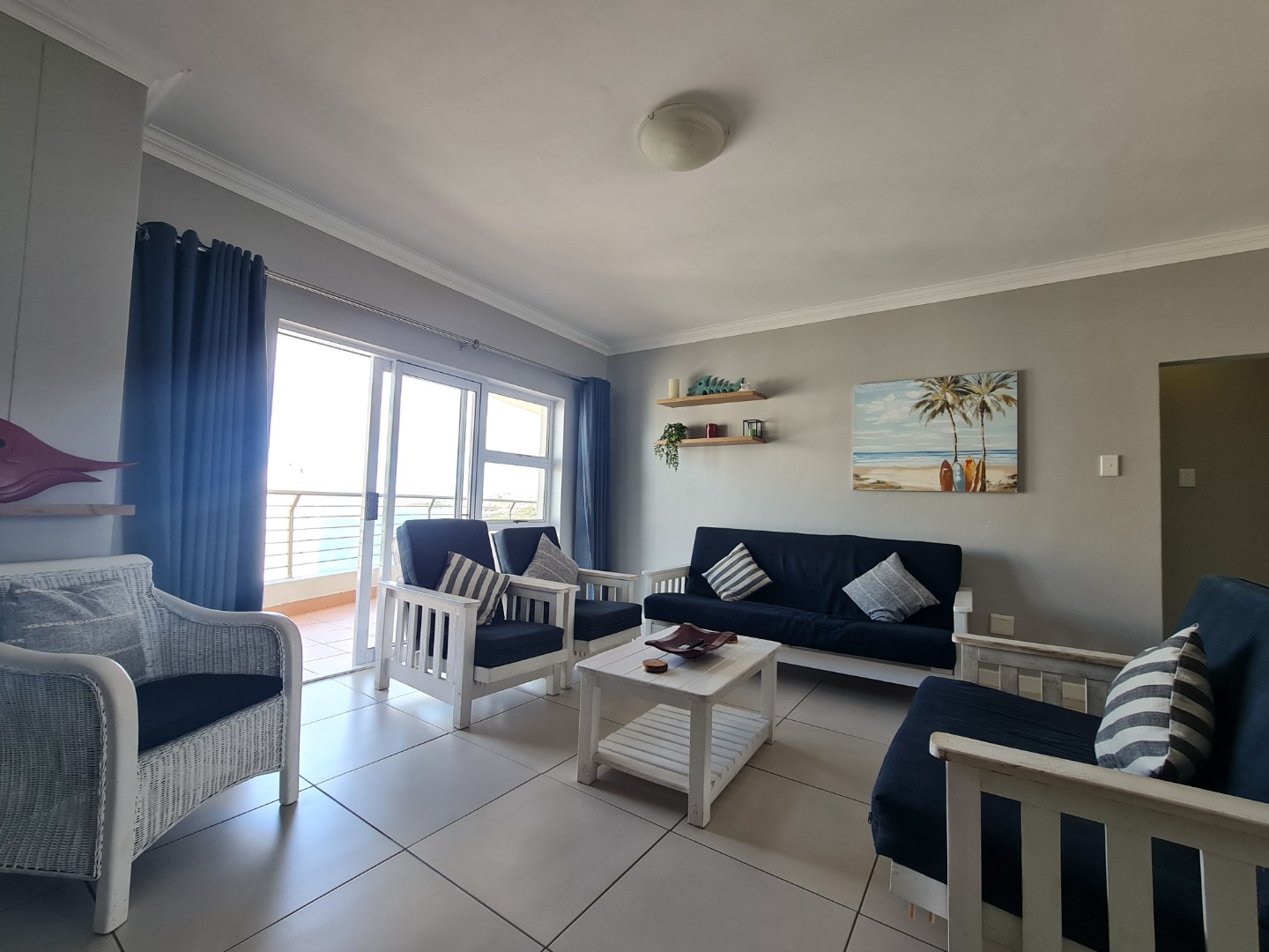 The apartment comprises two comfortable bedrooms, serviced by a well-appointed bathroom. Natural light floods the living spaces, enhancing the bright and airy ambiance. A highlight is the spacious, well-maintained balcony, accessible directly from the living area, perfect for enjoying the stunning sea views and coastal breeze. For added peace of mind, the property includes a security gate, intercom system, and a battery inverter for essential backup power. This wheelchair-friendly unit also comes with one dedicated parking bay AND AN ADDED BONUS IS ALL FURNITURE IS INCLUDED!