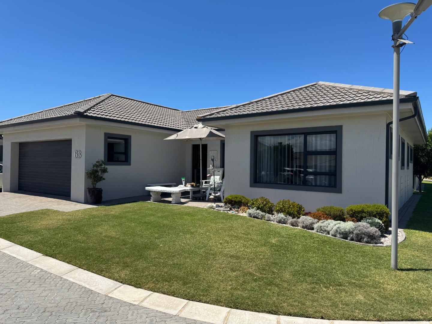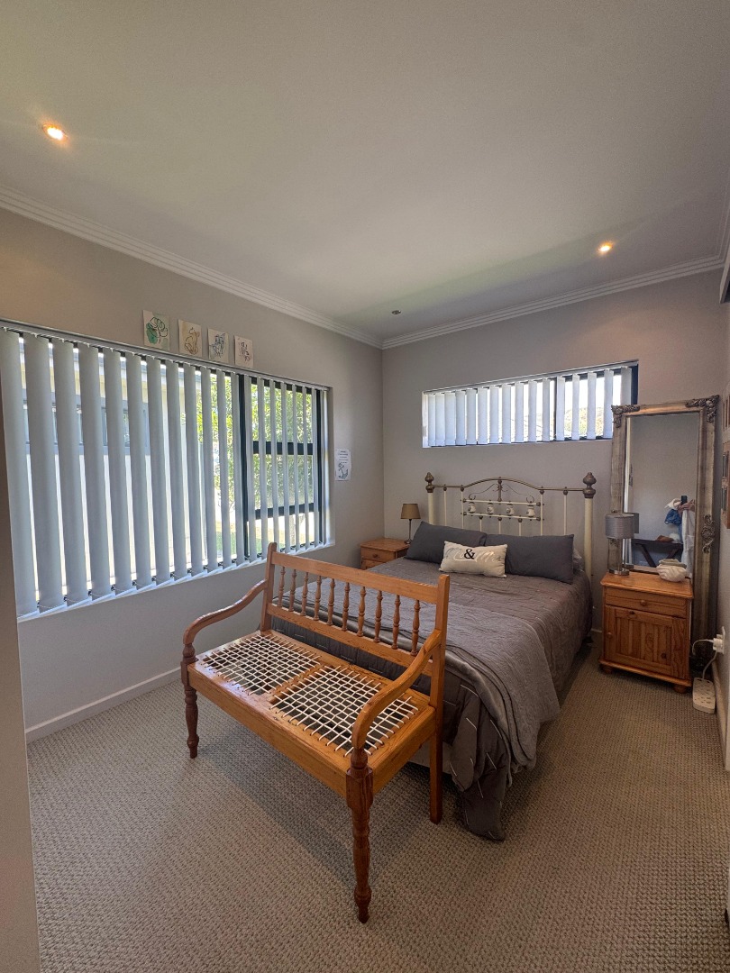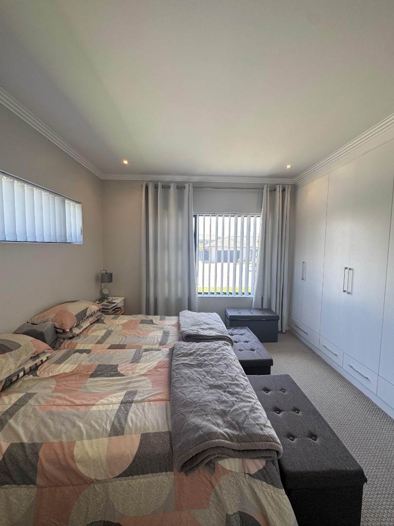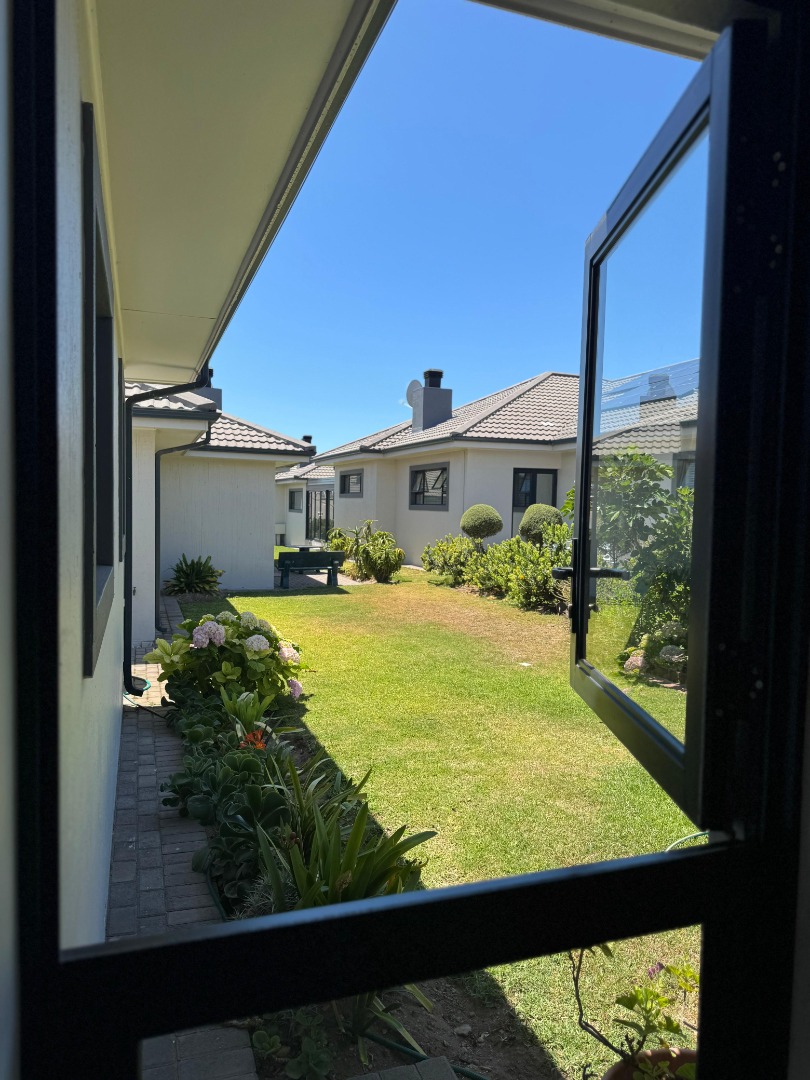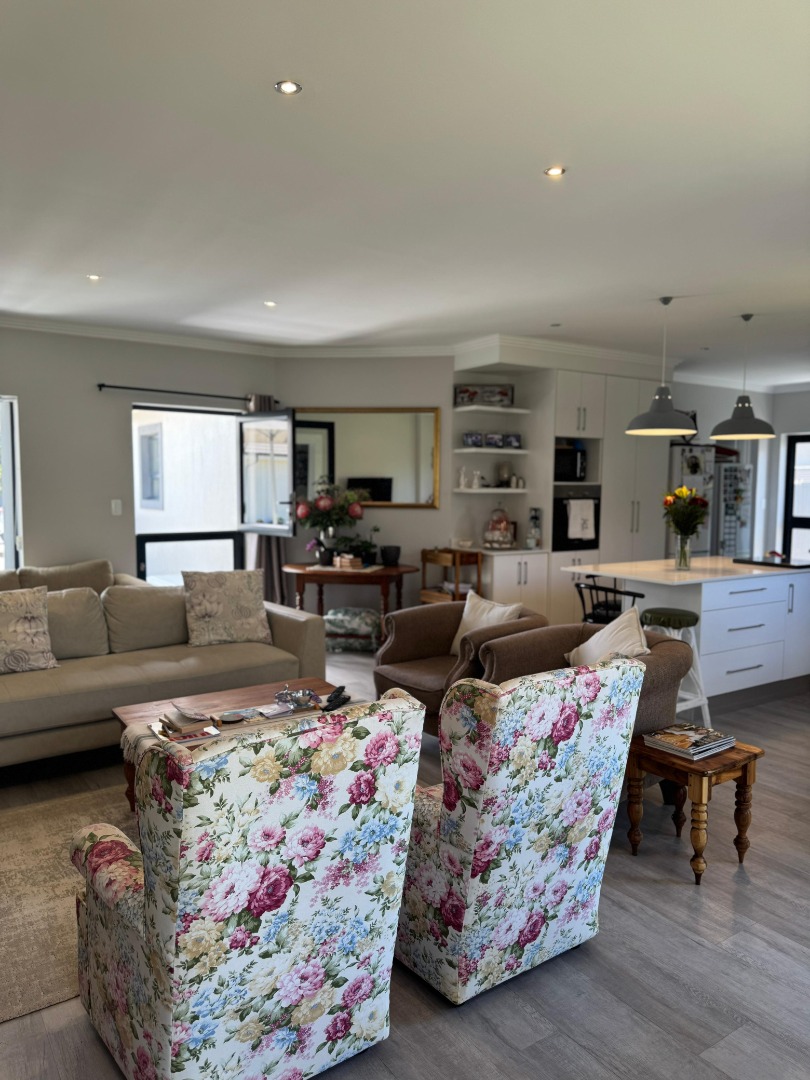 Discover modern coastal living in this charming single-story home, perfectly situated within a sought-after retirement village in Diaz Beach, Mossel Bay. The property boasts excellent kerb appeal with its contemporary light-colored facade, dark tiled roof, and neatly manicured lawn. A paved driveway leads to a double garage, complementing the inviting front patio, ideal for enjoying the serene surroundings. Step inside to an expansive open-plan living and dining area, designed for comfort and seamless entertaining. The interior is bathed in natural light, enhanced by modern light-toned flooring and recessed lighting. The contemporary kitchen forms the heart of the home, featuring crisp white cabinetry, a practical island/breakfast bar, and ample counter space with a double stainless steel sink. A distinctive stone-clad feature wall adds character, while crown molding provides a refined finish. This residence offers two comfortable bedrooms, each designed as an ensuite for ultimate privacy and convenience, totaling three well-appointed bathrooms. A dedicated utility room further enhances practicality and daily living flow. The manageable 314 sqm erf includes a well-maintained garden and paved areas, perfect for low-maintenance outdoor enjoyment, complete with a built-in braai. Residents benefit from a secure environment within the retirement village, featuring 24-hour security, an access gate, electric fencing, and burglar bars. Fibre-ready and equipped with water tanks, this home promotes modern convenience and sustainability. Nestled in picturesque Diaz Beach, this property offers an idyllic coastal lifestyle. Key Features: * 2 Bedrooms, 3 Bathrooms (2 Ensuites) * Spacious Open-Plan Living * Modern Kitchen with Island * Double Garage * Built-in Braai * Fibre Ready & Water Tanks * 24-Hour Security & Access Gate * Coastal Retirement Village Living