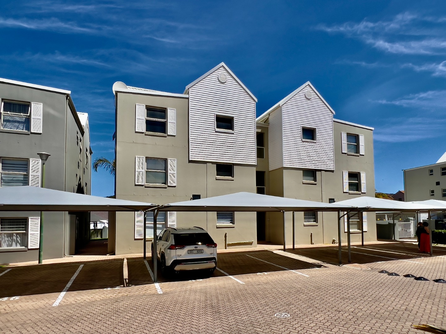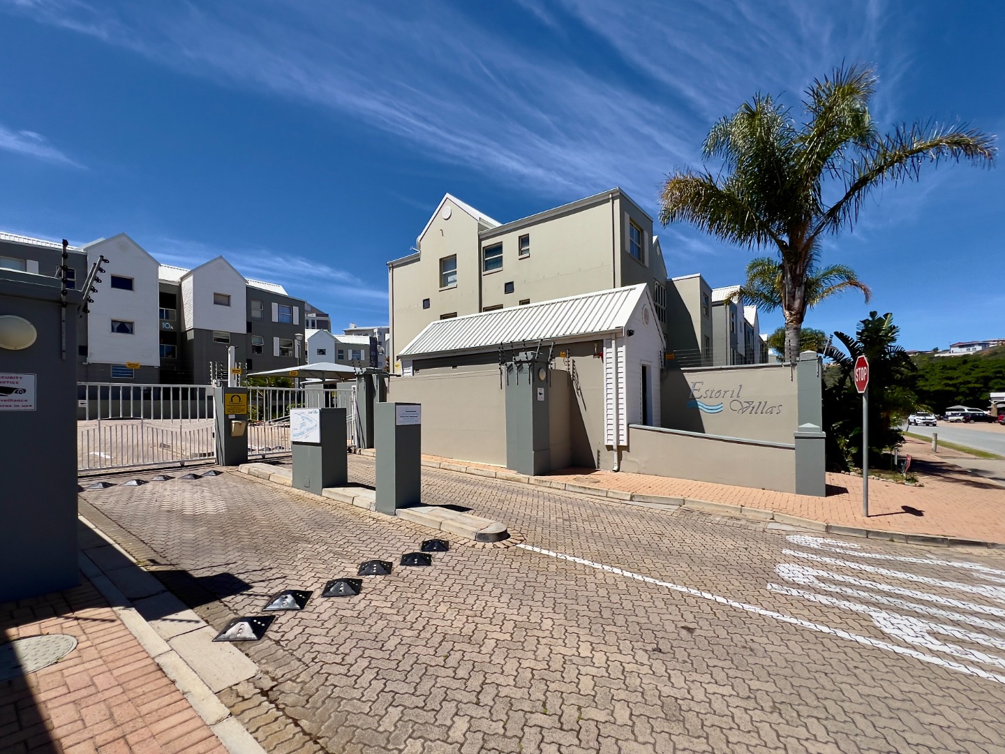 Begin your coastal lifestyle in this modern residential unit within the secure Estoril Villas complex, ideally situated in the vibrant suburb of Diaz Beach, Mossel Bay. The complex immediately impresses with its contemporary grey and white architectural facade, distinctive gabled roofs, and meticulously maintained landscaping featuring elegant palm trees. A robust, gated entrance, fortified with spiked strips and clear signage, ensures a secure and welcoming environment for all residents and visitors. Convenient covered parking facilities are available, enhancing the practicality and appeal of this well-designed development.