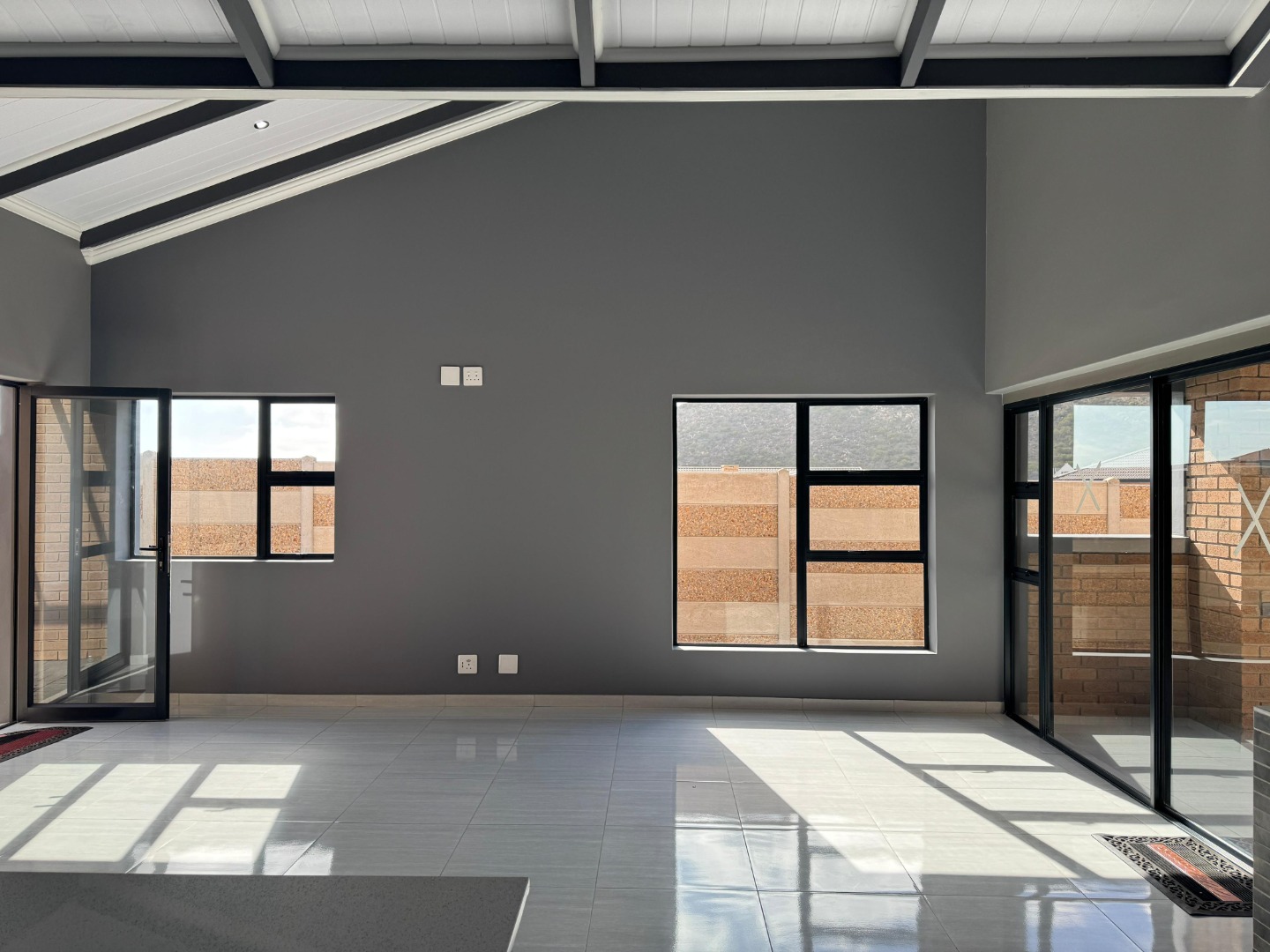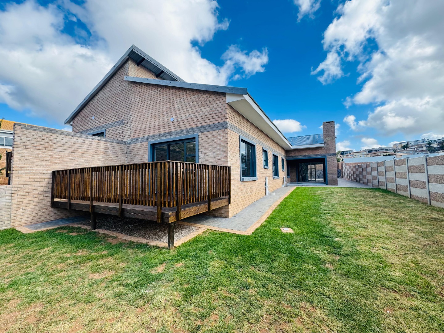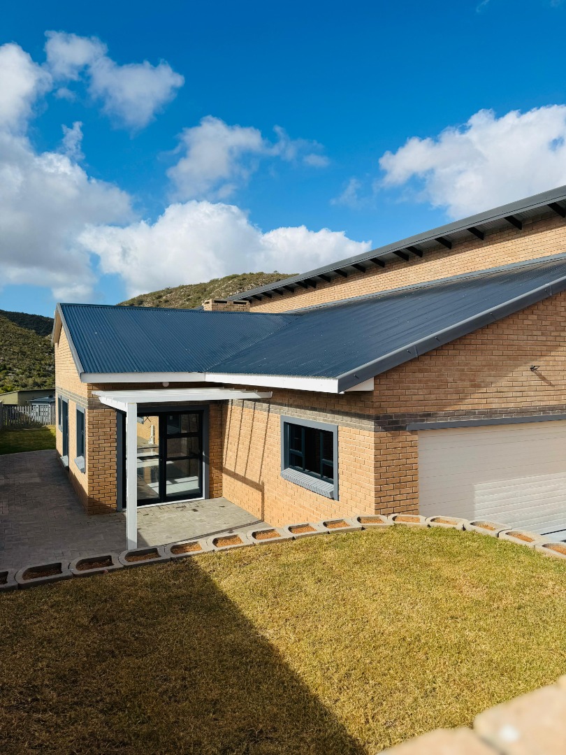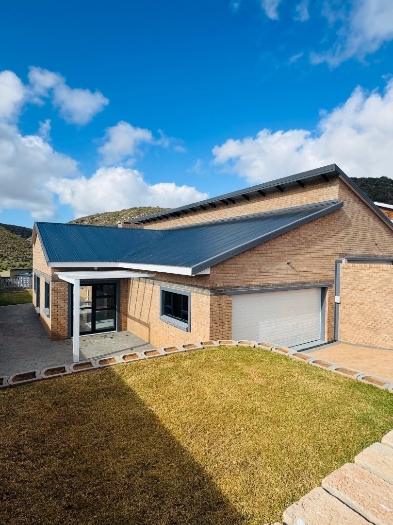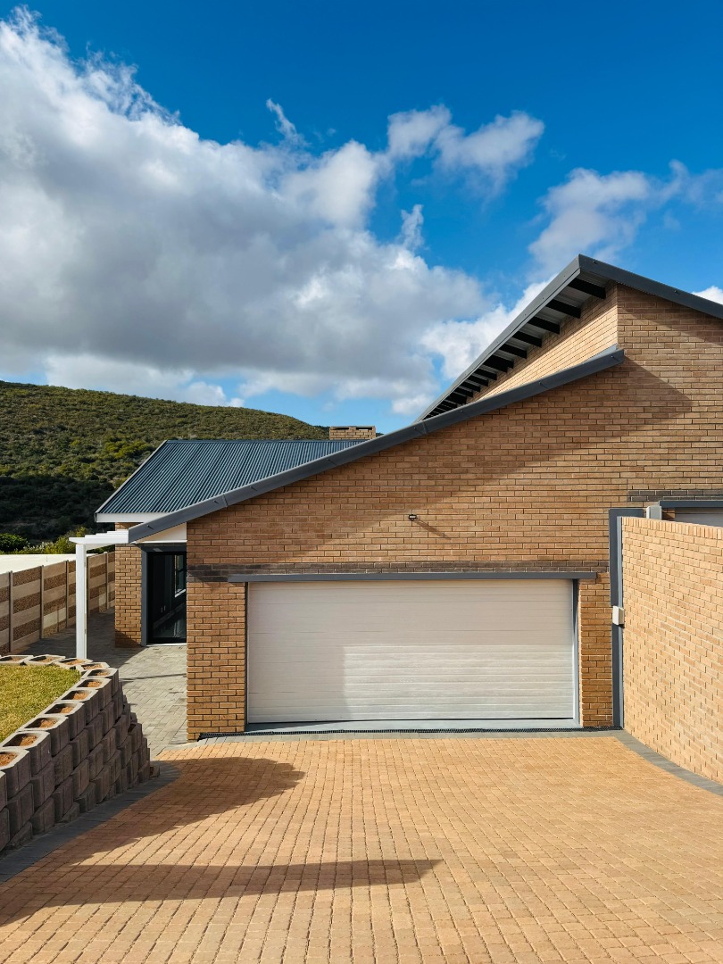 Discover this modern residential property in Island View, Mossel Bay, offering contemporary design and comfortable living. The striking brick exterior, dark corrugated roof, and integrated double garage provide excellent kerb appeal. A paved driveway leads to the covered entrance, set against a stunning natural backdrop of rolling hills. With an Erf size of 966.00 sqm and a Floor size of 196.00 sqm, this home offers ample space. The interior boasts a spacious open-plan layout, ideal for modern living and entertaining. The sleek kitchen features extensive dark grey cabinetry, light countertops, and a large central island with a gas hob. High ceilings with exposed beams and integrated lighting enhance the space, complemented by light tiled flooring throughout. A built-in braai area integrates seamlessly, alongside central heating and a dedicated laundry. This home comprises three well-appointed bedrooms and two modern bathrooms, including one en-suite. Bedrooms feature dark grey walls and built-in wardrobes. The bathrooms showcase contemporary grey tiling, a luxurious freestanding bathtub, and a spacious walk-in shower with elegant black fixtures. Outdoor living is inviting, with a private garden, patio, and balcony for relaxation and scenic views. The property is pet-friendly and secured with burglar bars and a fence. Located in sought-after Island View, this home offers a tranquil lifestyle with convenient access to Mossel Bay's amenities, perfect for a stylish family residence. Key Features: * 3 Bedrooms, 2 Bathrooms (1 En-suite) * Modern Open-Plan Kitchen with Gas Hob * Integrated Double Garage * Built-in Braai * Central Heating * Private Garden, Patio & Balcony * Scenic Views * Burglar Bars & Fence