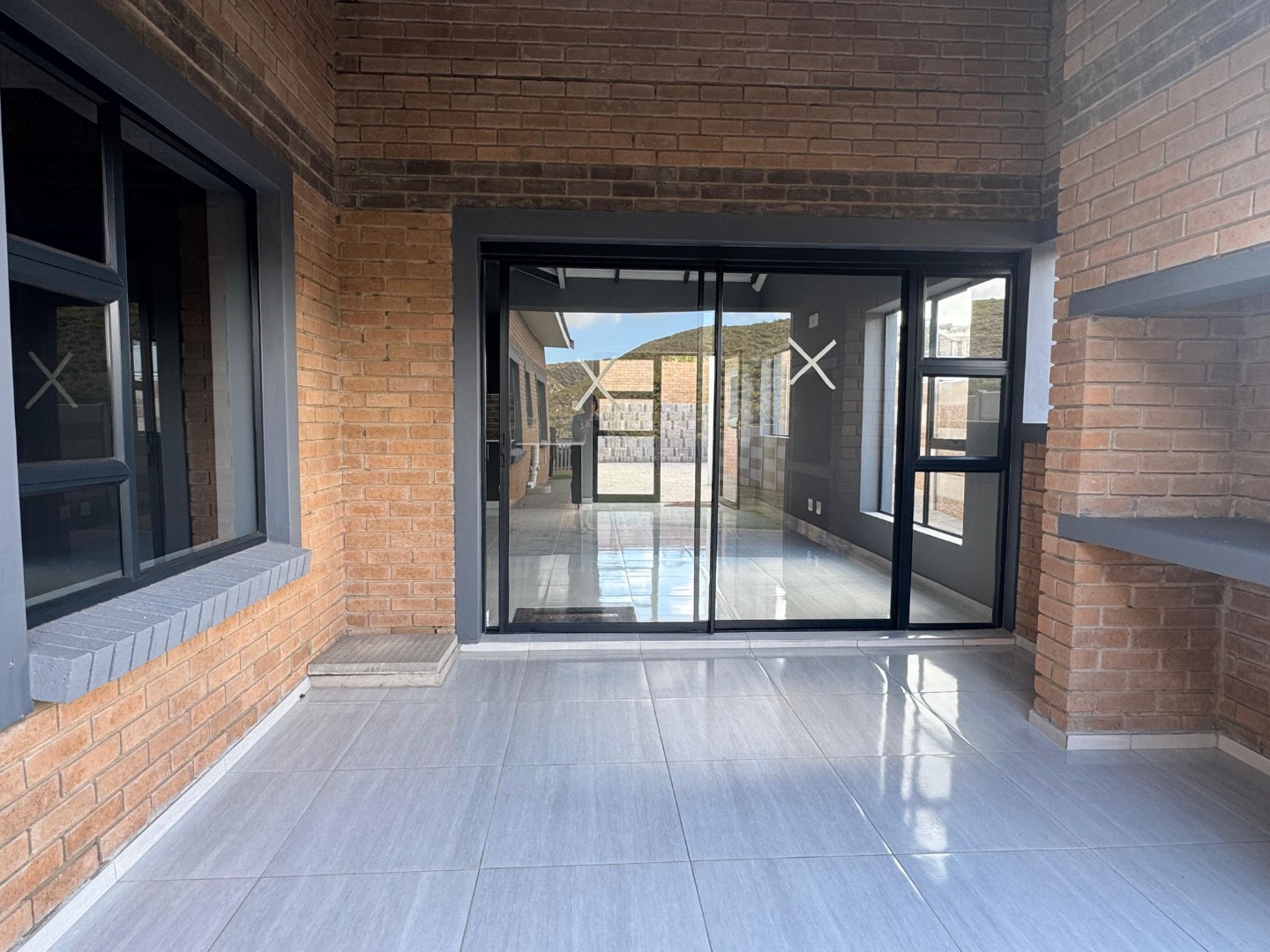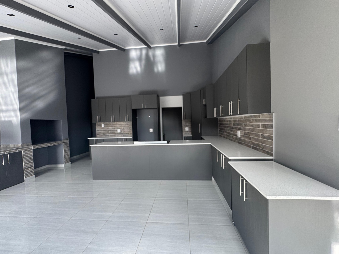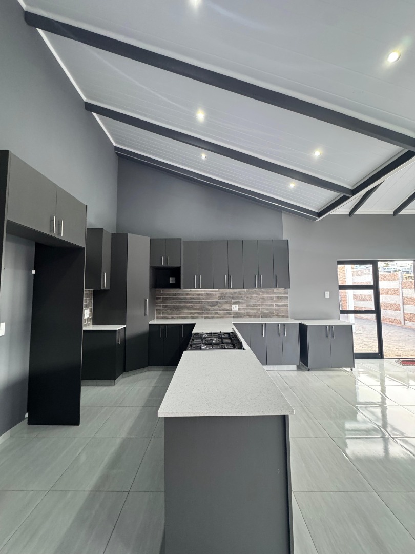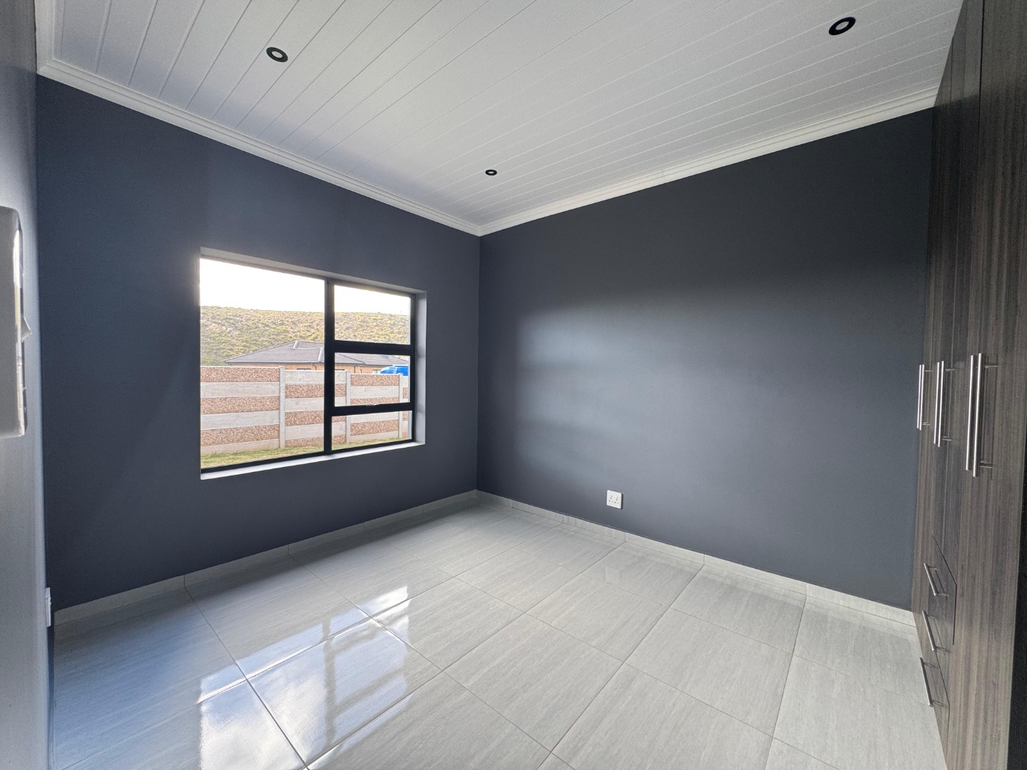 Discover this modern residential property in Island View, Mossel Bay, offering contemporary design and comfortable living. The striking brick exterior, dark corrugated roof, and integrated double garage provide excellent kerb appeal. A paved driveway leads to the covered entrance, set against a stunning natural backdrop of rolling hills. With an Erf size of 966.00 sqm and a Floor size of 196.00 sqm, this home offers ample space. The interior boasts a spacious open-plan layout, ideal for modern living and entertaining. The sleek kitchen features extensive dark grey cabinetry, light countertops, and a large central island with a gas hob. High ceilings with exposed beams and integrated lighting enhance the space, complemented by light tiled flooring throughout. A built-in braai area integrates seamlessly, alongside central heating and a dedicated laundry. This home comprises three well-appointed bedrooms and two modern bathrooms, including one en-suite. Bedrooms feature dark grey walls and built-in wardrobes. The bathrooms showcase contemporary grey tiling, a luxurious freestanding bathtub, and a spacious walk-in shower with elegant black fixtures. Outdoor living is inviting, with a private garden, patio, and balcony for relaxation and scenic views. The property is pet-friendly and secured with burglar bars and a fence. Located in sought-after Island View, this home offers a tranquil lifestyle with convenient access to Mossel Bay's amenities, perfect for a stylish family residence. Key Features: * 3 Bedrooms, 2 Bathrooms (1 En-suite) * Modern Open-Plan Kitchen with Gas Hob * Integrated Double Garage * Built-in Braai * Central Heating * Private Garden, Patio & Balcony * Scenic Views * Burglar Bars & Fence