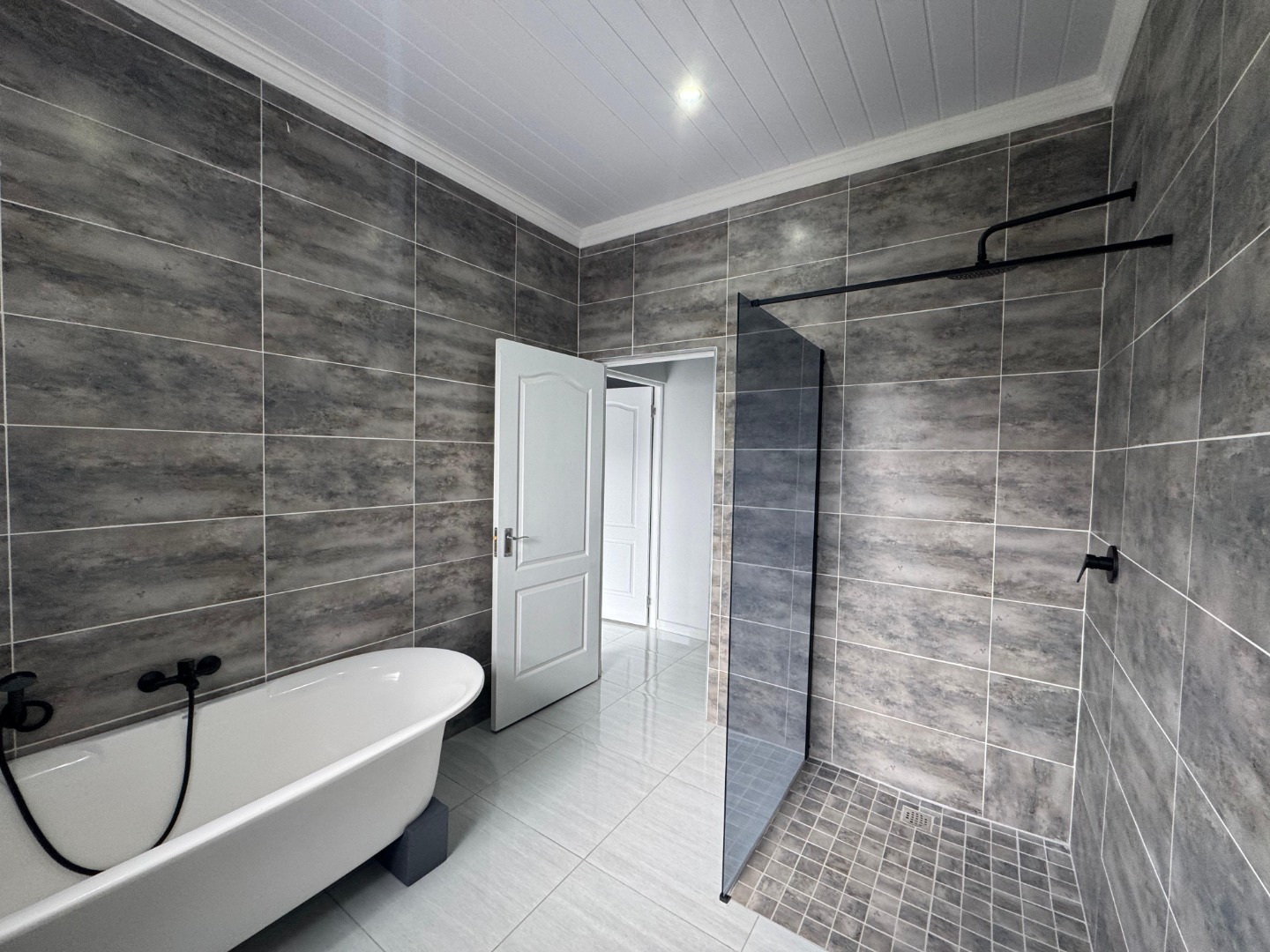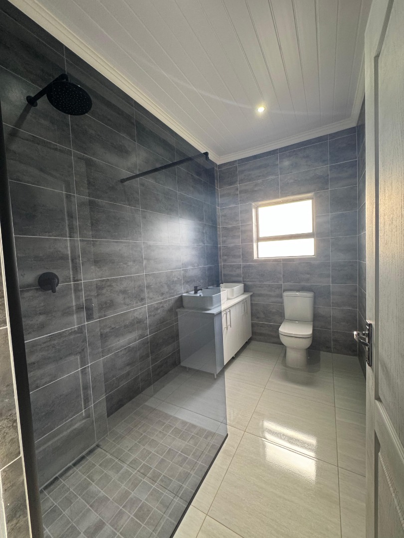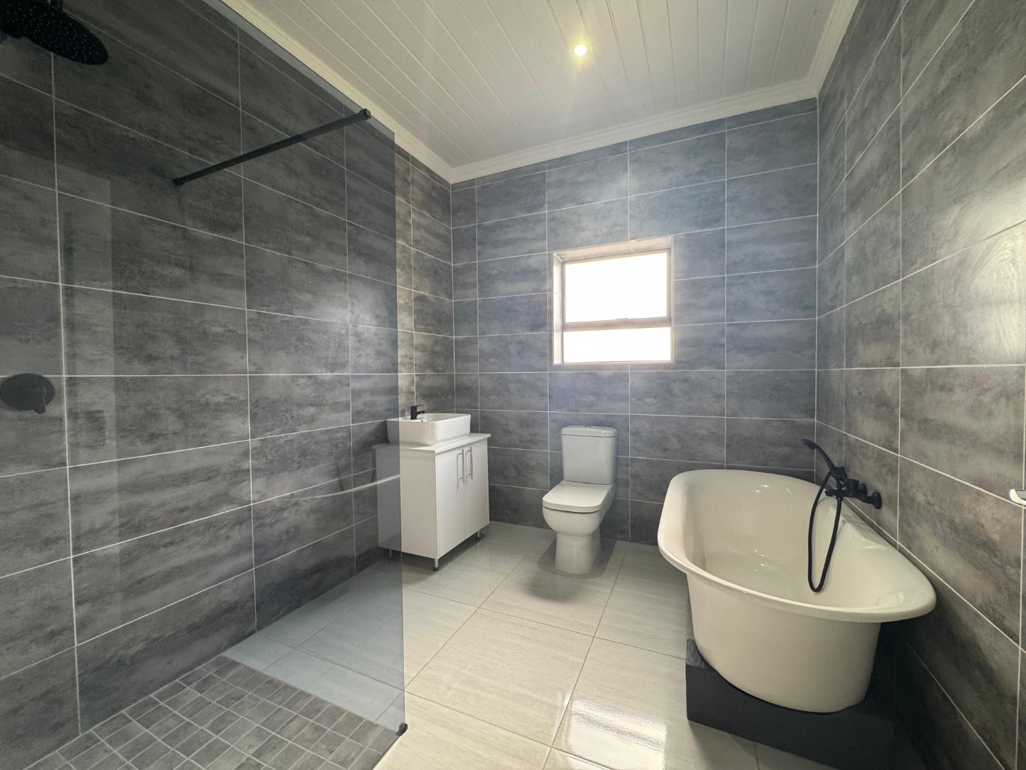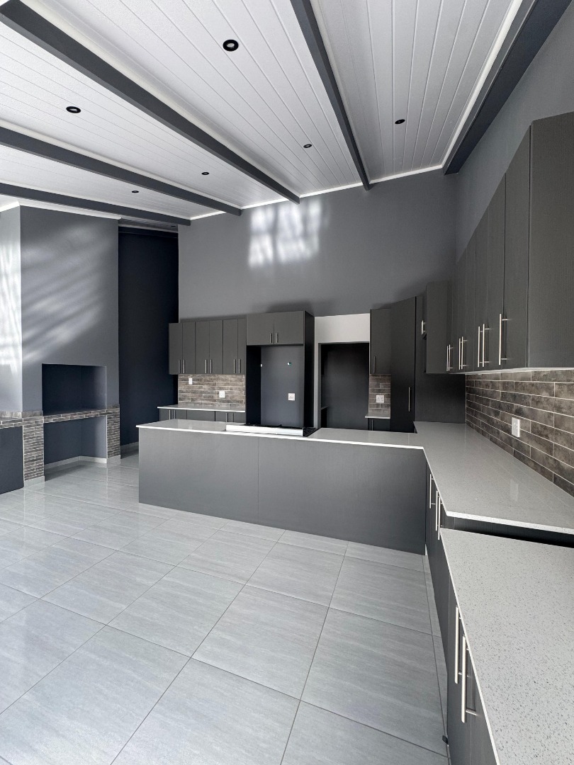 Discover this modern residential property in Island View, Mossel Bay, offering contemporary design and comfortable living. The striking brick exterior, dark corrugated roof, and integrated double garage provide excellent kerb appeal. A paved driveway leads to the covered entrance, set against a stunning natural backdrop of rolling hills. With an Erf size of 966.00 sqm and a Floor size of 196.00 sqm, this home offers ample space. The interior boasts a spacious open-plan layout, ideal for modern living and entertaining. The sleek kitchen features extensive dark grey cabinetry, light countertops, and a large central island with a gas hob. High ceilings with exposed beams and integrated lighting enhance the space, complemented by light tiled flooring throughout. A built-in braai area integrates seamlessly, alongside central heating and a dedicated laundry. This home comprises three well-appointed bedrooms and two modern bathrooms, including one en-suite. Bedrooms feature dark grey walls and built-in wardrobes. The bathrooms showcase contemporary grey tiling, a luxurious freestanding bathtub, and a spacious walk-in shower with elegant black fixtures. Outdoor living is inviting, with a private garden, patio, and balcony for relaxation and scenic views. The property is pet-friendly and secured with burglar bars and a fence. Located in sought-after Island View, this home offers a tranquil lifestyle with convenient access to Mossel Bay's amenities, perfect for a stylish family residence. Key Features: * 3 Bedrooms, 2 Bathrooms (1 En-suite) * Modern Open-Plan Kitchen with Gas Hob * Integrated Double Garage * Built-in Braai * Central Heating * Private Garden, Patio & Balcony * Scenic Views * Burglar Bars & Fence